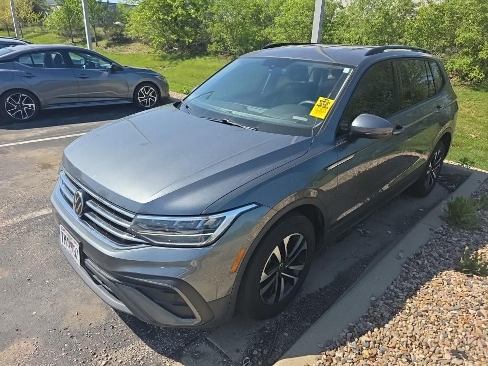 2023 Volkswagen Tiguan 2.0T S Platinum Gray Metallic 2.0T S FWD 8-Speed Automatic with Tiptronic 2.0L TSI DOHC 3-Row Rubber Monster Mats w/Logo Kit (Set of 5), 3.33 Axle Ratio, 3rd row seats: bench, 4-Wheel Disc Brakes, 4-Wheel Independent Suspension, 6 Speakers, ABS brakes, Air Conditioning, Alloy wheels, AM/FM radio, Brake assist, Bumpers: body-color, Cloth Seating Surfaces, Compass, Delay-off headlights, Driver door bin, Driver vanity mirror, Dual front impact airbags, Dual front side impact airbags, Electronic Stability Control, Emergency communication system: VW Car-Net Safe & Secure 5-year, Exterior Parking Camera Rear, Forward collision: FCW w/Autonomous Emergency Braking mitigation, Four wheel independent suspension, Front anti-roll bar, Front Bucket Seats, Front Center Armrest, Front reading lights, Fully automatic headlights, Heated door mirrors, Heated Front Bucket Seats, Heated front seats, Heavy Duty Trunk Liner w/VW CarGo Blocks, Illuminated entry, Leather Shift Knob, Low tire pressure warning, Occupant sensing airbag, Outside temperature display, Overhead airbag, Overhead console, Panic alarm, Passenger door bin, Passenger vanity mirror, Power door mirrors, Power steering, Power windows, Radio data system, Radio: Composition Color AM/FM, Rear anti-roll bar, Rear reading lights, Rear seat center armrest, Rear window defroster, Rear window wiper, Remote keyless entry, Speed control, Speed-sensing steering, Split folding rear seat, Spoiler, Steering wheel mounted audio controls, Tachometer, Telescoping steering wheel, Tilt steering wheel, Traction control, Trip computer, Turn signal indicator mirrors, Variably intermittent wipers, VW Car-Net Safe & Secure 5-Year Plan, Wheels: 17" 2-Tone Machined Twin 5-Spoke Alloy.