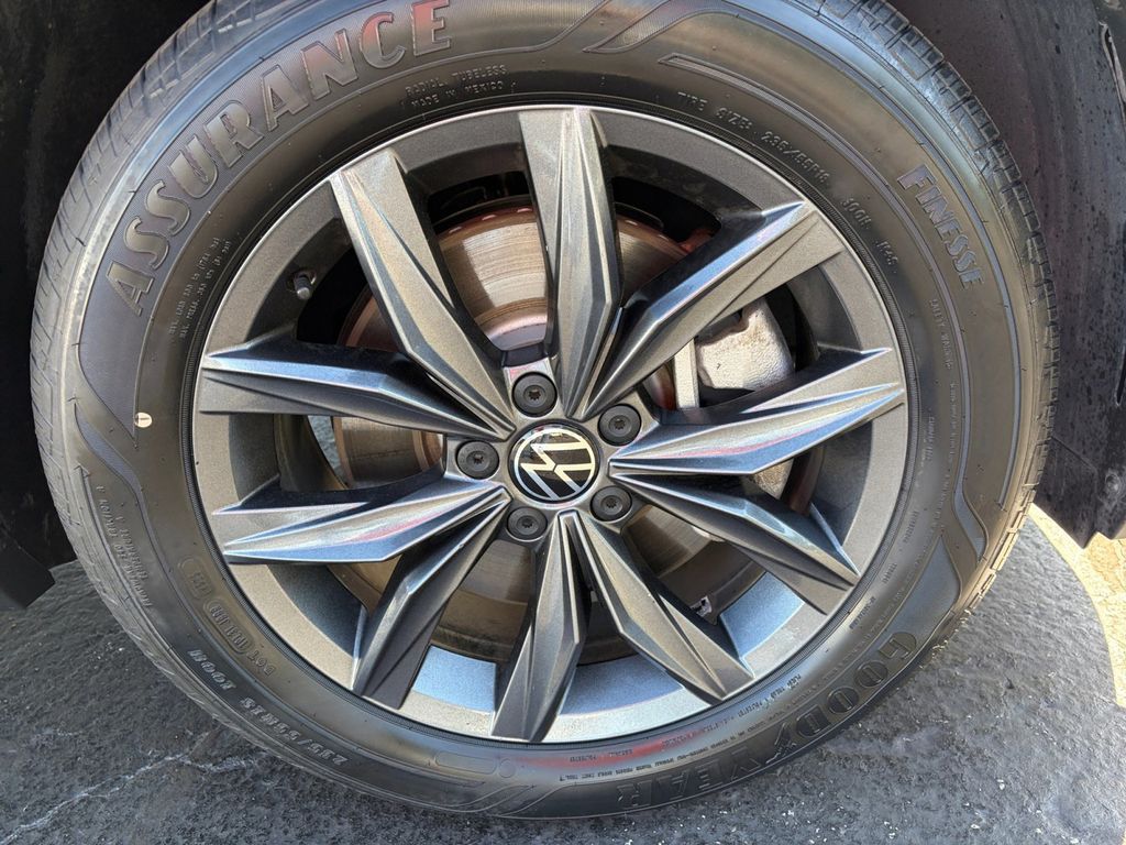 2023 Volkswagen Tiguan 2.0T SE Certified. Opal White 2.0T SE FWD 8-Speed Automatic with Tiptronic 2.0L TSI DOHC Volkswagen Certified, 3-Row Rubber Monster Mats w/Logo Kit (Set of 5), 3.33 Axle Ratio, 3rd row seats: bench, 4-Wheel Disc Brakes, 4-Wheel Independent Suspension, 6 Speakers, ABS brakes, Air Conditioning, Alloy wheels, AM/FM radio: SiriusXM with 360L, Auto-dimming Rear-View mirror, Automatic temperature control, Brake assist, Bumpers: body-color, Cargo Area Retractable Privacy Cover, Compass, Credit - Power Rear Liftgate Removed, Delay-off headlights, Driver door bin, Driver vanity mirror, Dual front impact airbags, Dual front side impact airbags, Electronic Stability Control, Emergency communication system: VW Car-Net Safe & Secure 5-year, Exterior Parking Camera Rear, First Aid Kit, Four wheel independent suspension, Front anti-roll bar, Front Bucket Seats, Front Center Armrest, Front dual zone A/C, Front reading lights, Fully automatic headlights, Heated door mirrors, Heated Front Comfort Seats, Heated front seats, Heavy Duty Trunk Liner w/VW CarGo Blocks, Illuminated entry, Leather Shift Knob, Low tire pressure warning, Occupant sensing airbag, Outside temperature display, Overhead airbag, Overhead console, Panic alarm, Panoramic Sunroof Package, Passenger door bin, Passenger vanity mirror, Perforated V-Tex Leatherette Seating Surfaces, Power door mirrors, Power driver seat, Power Liftgate, Power steering, Power windows, Radio data system, Radio: MIB3 Composition Media AM/FM/HD, Rain sensing wipers, Rear anti-roll bar, Rear reading lights, Rear seat center armrest, Rear window defroster, Rear window wiper, Remote keyless entry, Roadside Assistance Kit, Security system, Speed control, Speed-sensing steering, Split folding rear seat, Spoiler, Steering wheel mounted audio controls, Tachometer, Telescoping steering wheel, Tilt steering wheel, Traction control, Trip computer, Turn signal indicator mirrors, Variably intermittent wipers, Wheels: 18" Dark Graphite Painted 10-Spoke Alloy.