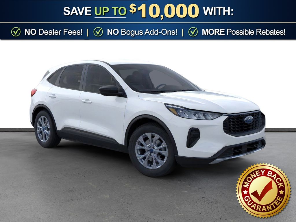 Oxford White 2026 Ford Escape Active FLT FWD 8-Speed Automatic 1.5L EcoBoost 3.81 Axle Ratio, 4-Wheel Disc Brakes, 6 Speakers, ABS brakes, Air Conditioning, Alloy wheels, Auto High-beam Headlights, Automatic temperature control, Brake assist, Bumpers: body-color, Compass, Delay-off headlights, Driver door bin, Driver vanity mirror, Dual front impact airbags, Dual front side impact airbags, Electronic Stability Control, Emergency communication system: SYNC 4 911 Assist, Ford App, Four wheel independent suspension, Front anti-roll bar, Front Bucket Seats, Front Center Armrest, Front dual zone A/C, Front reading lights, Fully automatic headlights, Illuminated entry, Knee airbag, Low tire pressure warning, Occupant sensing airbag, Outside temperature display, Overhead airbag, Overhead console, Panic alarm, Passenger door bin, Passenger vanity mirror, Power door mirrors, Power steering, Power windows, Radio data system, Rear anti-roll bar, Rear reading lights, Rear seat center armrest, Rear window defroster, Rear window wiper, Remote keyless entry, Speed control, Speed-sensing steering, Speed-Sensitive Wipers, Split folding rear seat, Spoiler, Steering wheel mounted audio controls, SYNC 4, Tachometer, Telescoping steering wheel, Tilt steering wheel, Traction control, Trip computer, Unique Cloth Front Bucket Seats, Variably intermittent wipers, Wheels: 17" Shadow Silver-Painted Aluminum.