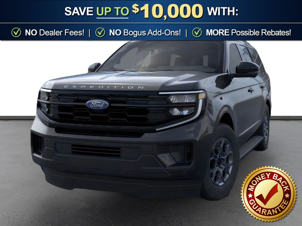 Agate Black Metallic 2026 Ford Expedition Active FLT RWD 10-Speed Automatic EcoBoost 3.5L V6 GTDi DOHC 24V Twin Turbocharged 3.31 Axle Ratio, 3rd row seats: split-bench, 4-Wheel Disc Brakes, 6 Speakers, ABS brakes, ActiveX-Trimmed Front Heated Captain's Chairs, Air Conditioning, Alloy wheels, AM/FM radio: SiriusXM with 360L, Apple CarPlay/Android Auto, Auto High-beam Headlights, Auto-dimming Rear-View mirror, Automatic temperature control, Brake assist, Bumpers: body-color, Cloth Front Captain's Chairs, Compass, Delay-off headlights, Driver door bin, Driver vanity mirror, Dual front impact airbags, Dual front side impact airbags, Electronic Stability Control, Emergency communication system: 911 Assist, Exterior Parking Camera Rear, Ford Connectivity Package (1-Year Included), Ford Digital Experience, Four wheel independent suspension, Front and 2nd Rows Floor Liners Without Carper Mats, Front anti-roll bar, Front Bucket Seats, Front Center Armrest, Front dual zone A/C, Front License Plate Bracket, Front reading lights, Fully automatic headlights, Heated door mirrors, Illuminated entry, Low tire pressure warning, Navigation System, Occupant sensing airbag, Outside temperature display, Overhead airbag, Overhead console, Panic alarm, Passenger door bin, Passenger vanity mirror, Power door mirrors, Power driver seat, Power passenger seat, Power steering, Power windows, Radio data system, Radio: AM/FM Stereo with MP3 Capable, Rear air conditioning, Rear anti-roll bar, Rear reading lights, Rear window defroster, Rear window wiper, Reclining 3rd row seat, Remote keyless entry, Security system, SiriusXM with 360L, Speed control, Speed-sensing steering, Speed-Sensitive Wipers, Split folding rear seat, Spoiler, Steering wheel mounted audio controls, Tachometer, Telescoping steering wheel, Tilt steering wheel, Traction control, Trip computer, Variably intermittent wipers, Voltmeter, Wheels: 18" x 8.5" Dark Alloy Painted Aluminum.
