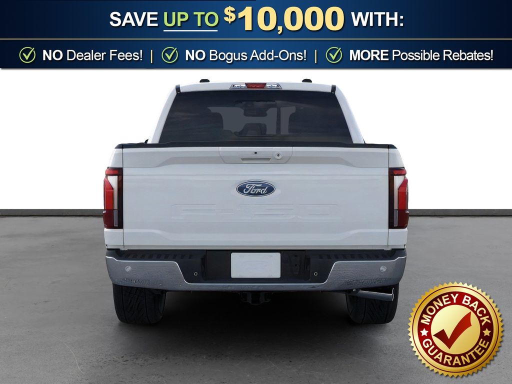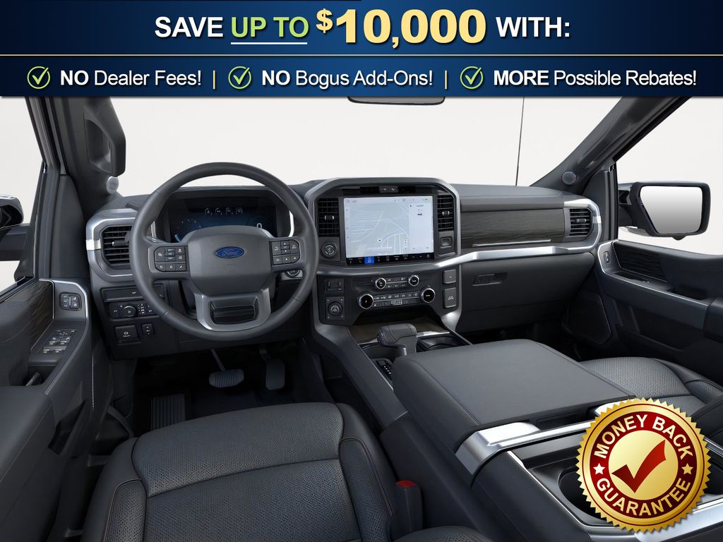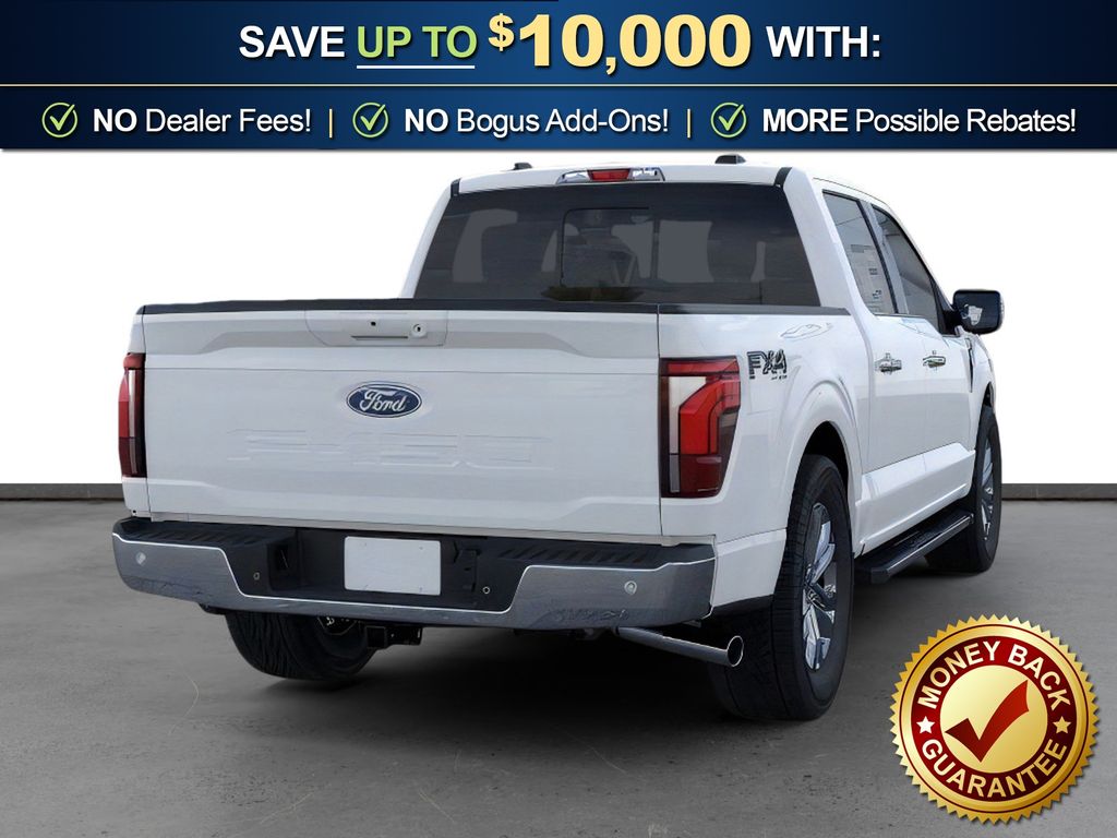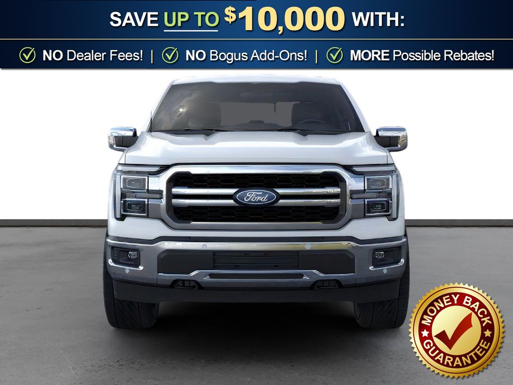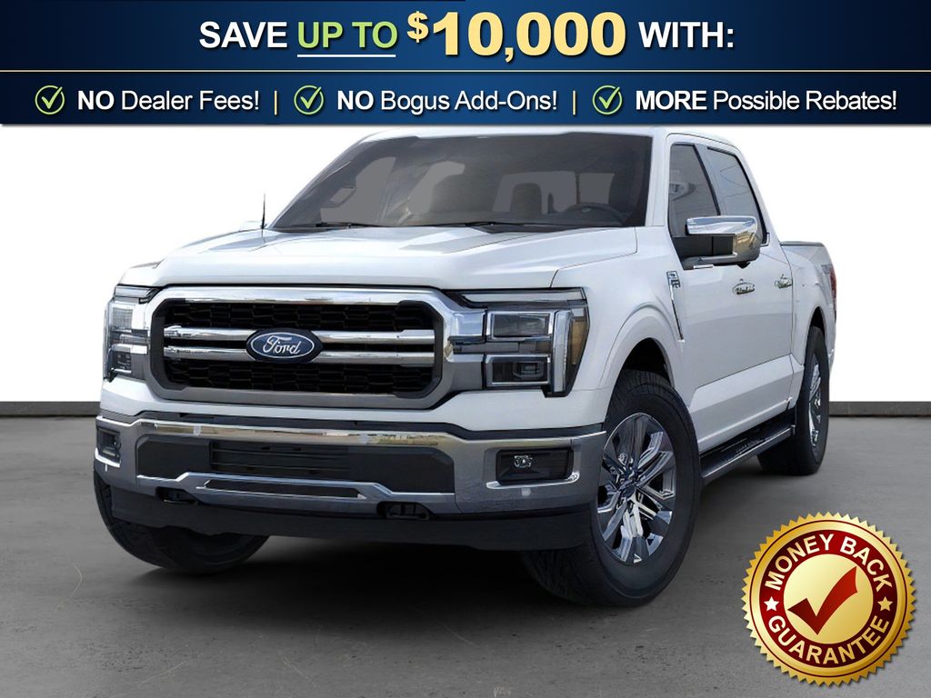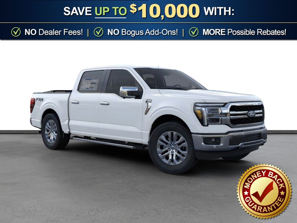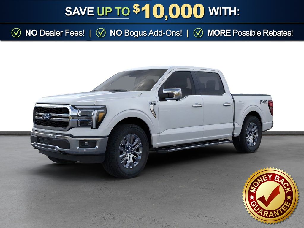 Oxford White 2026 Ford F-150 Lariat FLT 4WD 10-Speed Automatic 5.0L V8 4WD, 4-Wheel Disc Brakes, 4x4 FX4 Off-Road Bodyside Decal, 8 Speakers, ABS brakes, ActiveX Trimmed Bucket Seats, Air Conditioning, Alloy wheels, AM/FM radio: SiriusXM with 360L, Auto High-beam Headlights, Auto-dimming door mirrors, Auto-dimming Rear-View mirror, Automatic temperature control, Brake assist, Bumpers: chrome, Chrome wheels, Compass, Console Worksurface, Delay-off headlights, Driver door bin, Driver vanity mirror, Dual front impact airbags, Dual front side impact airbags, Electronic Stability Control, Emergency communication system: SYNC 4 911 Assist, Ford Connectivity Package (1-Year Included), Front anti-roll bar, Front Bucket Seats, Front Center Armrest, Front dual zone A/C, Front fog lights, Front License Plate Bracket, Front reading lights, Front wheel independent suspension, Fully automatic headlights, FX4 Off-Road Package, Garage door transmitter, Heated door mirrors, Heated front seats, Heated steering wheel, Hill Descent Control, Illuminated entry, Integrated Trailer Brake Controller, Internet access capable: 5G Modem - Ford Connectivity Package, Low tire pressure warning, Memory seat, Mobile Office Package, Monotube Rear Shocks, Navigation system: Connected Navigation, Occupant sensing airbag, Off-Road Tuned Front Shock Absorbers, Outside temperature display, Overhead airbag, Overhead console, Panic alarm, Partitioned Lockable Rear Storage, Passenger door bin, Passenger vanity mirror, Power door mirrors, Power driver seat, Power passenger seat, Power steering, Power windows, Radio data system, Radio: B&O Sound System by Bang and Olufsen, Rain sensing wipers, Rear reading lights, Rear seat center armrest, Rear step bumper, Rear window defroster, Remote keyless entry, Security system, Speed control, Split folding rear seat, Steering wheel mounted audio controls, SYNC 4 with Enhanced Voice Recognition, Tachometer, Telescoping steering wheel, Tilt steering wheel, Tow/Haul Package, Traction control, Tray Style Floor Liner Without Carpet Mats, Trip computer, Turn signal indicator mirrors, Variably intermittent wipers, Ventilated front seats, Wheels: 18" Chrome-Like PVD, Wireless Charging, 4WD.