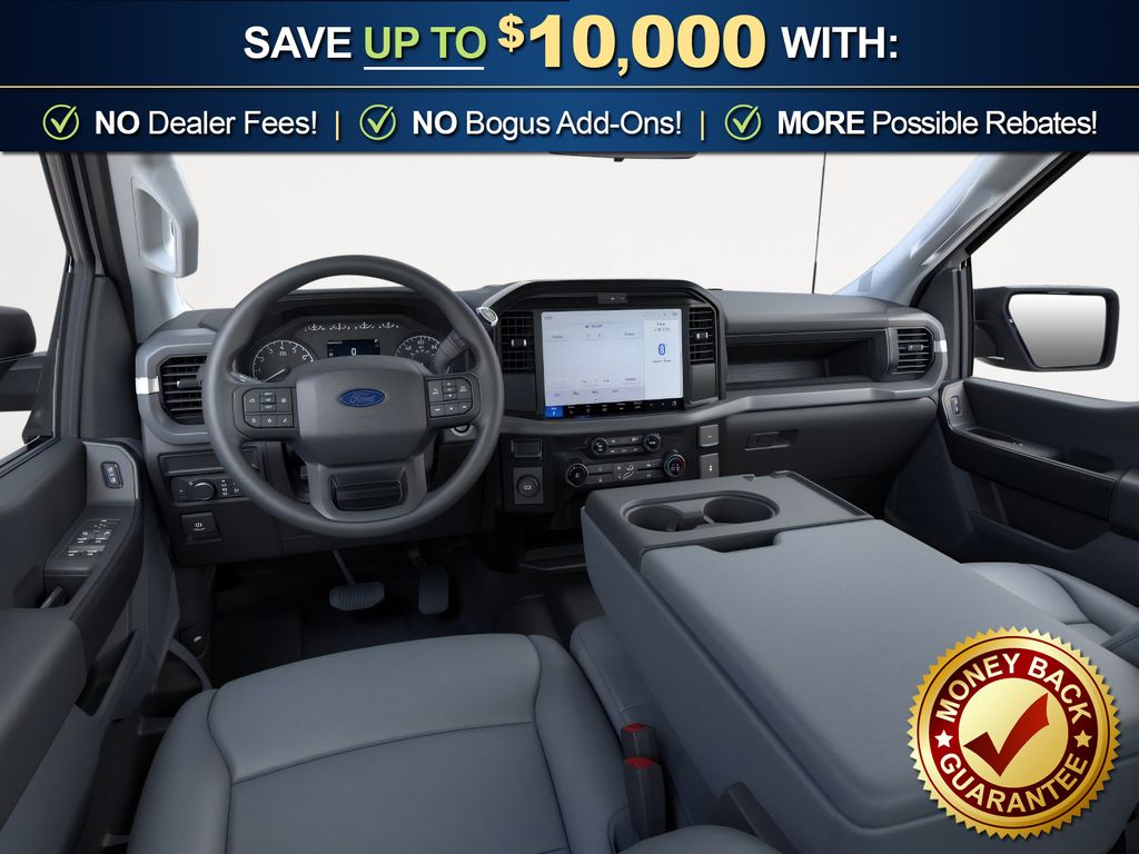 Oxford White 2026 Ford F-150 XL FLT RWD 10-Speed Automatic 5.0L V8 4-Wheel Disc Brakes, 6 Speakers, ABS brakes, Air Conditioning, AM/FM radio: SiriusXM with 360L, Auto High-beam Headlights, Brake assist, Cloth 40/20/40 Front Seat, Compass, Delay-off headlights, Driver door bin, Dual front impact airbags, Dual front side impact airbags, Electronic Stability Control, Emergency communication system: SYNC 4 911 Assist, Ford Connectivity Package (1-Year Included), Front anti-roll bar, Front Center Armrest, Front reading lights, Front wheel independent suspension, Fully automatic headlights, GVWR: 6,426 lbs Payload Package, Heated door mirrors, Illuminated entry, Internet access capable: 5G Modem - Ford Connectivity Package, Low tire pressure warning, Occupant sensing airbag, Outside temperature display, Overhead airbag, Overhead console, Panic alarm, Passenger door bin, Passenger vanity mirror, Power door mirrors, Power steering, Power windows, Radio data system, Radio: AM/FM Stereo with SiriusXM 360L, Rear step bumper, Remote keyless entry, Security system, Speed control, Split folding rear seat, Steering wheel mounted audio controls, SYNC 4 with Enhanced Voice Recognition, Tachometer, Telescoping steering wheel, Tilt steering wheel, Traction control, Trip computer, Variably intermittent wipers, Vinyl 40/20/40 Front Seat, Wheels: 17" Silver Steel.