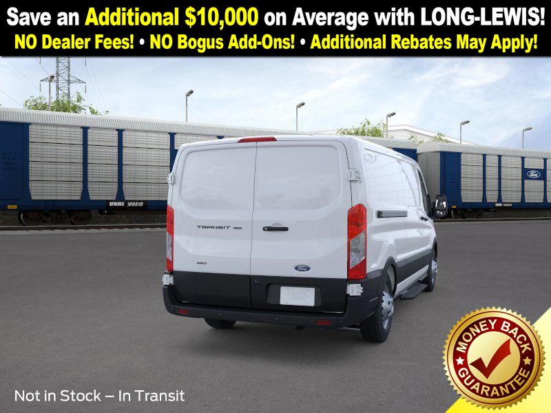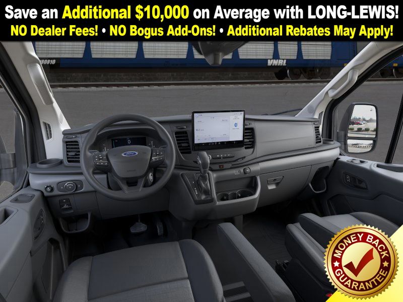 Oxford White 2026 Ford Transit-150 FLT AWD 10-Speed Automatic with Overdrive 3.5L V6 Flex Fuel 4 Speakers, 4-Wheel Disc Brakes, 4.10 Limited-Slip Axle Ratio, ABS brakes, Air Conditioning, AM/FM radio, AM/FM Stereo, Apple CarPlay/Android Auto, Auto High-beam Headlights, Brake assist, Cloth Front Bucket Seats, Dark Palazzo Gray Vinyl Bucket Seats, Dark Palazzo Gray Vinyl Bucket Seats w/Armrests, Delay-off headlights, Driver door bin, Driver's Seat Mounted Armrest, Dual front impact airbags, Dual front side impact airbags, Electronic Stability Control, Emergency communication system: 911 Assist, Exterior Parking Camera Rear, Ford Connectivity Package (1-Year Included), Front & Rear Vinyl Floor Covering, Front anti-roll bar, Front Bucket Seats, Front License Plate Bracket, Front reading lights, Front wheel independent suspension, Full Rear Compartment Lighting, Fully automatic headlights, Illuminated entry, Internet access capable: FordPass Connect 5G, Low tire pressure warning, Navigation system: Connected Navigation, Occupant sensing airbag, Overhead airbag, Panic alarm, Passenger cancellable airbag, Passenger door bin, Passenger Running Boards, Passenger-Side B-Pillar Assist Handle, Power door mirrors, Power steering, Power windows, Remote keyless entry, Speed control, Steering wheel mounted audio controls, SYNC 4, Tachometer, Telescoping steering wheel, Tilt steering wheel, Traction control, Variably intermittent wipers, Vinyl Front Bucket Seats, Wheels: 16" Silver Steel w/Silver Hubcaps.