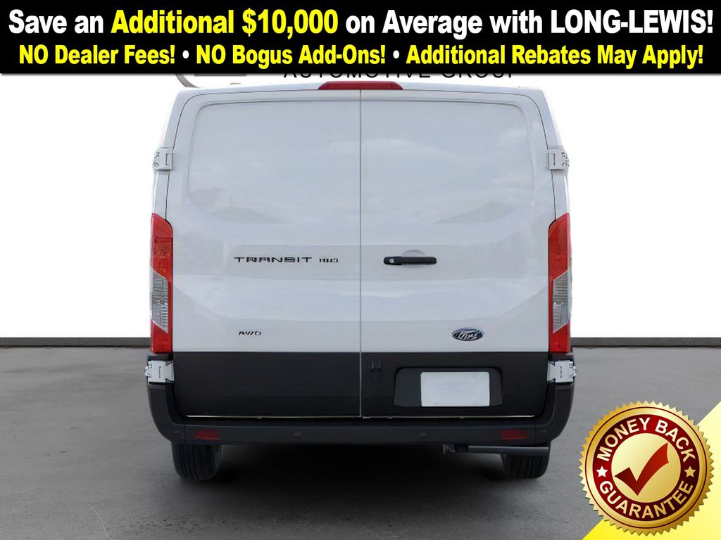 Oxford White 2026 Ford Transit-150 FLT AWD 10-Speed Automatic with Overdrive 3.5L V6 Flex Fuel 4 Speakers, 4-Wheel Disc Brakes, 4.10 Limited-Slip Axle Ratio, ABS brakes, Air Conditioning, AM/FM radio, AM/FM Stereo, Apple CarPlay/Android Auto, Auto High-beam Headlights, Brake assist, Cloth Front Bucket Seats, Dark Palazzo Gray Vinyl Bucket Seats, Dark Palazzo Gray Vinyl Bucket Seats with Armrests, Delay-off headlights, Driver door bin, Driver's Seat Mounted Armrest, Dual front impact airbags, Dual front side impact airbags, Electronic Stability Control, Emergency communication system: 911 Assist, Exterior Parking Camera Rear, Ford Connectivity Package (1-Year Included), Front and Rear Vinyl Floor Covering, Front anti-roll bar, Front Bucket Seats, Front License Plate Bracket, Front reading lights, Front wheel independent suspension, Full Rear Compartment Lighting, Fully automatic headlights, Illuminated entry, Low tire pressure warning, Navigation system: Connected Navigation, Occupant sensing airbag, Overhead airbag, Panic alarm, Passenger cancellable airbag, Passenger door bin, Passenger Running Boards, Passenger-Side B-Pillar Assist Handle, Power door mirrors, Power steering, Power windows, Rain sensing wipers, Remote keyless entry, Speed control, Steering wheel mounted audio controls, SYNC 4, Tachometer, Telescoping steering wheel, Tilt steering wheel, Traction control, Variably intermittent wipers, Vinyl Front Bucket Seats, Wheels: 16" Silver Steel with Silver Hubcaps.