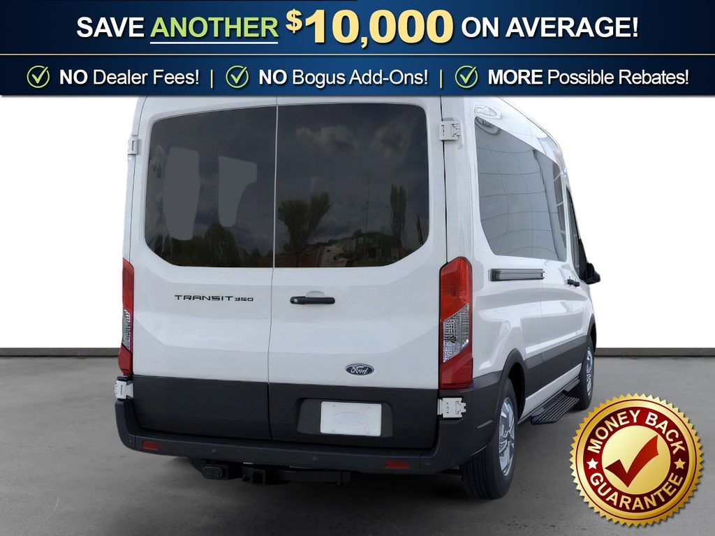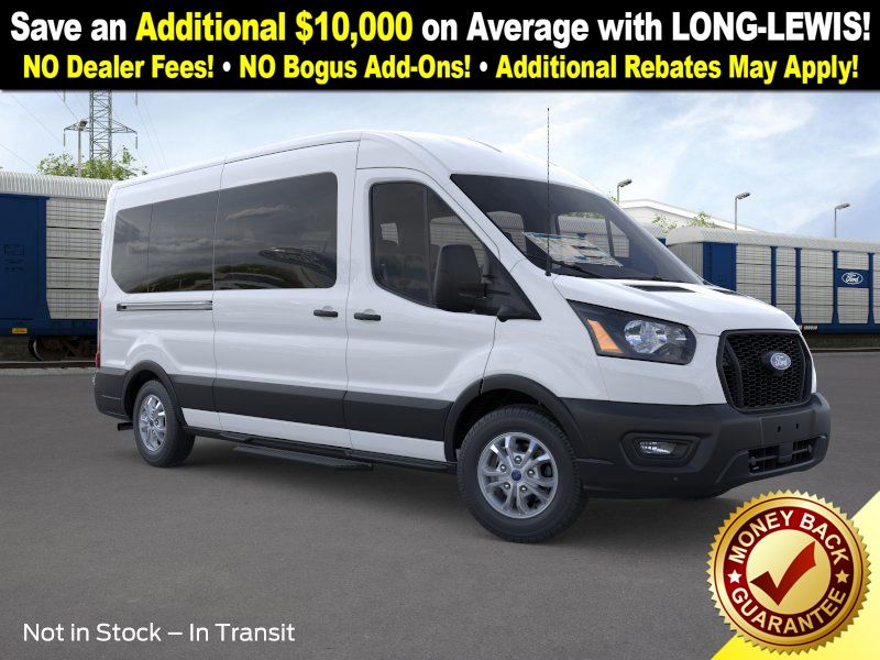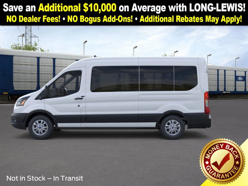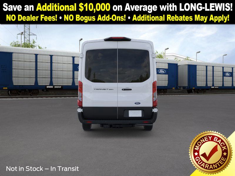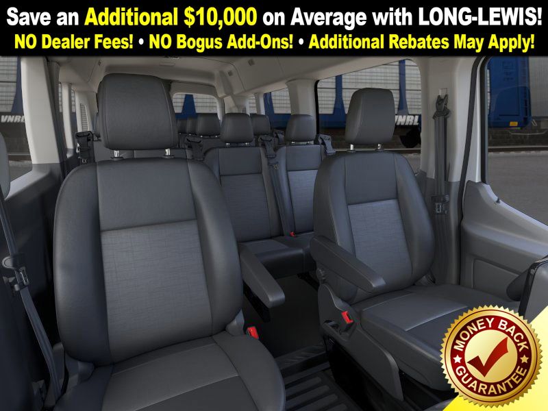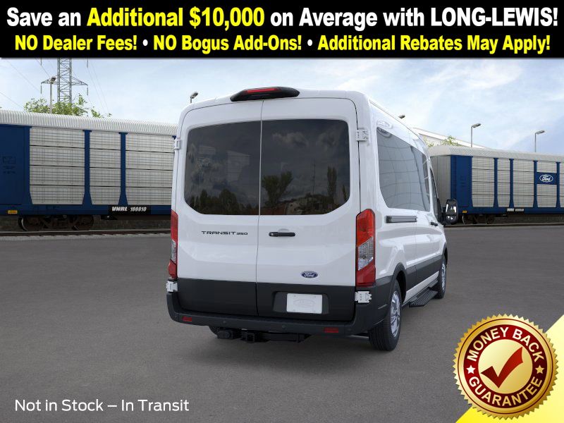 Oxford White 2026 Ford Transit-350 FLT RWD 10-Speed Automatic with Overdrive EcoBoost 3.5L V6 GTDi DOHC 24V Twin Turbocharged 3.73 Axle Ratio, 3rd row seats: split-bench, 4-Wheel Disc Brakes, 4th-Row Bench Seat, 8 Speakers, ABS brakes, Air Conditioning, Apple CarPlay/Android Auto, Auto High-beam Headlights, Black High-Intensity Discharge (HID) Headlamps, Brake assist, Cloth Front Bucket Seats, Delay-off headlights, Driver door bin, Driver vanity mirror, Driver's Seat Mounted Armrest, Dual front impact airbags, Dual front side impact airbags, Electronic Stability Control, Emergency communication system: 911 Assist, Ford Connectivity Package (1-Year Included), Front anti-roll bar, Front Bucket Seats, Front License Plate Bracket, Front reading lights, Front wheel independent suspension, Illuminated entry, Large Center Console, Low tire pressure warning, Navigation system: Connected Navigation, Occupant sensing airbag, Overhead airbag, Panic alarm, Passenger door bin, Passenger seat mounted armrest, Passenger vanity mirror, Power door mirrors, Power steering, Power windows, Rain sensing wipers, Rear air conditioning, Rear window defroster, Remote keyless entry, Speed control, Steering wheel mounted audio controls, SYNC 4, Tachometer, Telescoping steering wheel, Tilt steering wheel, Traction control, Variably intermittent wipers, Wheels: 16" Steel with Full Silver Cover.