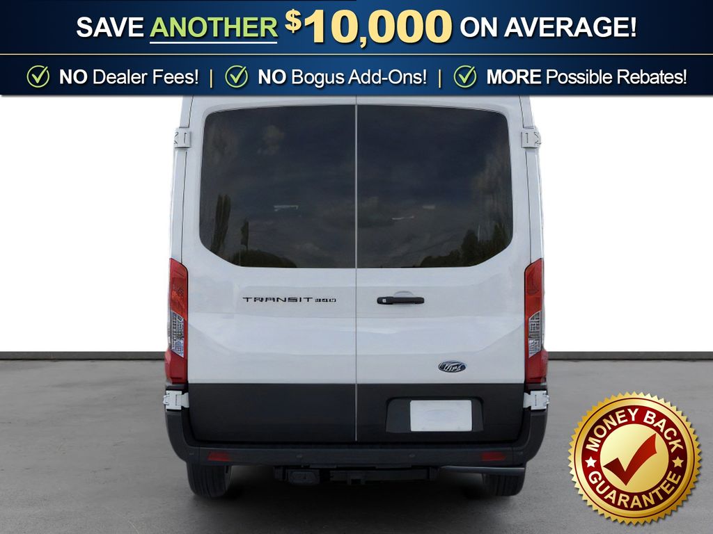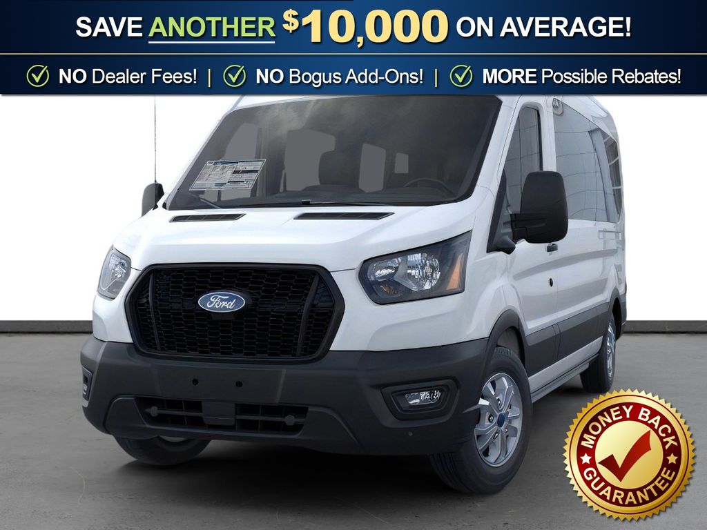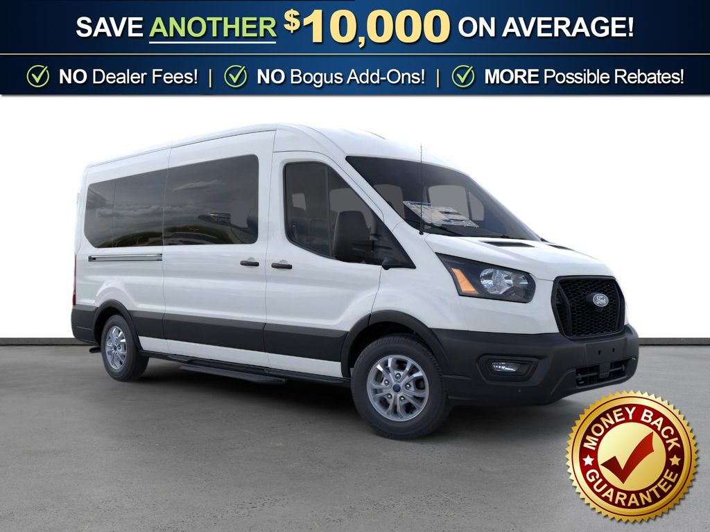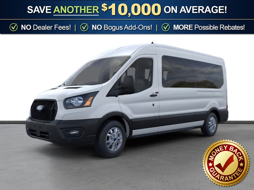 Oxford White 2026 Ford Transit-350 FLT RWD 10-Speed Automatic with Overdrive EcoBoost 3.5L V6 GTDi DOHC 24V Twin Turbocharged 3.73 Axle Ratio, 3rd row seats: split-bench, 4-Wheel Disc Brakes, 4th-Row Bench Seat, 8 Speakers, ABS brakes, Air Conditioning, Apple CarPlay/Android Auto, Auto High-beam Headlights, Black High-Intensity Discharge (HID) Headlamps, Brake assist, Cloth Front Bucket Seats, Delay-off headlights, Driver door bin, Driver vanity mirror, Driver's Seat Mounted Armrest, Dual front impact airbags, Dual front side impact airbags, Electronic Stability Control, Emergency communication system: 911 Assist, Ford Connectivity Package (1-Year Included), Front anti-roll bar, Front Bucket Seats, Front License Plate Bracket, Front reading lights, Front wheel independent suspension, Illuminated entry, Large Center Console, Low tire pressure warning, Navigation system: Connected Navigation, Occupant sensing airbag, Overhead airbag, Panic alarm, Passenger door bin, Passenger seat mounted armrest, Passenger vanity mirror, Power door mirrors, Power steering, Power windows, Rain sensing wipers, Rear air conditioning, Rear window defroster, Remote keyless entry, Speed control, Steering wheel mounted audio controls, SYNC 4, Tachometer, Telescoping steering wheel, Tilt steering wheel, Traction control, Variably intermittent wipers, Wheels: 16" Steel with Full Silver Cover.