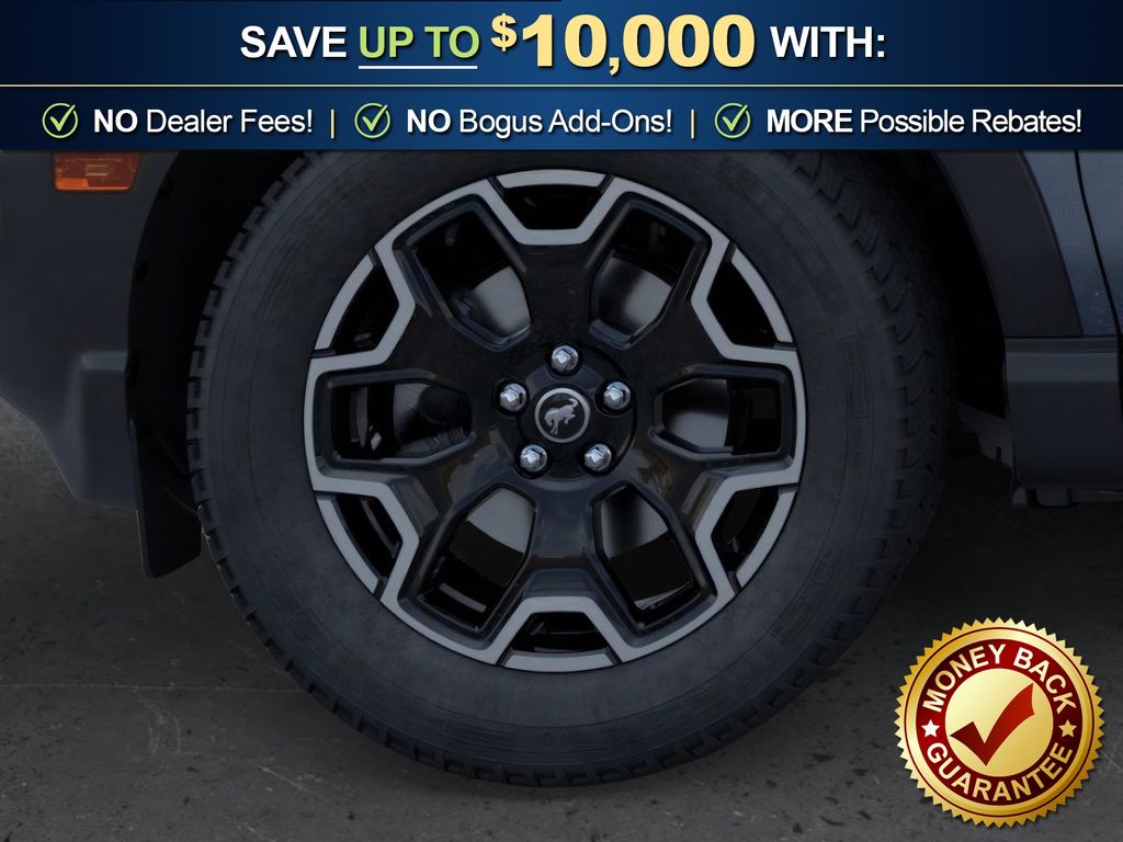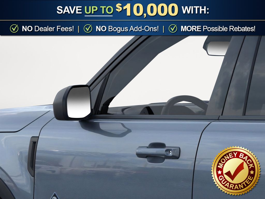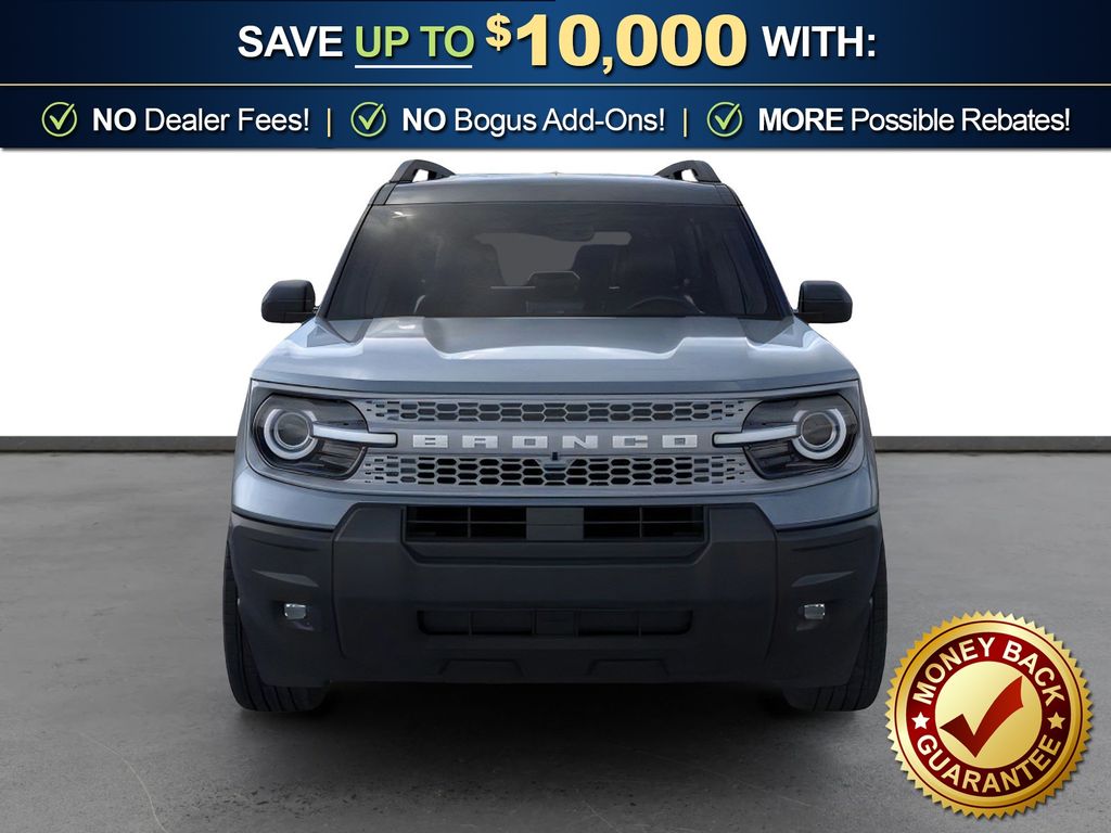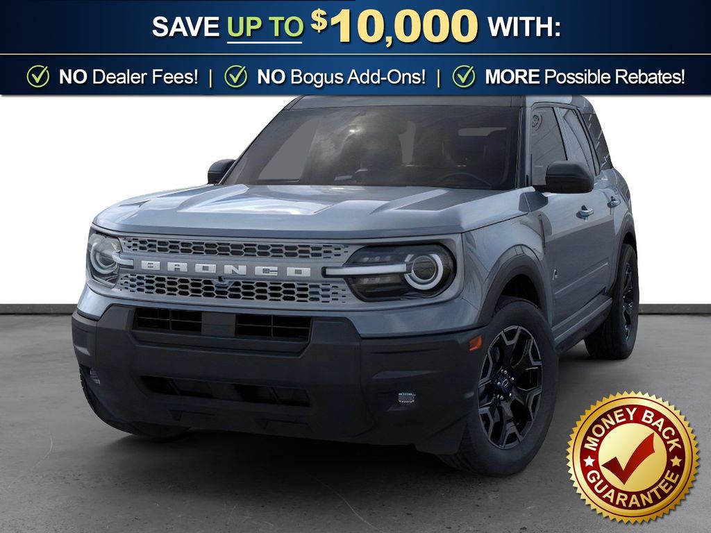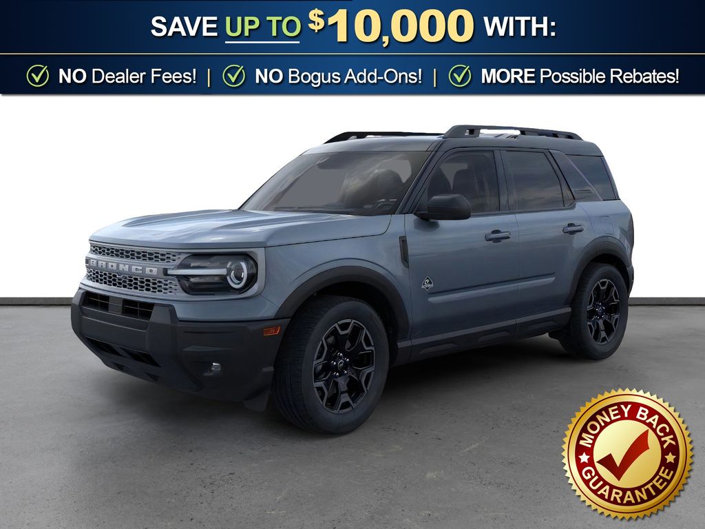 Azure Gray Metallic Tri-Coat 2025 Ford Bronco Sport Outer Banks FCT 4WD 8-Speed Automatic 1.5L EcoBoost 4-Wheel Disc Brakes, 6 Speakers, ABS brakes, Air Conditioning, Alloy wheels, AM/FM radio: SiriusXM, AM/FM Stereo, Auto High-beam Headlights, Auto-dimming Rear-View mirror, Automatic temperature control, Brake assist, Compass, Delay-off headlights, Driver door bin, Driver vanity mirror, Dual front impact airbags, Dual front side impact airbags, Electronic Stability Control, Emergency communication system: SYNC 4 911 Assist, Equipment Group 300A, Four wheel independent suspension, Front anti-roll bar, Front Bucket Seats, Front Center Armrest, Front Driver/Passenger Seat Back Map Pockets, Front dual zone A/C, Front fog lights, Front License Plate Bracket, Front reading lights, Fully automatic headlights, Garage door transmitter, Heated door mirrors, Heated front seats, Heated steering wheel, Illuminated entry, Knee airbag, Low tire pressure warning, Memory seat, Occupant sensing airbag, Outside temperature display, Overhead airbag, Overhead console, Panic alarm, Passenger door bin, Passenger vanity mirror, Power door mirrors, Power driver seat, Power passenger seat, Power steering, Power windows, Premium Trimmed Front Bucket Seats w/Ebony/Roast, Radio data system, Rain sensing wipers, Rear anti-roll bar, Rear Parking Sensors, Rear reading lights, Rear seat center armrest, Rear window defroster, Rear window wiper, Remote keyless entry, Security system, SiriusXM, Speed control, Speed-sensing steering, Speed-Sensitive Wipers, Split folding rear seat, Steering wheel mounted audio controls, SYNC 4 w/Enhanced Voice Recognition, Tachometer, Telescoping steering wheel, Tilt steering wheel, Traction control, Trip computer, Variably intermittent wipers, Wheels: 18" Ebony Black-Painted Aluminum.