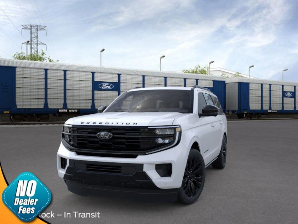 Star White Metallic Tri-Coat 2025 Ford Expedition Platinum 4WD 10-Speed Automatic EcoBoost 3.5L V6 GTDi DOHC 24V Twin Turbocharged 4WD, 10 Speakers, 2nd Row Power-Folding Captain's Chairs, 3.73 Axle Ratio, 3rd row seats: split-bench, 4-Wheel Disc Brakes, ABS brakes, Adjustable pedals, Air Conditioning, Alloy wheels, AM/FM radio: SiriusXM with 360L, Apple CarPlay/Android Auto, Auto High-beam Headlights, Auto-dimming door mirrors, Auto-dimming Rear-View mirror, Automatic temperature control, Black Belt Molding, Black Expedition Lettering On Hood, Black Headlamp Bezel w/Ebony Trim Applique, Black Platinum Badge On Tailgate, Black Roof Rails, Brake assist, Bumpers: body-color, Carbon Black Front Bumper/Fascia, Compass, Delay-off headlights, Driver door bin, Driver vanity mirror, Dual front impact airbags, Dual front side impact airbags, Electronic Stability Control, Emergency communication system: 911 Assist, Engine Sound Enhancer, Exterior Parking Camera Rear, Four wheel independent suspension, Front anti-roll bar, Front Bucket Seats, Front Center Armrest, Front dual zone A/C, Front License Plate Bracket, Front reading lights, Fully automatic headlights, Garage door transmitter, Genuine wood dashboard insert, Genuine wood door panel insert, Heated & Ventilated Leather Front Captain's Chairs, Heated door mirrors, Heated front seats, Heated rear seats, Heated steering wheel, Illuminated entry, Leather steering wheel, Low tire pressure warning, Memory seat, Multicontour Active Motion Lthr Frnt Captains Chairs, Navigation System, Occupant sensing airbag, Outside temperature display, Overhead airbag, Overhead console, Panic alarm, Passenger door bin, Passenger vanity mirror, Pedal memory, Power door mirrors, Power driver seat, Power moonroof: Vista Roof, Power passenger seat, Power steering, Power windows, Radio data system, Radio: B&O Sound System by Bang & Olufsen, Rain sensing wipers, Rear air conditioning, Rear anti-roll bar, Rear reading lights, Rear Side Windows Laminated Glass, Rear window defroster, Rear window wiper, Reclining 3rd row seat, Remote keyless entry, Security system, Signature Grille Lighting, SiriusXM w/360L, Speed control, Speed-sensing steering, Speed-Sensitive Wipers, Split folding rear seat, Spoiler, Stealth Appearance Package, Steering wheel memory, Steering wheel mounted audio controls, Tachometer, Telescoping steering wheel, Tilt steering wheel, Traction control, Trip computer, Turn signal indicator mirrors, Variably intermittent wipers, Ventilated front seats, Voltmeter, Wheels: 20" Ebony Bright Machined Aluminum, Wheels: 22" Ebony Painted Aluminum, 4WD.