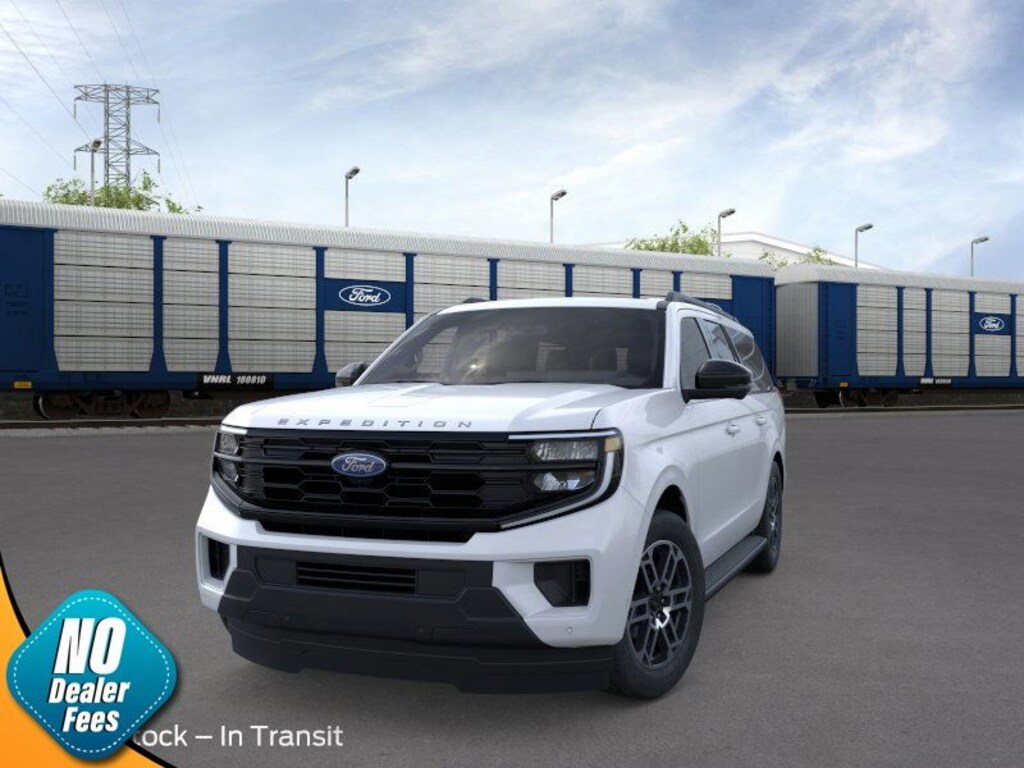 Space Silver Metallic 2025 Ford Expedition Max Active RWD 10-Speed Automatic EcoBoost 3.5L V6 GTDi DOHC 24V Twin Turbocharged 3.31 Axle Ratio, 3rd row seats: split-bench, 4-Wheel Disc Brakes, 6 Speakers, ABS brakes, ActiveX Front Heated Captain's Chairs, Air Conditioning, Alloy wheels, AM/FM radio: SiriusXM with 360L, Apple CarPlay/Android Auto, Auto High-beam Headlights, Auto-dimming Rear-View mirror, Automatic temperature control, Brake assist, Bumpers: body-color, Cloth Front Captain's Chairs, Compass, Delay-off headlights, Driver door bin, Driver vanity mirror, Dual front impact airbags, Dual front side impact airbags, Electronic Stability Control, Emergency communication system: 911 Assist, Exterior Parking Camera Rear, Four wheel independent suspension, Front anti-roll bar, Front Bucket Seats, Front Center Armrest, Front dual zone A/C, Front License Plate Bracket, Front reading lights, Fully automatic headlights, Heated door mirrors, Illuminated entry, Low tire pressure warning, Navigation System, Occupant sensing airbag, Outside temperature display, Overhead airbag, Overhead console, Panic alarm, Passenger door bin, Passenger vanity mirror, Power door mirrors, Power driver seat, Power passenger seat, Power steering, Power windows, Radio data system, Radio: AM/FM Stereo w/MP3 Capable, Rear air conditioning, Rear anti-roll bar, Rear reading lights, Rear window defroster, Rear window wiper, Reclining 3rd row seat, Remote keyless entry, Security system, SiriusXM w/360L, Speed control, Speed-sensing steering, Speed-Sensitive Wipers, Split folding rear seat, Spoiler, Steering wheel mounted audio controls, Tachometer, Telescoping steering wheel, Tilt steering wheel, Traction control, Trip computer, Variably intermittent wipers, Voltmeter, Wheels: 18" Dark Alloy Painted Aluminum.