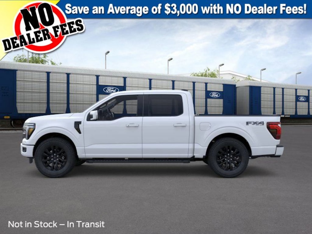 Oxford White 2025 Ford F-150 Lariat 4WD 10-Speed Automatic 5.0L V8 4WD, 4-Wheel Disc Brakes, 4x4 FX4 Off-Road Bodyside Decal, 8 Speakers, ABS brakes, ActiveX Trimmed Bucket Seats, Adjustable pedals, Air Conditioning, Alloy wheels, AM/FM radio: SiriusXM with 360L, Auto High-beam Headlights, Auto-dimming door mirrors, Auto-dimming Rear-View mirror, Automatic temperature control, Brake assist, Bumpers: chrome, Chrome wheels, Compass, Delay-off headlights, Driver door bin, Driver vanity mirror, Dual front impact airbags, Dual front side impact airbags, Electronic Stability Control, Emergency communication system: SYNC 4 911 Assist, Front anti-roll bar, Front Bucket Seats, Front Center Armrest, Front dual zone A/C, Front fog lights, Front License Plate Bracket, Front reading lights, Front wheel independent suspension, Fully automatic headlights, FX4 Off-Road Package, Garage door transmitter, Heated door mirrors, Heated front seats, Heated steering wheel, Hill Descent Control, Illuminated entry, Low tire pressure warning, Memory seat, Monotube Rear Shocks, Navigation system: Connected Navigation, Occupant sensing airbag, Off-Road Tuned Front Shock Absorbers, Outside temperature display, Overhead airbag, Overhead console, Panic alarm, Passenger door bin, Passenger vanity mirror, Pedal memory, Power door mirrors, Power driver seat, Power passenger seat, Power steering, Power windows, Radio data system, Radio: B&O Sound System by Bang & Olufsen, Rain sensing wipers, Rear reading lights, Rear seat center armrest, Rear step bumper, Rear window defroster, Remote keyless entry, Rock Crawl Mode, Security system, Speed control, Split folding rear seat, Steering wheel mounted audio controls, SYNC 4 w/Enhanced Voice Recognition, Tachometer, Telescoping steering wheel, Tilt steering wheel, Traction control, Tray Style Floor Liner w/o Carpet Mats, Trip computer, Turn signal indicator mirrors, Variably intermittent wipers, Ventilated front seats, Voltmeter, Wheels: 18" Chrome-Like PVD, 4WD.