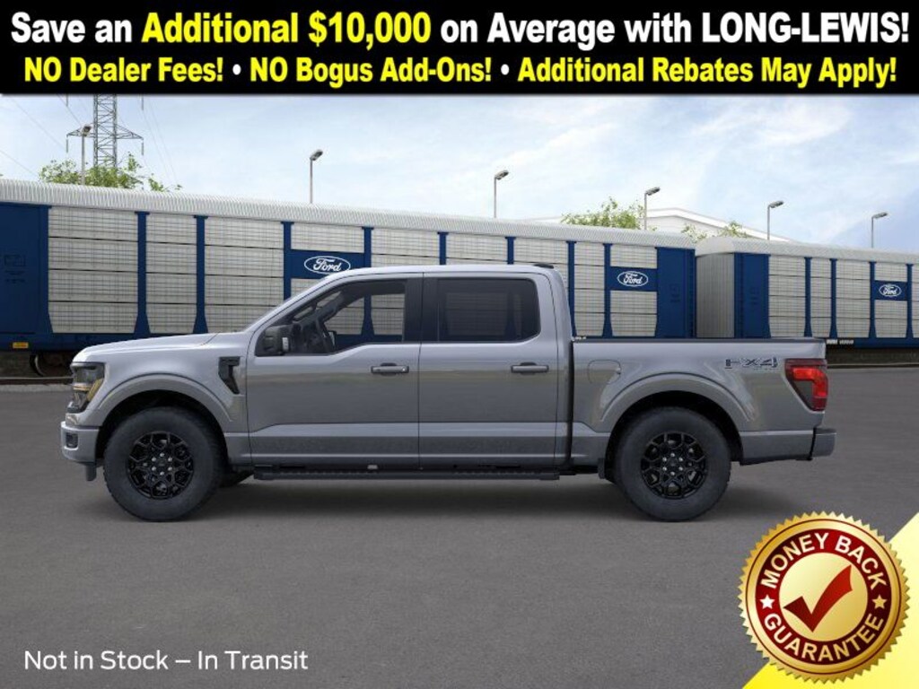 Carbonized Gray Metallic 2025 Ford F-150 XLT 4WD 10-Speed Automatic 5.0L V8 4WD, 4-Wheel Disc Brakes, 6 Speakers, ABS brakes, Air Conditioning, Alloy wheels, AM/FM radio: SiriusXM with 360L, Auto High-beam Headlights, Brake assist, Bumpers: chrome, Chrome wheels, Cloth 40/20/40 Front Seat, Compass, Delay-off headlights, Driver door bin, Driver vanity mirror, Dual front impact airbags, Dual front side impact airbags, Electronic Stability Control, Emergency communication system: SYNC 4 911 Assist, Front anti-roll bar, Front Center Armrest, Front fog lights, Front License Plate Bracket, Front reading lights, Front wheel independent suspension, Fully automatic headlights, FX4 Off-Road Package, Heated door mirrors, Illuminated entry, Low tire pressure warning, Occupant sensing airbag, Outside temperature display, Overhead airbag, Overhead console, Panic alarm, Passenger door bin, Passenger vanity mirror, Power door mirrors, Power steering, Power windows, Radio data system, Radio: AM/FM Stereo w/SiriusXM 360L, Rear Parking Sensors, Rear reading lights, Rear step bumper, Rear window defroster, Remote keyless entry, Security system, Speed control, Split folding rear seat, Steering wheel mounted audio controls, SYNC 4 w/Enhanced Voice Recognition, Tachometer, Telescoping steering wheel, Tilt steering wheel, Traction control, Trip computer, Variably intermittent wipers, Voltmeter, Wheels: 18" Chrome-Like PVD, 4WD.