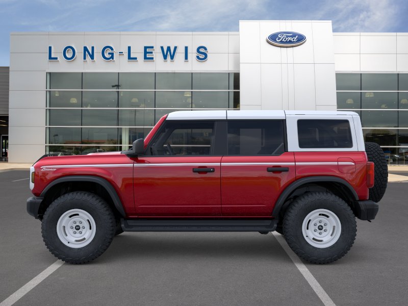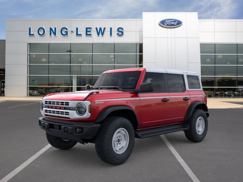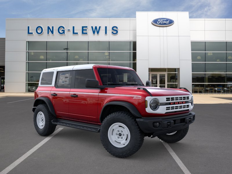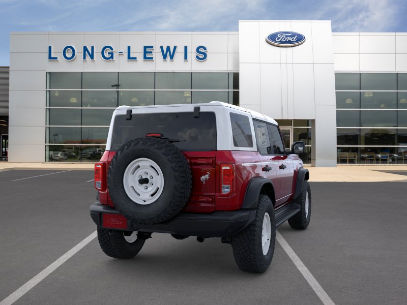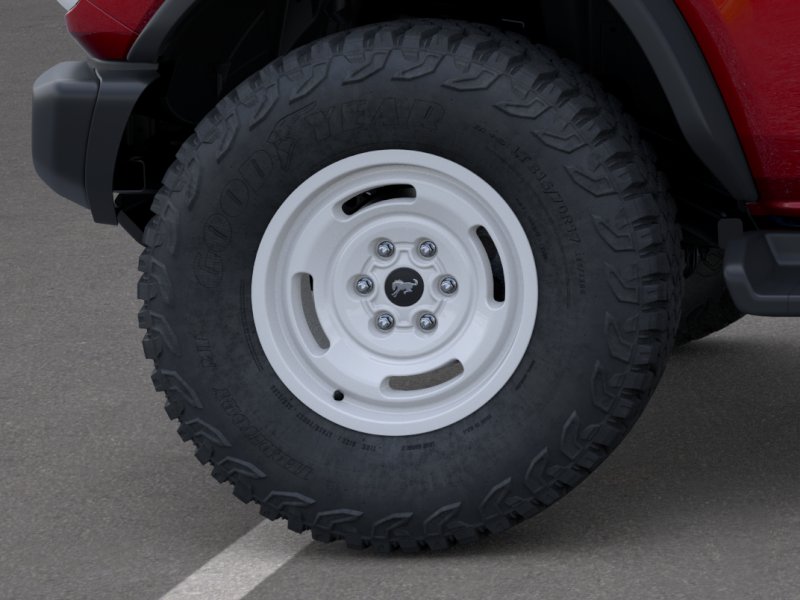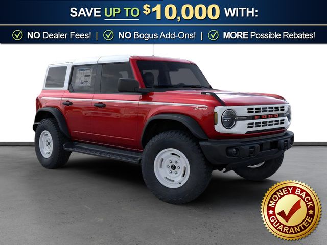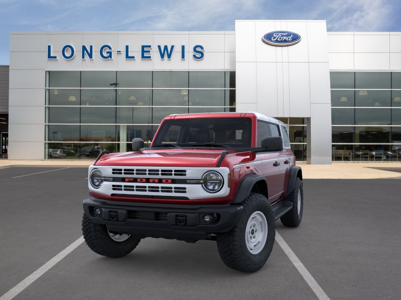 2026 Ford Bronco Heritage Edition NFT Ruby Red Metallic Tinted Clearcoat Heritage Edition NFT 4WD 10-Speed Automatic 2.7L EcoBoost V6 4-Wheel Disc Brakes, 7 Speakers, ABS brakes, Air Conditioning, Alloy wheels, AM/FM radio: SiriusXM with 360L, AM/FM Stereo, Auto High-beam Headlights, Auto-dimming Rear-View mirror, Automatic temperature control, Brake assist, Compass, Connected Navigation, Convertible HardTop, Convertible roof lining, Delay-off headlights, Driver door bin, Driver vanity mirror, Dual front impact airbags, Dual front side impact airbags, Electronic Stability Control, Emergency communication system: 911 Assist, Equipment Group 662A Mid Package, Exterior Parking Camera Rear, Ford Connectivity Package (1-Year Included), Front anti-roll bar, Front Bucket Seats, Front Center Armrest, Front dual zone A/C, Front fog lights, Front reading lights, Front wheel independent suspension, Fully automatic headlights, Glass rear window, Heated door mirrors, Heated front seats, Heated steering wheel, Illuminated entry, Integrated roll-over protection, Low tire pressure warning, Navigation system: Connected Navigation, Occupant sensing airbag, Outside temperature display, Overhead airbag, Overhead console, Panic alarm, Passenger door bin, Passenger vanity mirror, Plaid Cloth Front Heated Bucket Seats, Power door mirrors, Power steering, Power windows, Radio data system, Rear window defroster, Rear window wiper, Remote keyless entry, Security system, SiriusXM with 360L, Speed control, Split folding rear seat, Steering wheel mounted audio controls, SYNC 4, Tachometer, Telescoping steering wheel, Tilt steering wheel, Traction control, Trip computer, Variably intermittent wipers, Wheels: 17" Unique White.