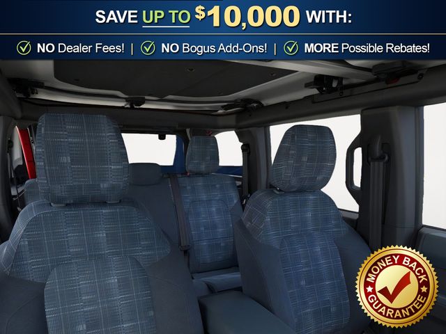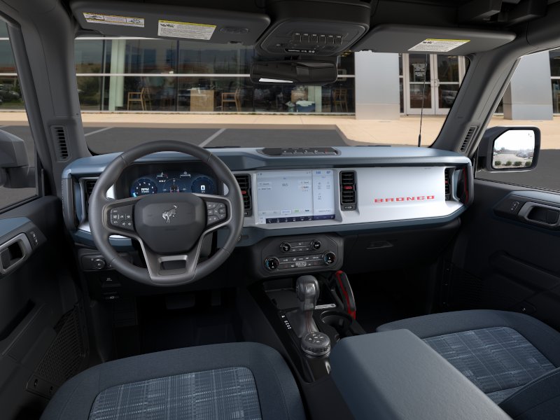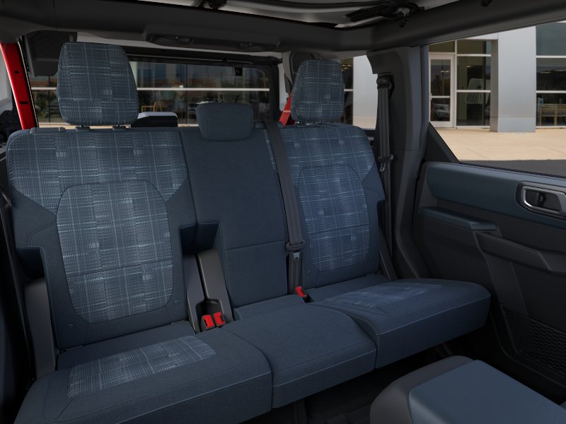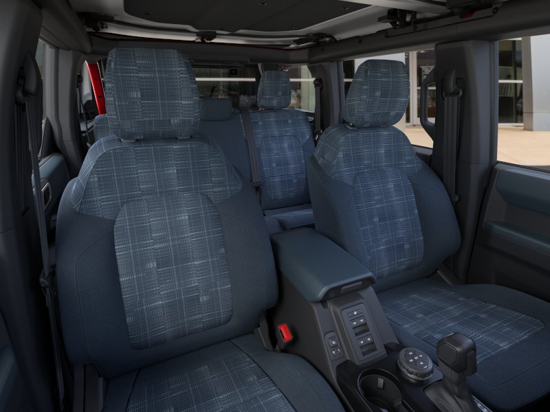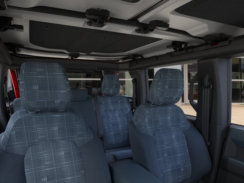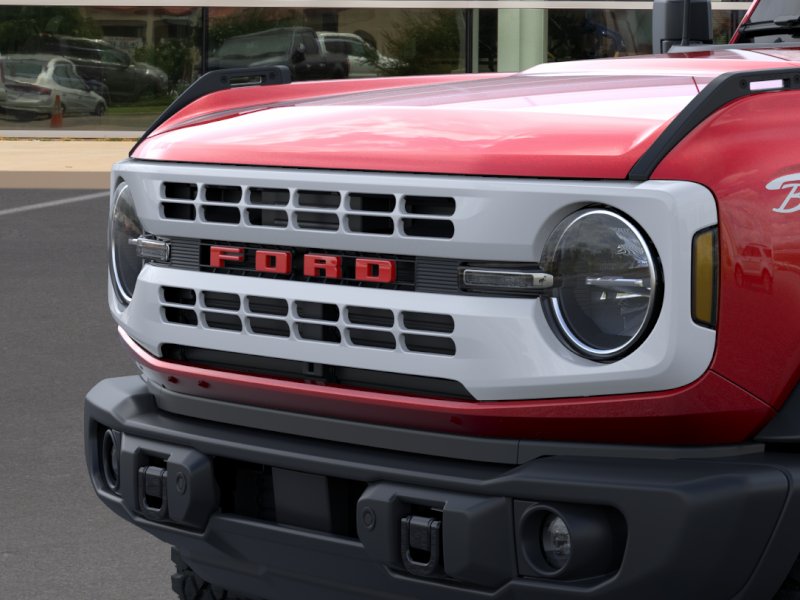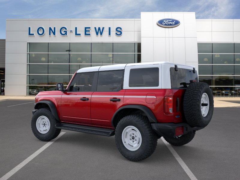 2026 Ford Bronco Heritage Edition NFT Ruby Red Metallic Tinted Clearcoat Heritage Edition NFT 4WD 10-Speed Automatic 2.7L EcoBoost V6 4-Wheel Disc Brakes, 7 Speakers, ABS brakes, Air Conditioning, Alloy wheels, AM/FM radio: SiriusXM with 360L, AM/FM Stereo, Auto High-beam Headlights, Auto-dimming Rear-View mirror, Automatic temperature control, Brake assist, Compass, Connected Navigation, Convertible HardTop, Convertible roof lining, Delay-off headlights, Driver door bin, Driver vanity mirror, Dual front impact airbags, Dual front side impact airbags, Electronic Stability Control, Emergency communication system: 911 Assist, Equipment Group 662A Mid Package, Exterior Parking Camera Rear, Ford Connectivity Package (1-Year Included), Front anti-roll bar, Front Bucket Seats, Front Center Armrest, Front dual zone A/C, Front fog lights, Front reading lights, Front wheel independent suspension, Fully automatic headlights, Glass rear window, Heated door mirrors, Heated front seats, Heated steering wheel, Illuminated entry, Integrated roll-over protection, Low tire pressure warning, Navigation system: Connected Navigation, Occupant sensing airbag, Outside temperature display, Overhead airbag, Overhead console, Panic alarm, Passenger door bin, Passenger vanity mirror, Plaid Cloth Front Heated Bucket Seats, Power door mirrors, Power steering, Power windows, Radio data system, Rear window defroster, Rear window wiper, Remote keyless entry, Security system, SiriusXM with 360L, Speed control, Split folding rear seat, Steering wheel mounted audio controls, SYNC 4, Tachometer, Telescoping steering wheel, Tilt steering wheel, Traction control, Trip computer, Variably intermittent wipers, Wheels: 17" Unique White.
