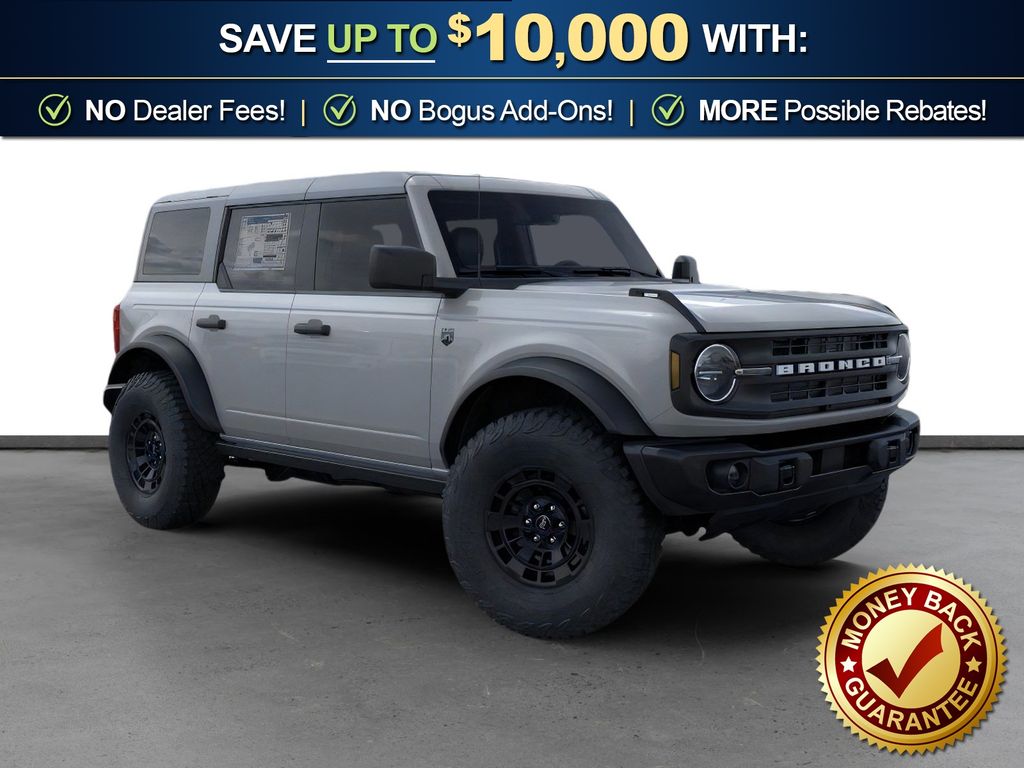 Avalanche Gray 2026 Ford Bronco Big Bend NFT 4WD 10-Speed Automatic 2.3L EcoBoost I-4 4-Wheel Disc Brakes, 7 Speakers, ABS brakes, Air Conditioning, Alloy wheels, AM/FM radio: SiriusXM with 360L, AM/FM Stereo, Auto High-beam Headlights, Auxiliary Switches, Black Diamond Package, Brake assist, Carbonized Gray Molded-in-Color Hard Top, Cloth Bucket Seats, Compass, Delay-off headlights, Driver door bin, Driver vanity mirror, Dual front impact airbags, Dual front side impact airbags, Electronic Stability Control, Emergency communication system: 911 Assist, Exterior Parking Camera Rear, Ford Connectivity Package (1-Year Included), Front anti-roll bar, Front Bucket Seats, Front Center Armrest, Front License Plate Bracket, Front reading lights, Front wheel independent suspension, Fully automatic headlights, Hard Top Sound Deadening Headliner, Heated door mirrors, High Clearance Fender Flares, High Clearance Suspension, Illuminated entry, Integrated roll-over protection, LED Fog Lamps, Low tire pressure warning, Occupant sensing airbag, Outside temperature display, Overhead airbag, Overhead console, Panic alarm, Passenger door bin, Passenger vanity mirror, Position-Sensitive Bilstein Shock Absorbers, Powder Coated Steel Front and Rear Bumpers, Power door mirrors, Power steering, Power windows, Radio data system, Rear-Window Defroster and Washer, Remote keyless entry, Rock Rails, Sasquatch Package, Security system, SiriusXM with 360L, Speed control, Split folding rear seat, Steering wheel mounted audio controls, SYNC 4, Tachometer, Telescoping steering wheel, Tilt steering wheel, Traction control, Trip computer, Variably intermittent wipers, Washout Capable Rubberized Flooring, Wheels: 17" Black High Gloss-Painted Steel, Wheels: 17" Carbonized Gray-Painted Aluminum, Wheels: 17" Matte Black Alloy.