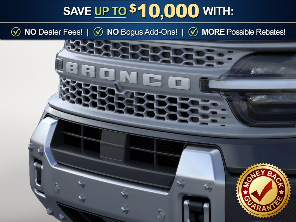 Shadow Black 2026 Ford Bronco Sport Badlands NFT 4WD 8-Speed Automatic EcoBoost 2.0L I4 GTDi DOHC Turbocharged VCT 4-Wheel Disc Brakes, 6 Speakers, ABS brakes, Air Conditioning, Alloy wheels, AM/FM radio: SiriusXM with 360L, AM/FM Stereo, Apple CarPlay/Android Auto, Auto High-beam Headlights, Auto-dimming Rear-View mirror, Automatic temperature control, Badlands Tech Package, Brake assist, Compass, Connected Navigation (1-Year Included), Delay-off headlights, Driver door bin, Driver vanity mirror, Dual front impact airbags, Dual front side impact airbags, Electronic Stability Control, Emergency communication system: SYNC 4 911 Assist, Exterior Parking Camera Rear, Ford Connectivity Package (1-Year Included), Four wheel independent suspension, Front anti-roll bar, Front Bucket Seats, Front Center Armrest, Front fog lights, Front License Plate Bracket, Front reading lights, Fully automatic headlights, Heated door mirrors, Heated front seats, Heated steering wheel, Illuminated entry, Internet access capable: 5G Modem - Ford Connectivity Package, Knee airbag, Leather-Trimmed Heated Front Sport Contour Bucket Seats, Low tire pressure warning, Memory seat, Noise Reduction Module, Occupant sensing airbag, Outside temperature display, Overhead airbag, Overhead console, Panic alarm, Passenger door bin, Passenger vanity mirror, Power door mirrors, Power driver seat, Power passenger seat, Power steering, Power windows, Radio data system, Radio: HD w/B&O Sound System by Bang & Olufsen, Rear anti-roll bar, Rear reading lights, Rear seat center armrest, Rear window defroster, Rear window wiper, Remote keyless entry, Security system, SiriusXM with 360L, Speed control, Speed-sensing steering, Speed-Sensitive Wipers, Split folding rear seat, Steering wheel mounted audio controls, SYNC 4 with Enhanced Voice Recognition, Tachometer, Telescoping steering wheel, Tilt steering wheel, Traction control, Trip computer, Variably intermittent wipers, Wheels: 17" Matte Black-Painted Aluminum.