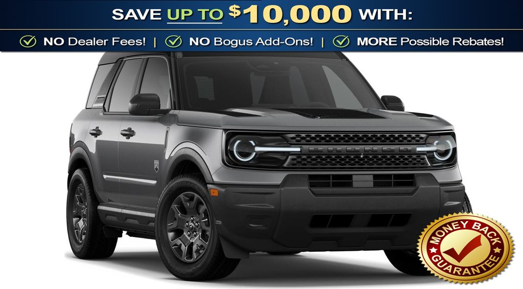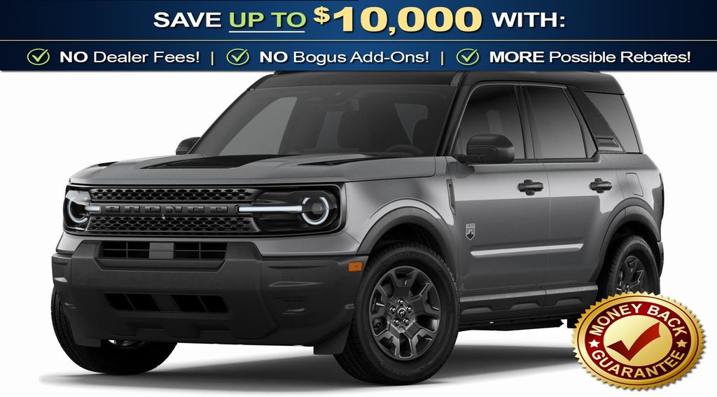 Carbonized Gray Metallic 2026 Ford Bronco Sport Big Bend NFT 4WD 8-Speed Automatic 1.5L EcoBoost 2nd Row Carpeted Seatback, 4-Wheel Disc Brakes, 6 Speakers, ABS brakes, Air Conditioning, Alloy wheels, AM/FM radio: SiriusXM with 360L, AM/FM Stereo, Apple CarPlay/Android Auto, Auto High-beam Headlights, Automatic temperature control, Black Appearance Package, Brake assist, Carbon Black Grille with Black Painted BRONCO Lettering, Cargo Mat, Cloth with Easy-to-Clean Front Bucket Seats, Compass, Convenience Package, Delay-off headlights, Driver door bin, Driver vanity mirror, Dual front impact airbags, Dual front side impact airbags, Electronic Stability Control, Emergency communication system: SYNC 4 911 Assist, Exterior Parking Camera Rear, Ford Connectivity Package (1-Year Included), Four wheel independent suspension, Front and Rear Floor Liners Without Carpet Mats, Front anti-roll bar, Front Bucket Seats, Front Center Armrest, Front Driver/Passenger Seat Back Map Pockets, Front License Plate Bracket, Front reading lights, Fully automatic headlights, Heated 8-Way Power Driver's Seat, Heated door mirrors, Illuminated entry, Internet access capable: 5G Modem - Ford Connectivity Package, Knee airbag, LED Fog Lamps, Liftgate with Black BRONCO SPORT Lettering, Low tire pressure warning, Occupant sensing airbag, Outside temperature display, Overhead airbag, Overhead console, Painted Shadow Black Roof, Panic alarm, Passenger door bin, Passenger vanity mirror, Power door mirrors, Power Moonroof, Power steering, Power windows, Premium Trimmed Front Sport Contour Bucket Seats, Premium Wrapped Steering Wheel, Radio data system, Rear anti-roll bar, Rear Parking Sensors, Rear reading lights, Rear seat center armrest, Rear window defroster, Rear window wiper, Remote keyless entry, Security system, SiriusXM with 360L, Speed control, Speed-sensing steering, Speed-Sensitive Wipers, Split folding rear seat, Steering wheel mounted audio controls, SYNC 4 with Enhanced Voice Recognition, Tachometer, Telescoping steering wheel, Tilt steering wheel, Traction control, Trip computer, Variably intermittent wipers, Wheels: 17" Carbonized Gray Painted Aluminum, Wheels: 17" Matte Black-Painted Aluminum.