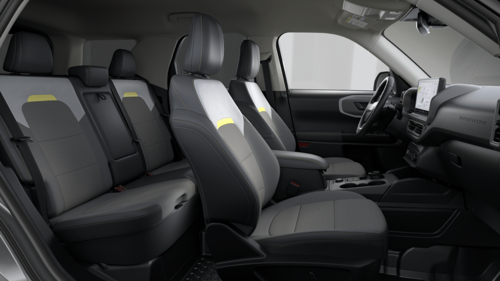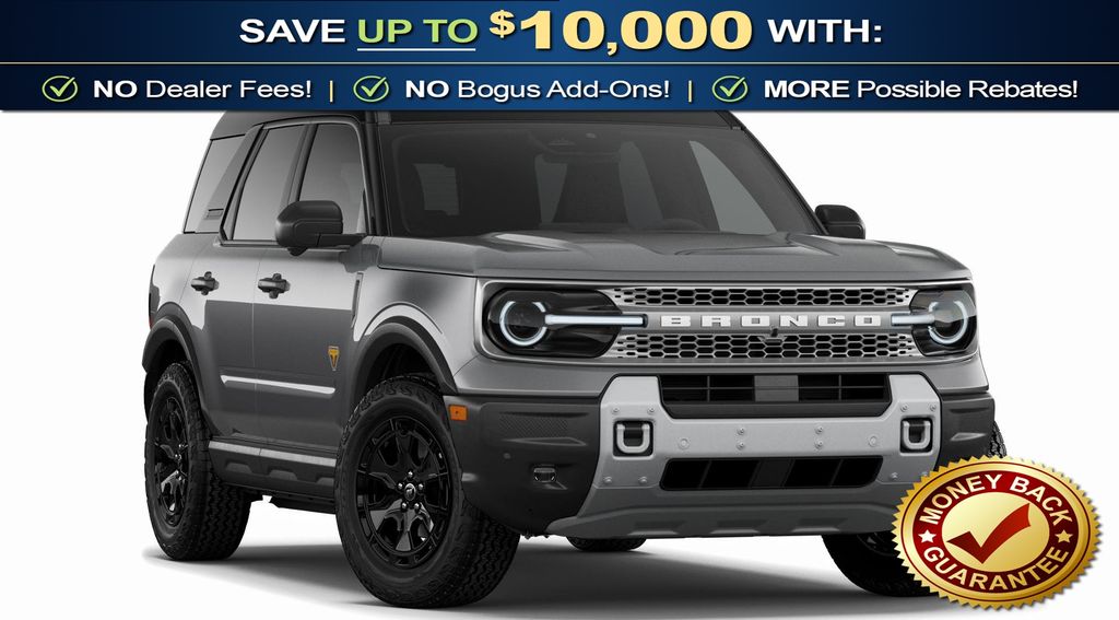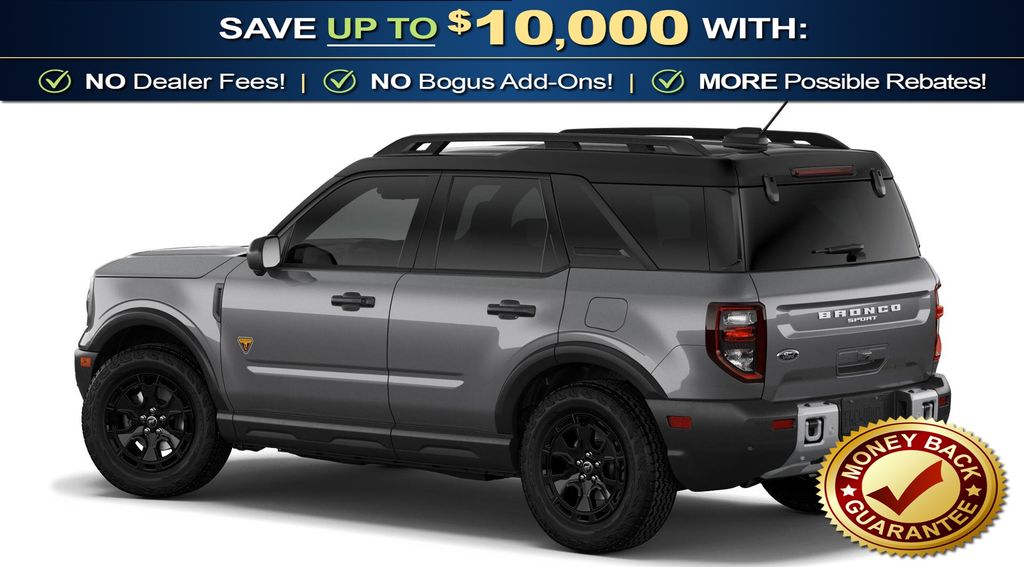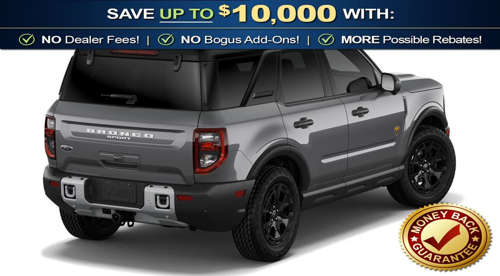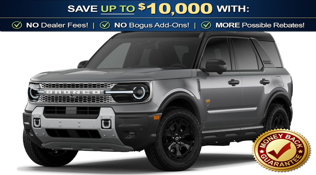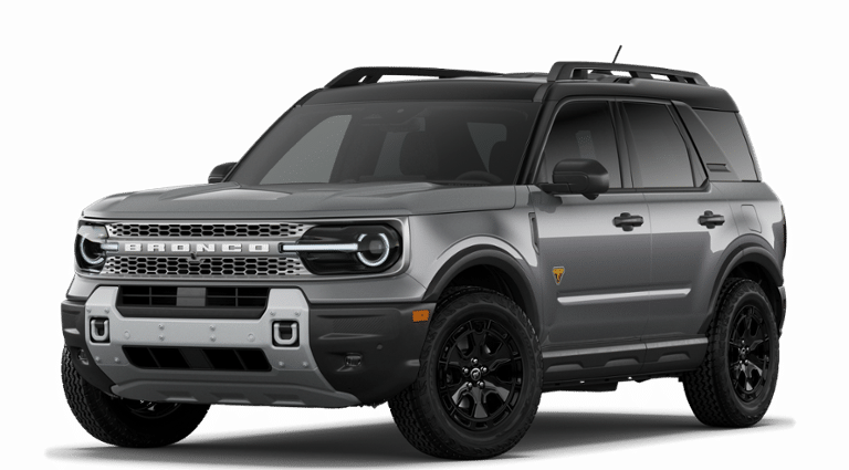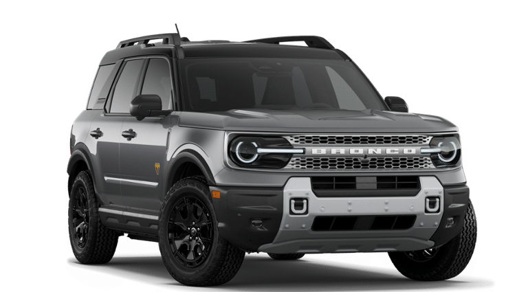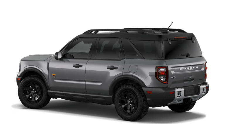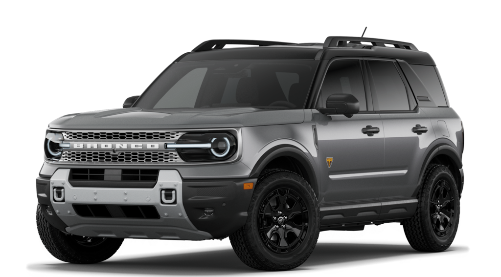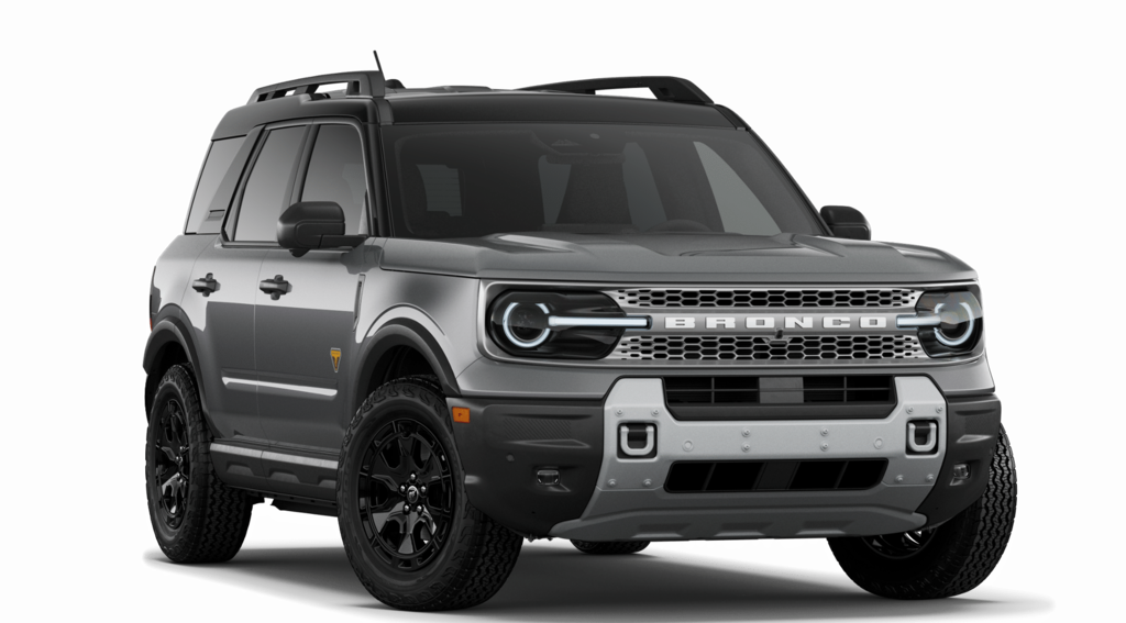 Carbonized Gray Metallic 2026 Ford Bronco Sport Badlands NFT 4WD 8-Speed Automatic EcoBoost 2.0L I4 GTDi DOHC Turbocharged VCT 2 Rear D-Ring Recovery Hooks, 4-Wheel Disc Brakes, 6 Speakers, 850W Engine Cooling Fan, ABS brakes, Air Conditioning, Alloy wheels, AM/FM radio: SiriusXM with 360L, AM/FM Stereo, Apple CarPlay/Android Auto, Auto High-beam Headlights, Auto-dimming Rear-View mirror, Automatic temperature control, Auxiliary Switches and Wiring, Badlands Tech Package, Brake assist, Compass, Connected Navigation (1-Year Included), Delay-off headlights, Driver door bin, Driver vanity mirror, Dual front impact airbags, Dual front side impact airbags, Electronic Stability Control, Emergency communication system: SYNC 4 911 Assist, Exterior Parking Camera Rear, Ford Connectivity Package (1-Year Included), Four wheel independent suspension, Front anti-roll bar, Front Bucket Seats, Front Center Armrest, Front fog lights, Front License Plate Bracket, Front reading lights, Fully automatic headlights, Heated door mirrors, Heated front seats, Heated steering wheel, High Clearance Fender Flares, HOSS 3.0 Off-Road Suspension, Illuminated entry, Internet access capable: 5G Modem - Ford Connectivity Package, Knee airbag, Leather-Trimmed Heated Front Sport Contour Bucket Seats, Low tire pressure warning, Memory seat, Noise Reduction Module, Occupant sensing airbag, Outside temperature display, Overhead airbag, Overhead console, Panic alarm, Passenger door bin, Passenger vanity mirror, Power door mirrors, Power driver seat, Power passenger seat, Power steering, Power windows, Radio data system, Radio: HD w/B&O Sound System by Bang & Olufsen, Rear anti-roll bar, Rear Black Bumpers with Steel Plates, Rear reading lights, Rear seat center armrest, Rear window defroster, Rear window wiper, Remote keyless entry, Sasquatch Badlands Package, Security system, SiriusXM with 360L, Speed control, Speed-sensing steering, Speed-Sensitive Wipers, Split folding rear seat, Steering wheel mounted audio controls, SYNC 4 with Enhanced Voice Recognition, Tachometer, Telescoping steering wheel, Tilt steering wheel, Traction control, Trip computer, Variably intermittent wipers, Wheels: 17" Ebony Black-Painted Aluminum, Wheels: 17" Matte Black-Painted Aluminum.
