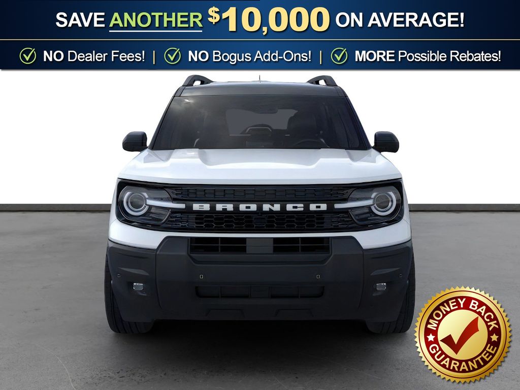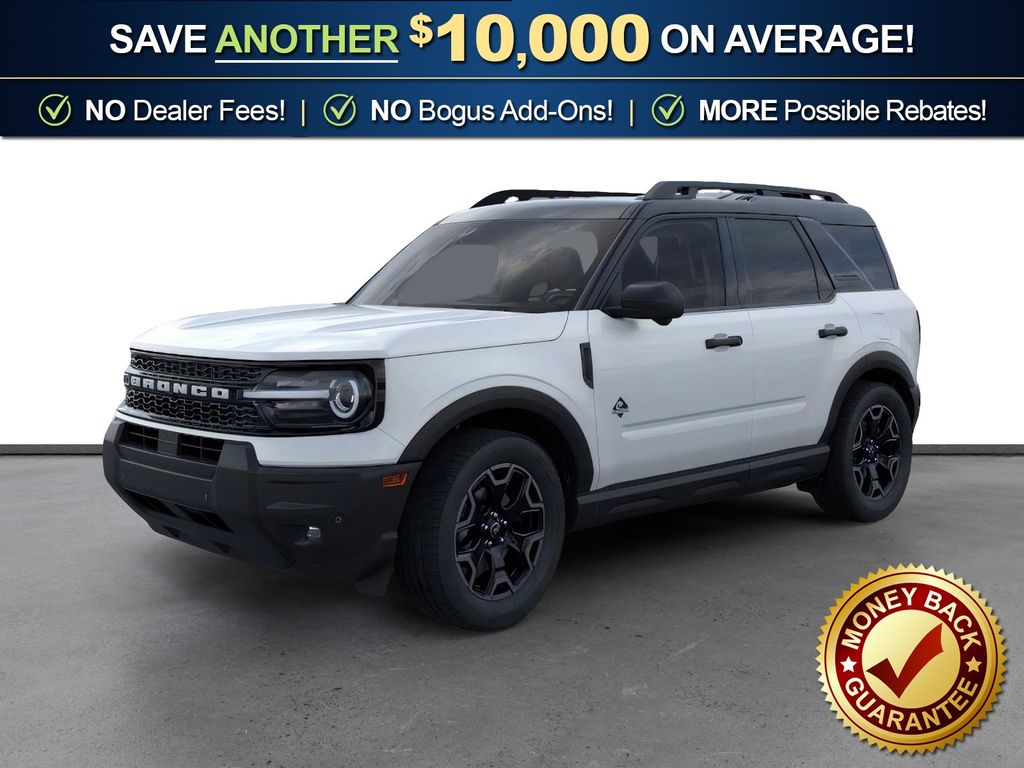 Oxford White 2026 Ford Bronco Sport Outer Banks NFT 4WD 8-Speed Automatic 1.5L EcoBoost 360-Degree Camera with Trail View, 4-Wheel Disc Brakes, 6 Speakers, ABS brakes, Air Conditioning, Alloy wheels, AM/FM radio: SiriusXM with 360L, AM/FM Stereo, Apple CarPlay/Android Auto, Auto High-beam Headlights, Auto-dimming Rear-View mirror, Automatic temperature control, Brake assist, Compass, Connected Navigation (1-Year Included), Delay-off headlights, Driver door bin, Driver vanity mirror, Dual front impact airbags, Dual front side impact airbags, Electronic Stability Control, Emergency communication system: SYNC 4 911 Assist, Exterior Parking Camera Rear, Ford Connectivity Package (1-Year Included), Four wheel independent suspension, Front anti-roll bar, Front Bucket Seats, Front Center Armrest, Front Driver/Passenger Seat Back Map Pockets, Front dual zone A/C, Front fog lights, Front License Plate Bracket, Front Parking Sensors, Front reading lights, Fully automatic headlights, Heated door mirrors, Heated front seats, Heated steering wheel, Illuminated entry, Internet access capable: 5G Modem - Ford Connectivity Package, Knee airbag, Low tire pressure warning, Memory seat, Occupant sensing airbag, Outer Banks Tech Package+, Outside temperature display, Overhead airbag, Overhead console, Panic alarm, Passenger door bin, Passenger vanity mirror, Power door mirrors, Power driver seat, Power passenger seat, Power steering, Power windows, Radio data system, Radio: HD w/B&O Sound System by Bang & Olufsen, Rear anti-roll bar, Rear Parking Sensors, Rear reading lights, Rear seat center armrest, Rear window defroster, Rear window wiper, Remote keyless entry, Reverse Brake Assist, Security system, SiriusXM with 360L, Speed control, Speed-sensing steering, Speed-Sensitive Wipers, Split folding rear seat, Steering wheel mounted audio controls, SYNC 4 with Enhanced Voice Recognition, Tachometer, Telescoping steering wheel, Tilt steering wheel, Traction control, Trip computer, Variably intermittent wipers, Wheels: 18" Ebony Black.