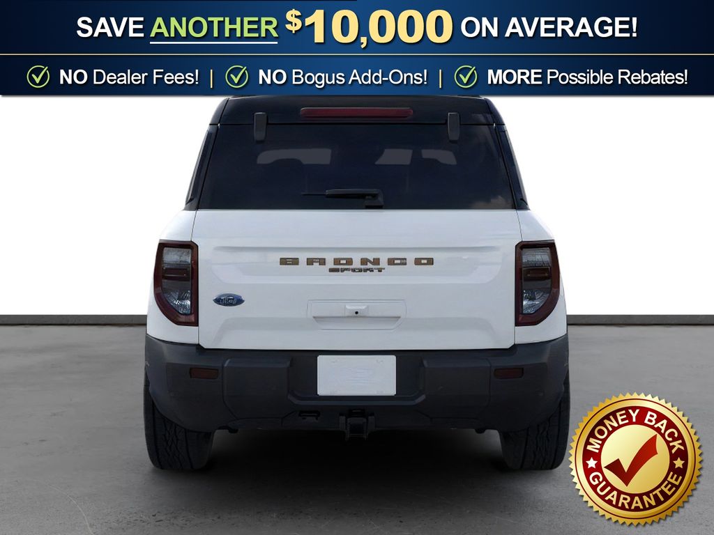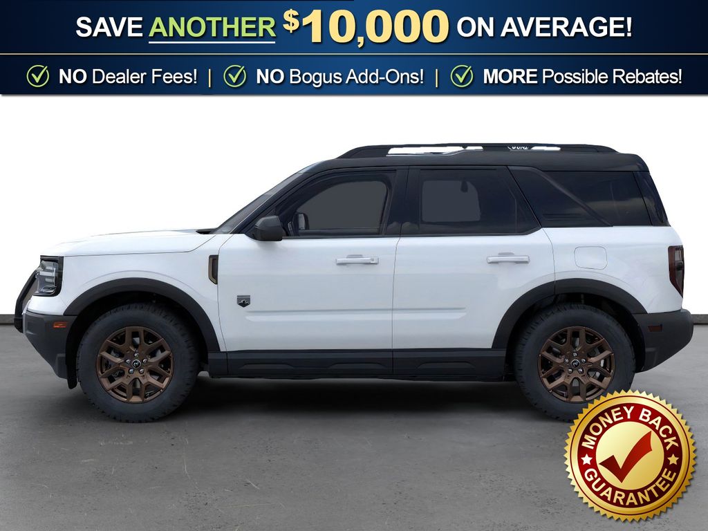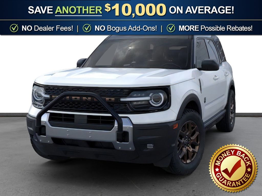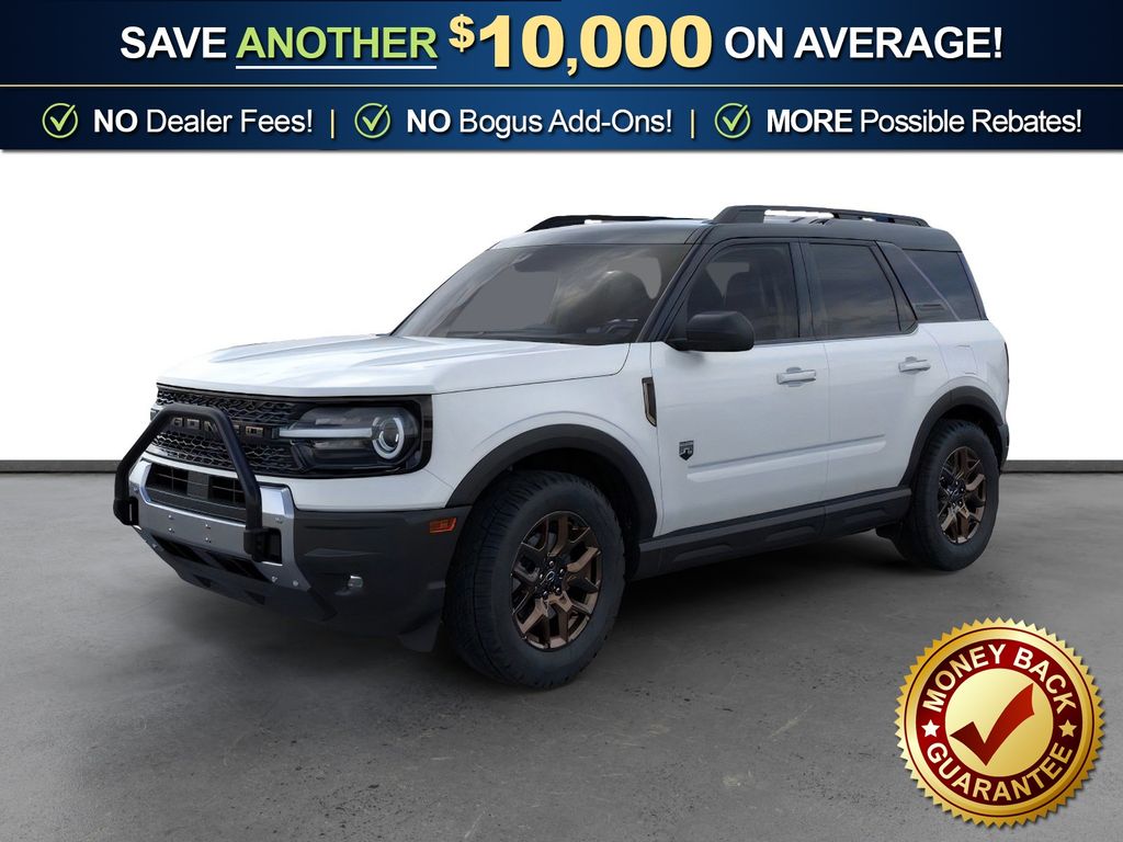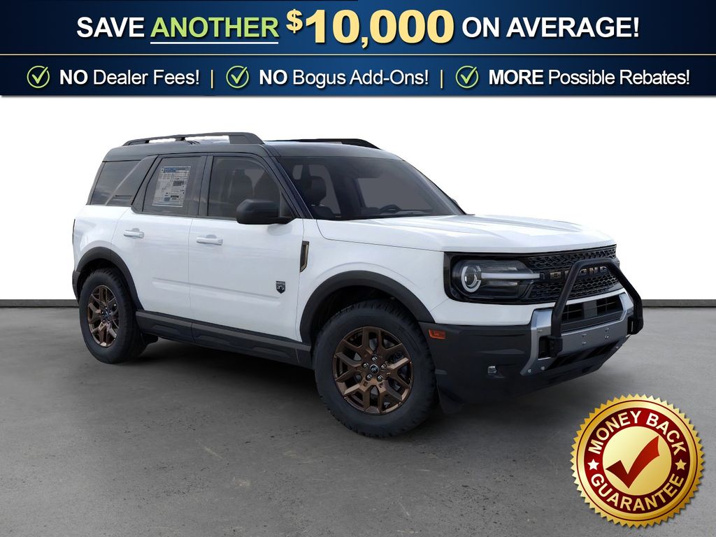 Oxford White 2026 Ford Bronco Sport Big Bend NFT 4WD 8-Speed Automatic 1.5L EcoBoost 4-Wheel Disc Brakes, 400W Pro Power Onboard, 6 Speakers, ABS brakes, Air Conditioning, All Weather Floor Liners with Bronze Accents, Alloy wheels, AM/FM radio: SiriusXM with 360L, AM/FM Stereo, Apple CarPlay/Android Auto, Auto High-beam Headlights, Automatic temperature control, Auxiliary Switches and Wiring, Black Diamond Off-Road Package, Body-Color Door Handles, Brake assist, Bronze + Black Diamond Off-Road Package, Bronze Badges, Bronze Vent Fender, Carbon Black Grille with Black Painted BRONCO Lettering, Cargo Mat with Bronze Accents, Class II Trailer Tow Package with Trailer Sway Control, Cloth with Easy-to-Clean Front Bucket Seats, Compass, Convenience Package, Delay-off headlights, Driver door bin, Driver vanity mirror, Dual front impact airbags, Dual front side impact airbags, Electronic Stability Control, Emergency communication system: SYNC 4 911 Assist, Exterior Parking Camera Rear, Ford Connectivity Package (1-Year Included), Four wheel independent suspension, Front anti-roll bar, Front Black Molded-in-Color (MIC) Bumper, Front Brush Guard, Front Bucket Seats, Front Center Armrest, Front Driver/Passenger Seat Back Map Pockets, Front License Plate Bracket, Front reading lights, Fully automatic headlights, Heated 8-Way Power Driver's Seat, Heated door mirrors, Illuminated entry, Internet access capable: 5G Modem - Ford Connectivity Package, Knee airbag, LED Fog Lamps, Liftgate with Black BRONCO SPORT Lettering, Low tire pressure warning, Occupant sensing airbag, Outside temperature display, Overhead airbag, Overhead console, Painted Shadow Black Roof, Panic alarm, Passenger door bin, Passenger vanity mirror, Power door mirrors, Power steering, Power windows, Premium Trimmed Front Sport Contour Bucket Seats, Premium Wrapped Steering Wheel, Radio data system, Rear anti-roll bar, Rear Parking Sensors, Rear reading lights, Rear seat center armrest, Rear window defroster, Rear window wiper, Remote keyless entry, Security system, SiriusXM with 360L, Speed control, Speed-sensing steering, Speed-Sensitive Wipers, Split folding rear seat, Steering wheel mounted audio controls, SYNC 4 with Enhanced Voice Recognition, Tachometer, Telescoping steering wheel, Tilt steering wheel, Traction control, Trip computer, Variably intermittent wipers, Wheels: 17" Carbonized Gray Painted Aluminum, Wheels: 17" Carbonized Gray-Painted Aluminum, Wheels: 17" Sinister Bronze-Painted Aluminum.