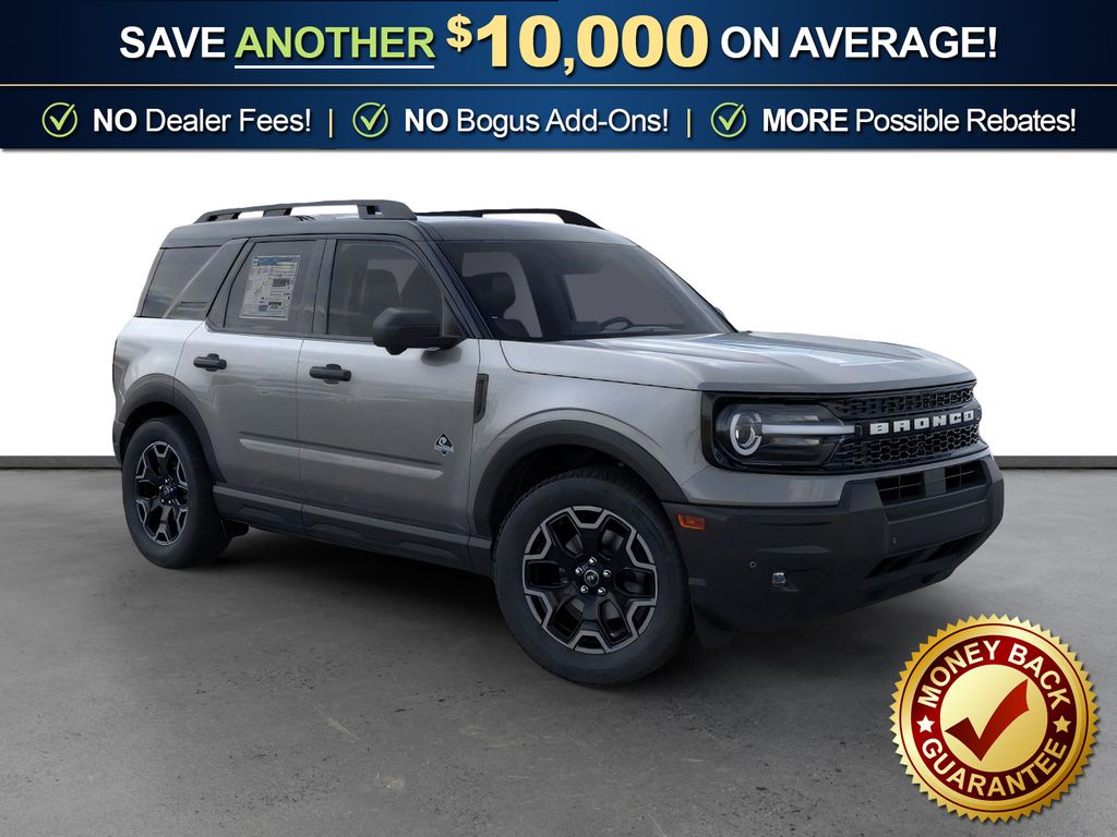 Carbonized Gray Metallic 2026 Ford Bronco Sport Outer Banks NFT 4WD 8-Speed Automatic 1.5L EcoBoost 360-Degree Camera with Trail View, 4-Wheel Disc Brakes, 6 Speakers, ABS brakes, Air Conditioning, Alloy wheels, AM/FM radio: SiriusXM with 360L, AM/FM Stereo, Apple CarPlay/Android Auto, Auto High-beam Headlights, Auto-dimming Rear-View mirror, Automatic temperature control, Brake assist, Compass, Connected Navigation (1-Year Included), Delay-off headlights, Driver door bin, Driver vanity mirror, Dual front impact airbags, Dual front side impact airbags, Electronic Stability Control, Emergency communication system: SYNC 4 911 Assist, Exterior Parking Camera Rear, Ford Connectivity Package (1-Year Included), Four wheel independent suspension, Front anti-roll bar, Front Bucket Seats, Front Center Armrest, Front Driver/Passenger Seat Back Map Pockets, Front dual zone A/C, Front fog lights, Front License Plate Bracket, Front Parking Sensors, Front reading lights, Fully automatic headlights, Heated door mirrors, Heated front seats, Heated steering wheel, Illuminated entry, Internet access capable: 5G Modem - Ford Connectivity Package, Knee airbag, Low tire pressure warning, Memory seat, Occupant sensing airbag, Outer Banks Tech Package+, Outside temperature display, Overhead airbag, Overhead console, Panic alarm, Passenger door bin, Passenger vanity mirror, Power door mirrors, Power driver seat, Power passenger seat, Power steering, Power windows, Radio data system, Radio: HD w/B&O Sound System by Bang & Olufsen, Rear anti-roll bar, Rear Parking Sensors, Rear reading lights, Rear seat center armrest, Rear window defroster, Rear window wiper, Remote keyless entry, Reverse Brake Assist, Security system, SiriusXM with 360L, Speed control, Speed-sensing steering, Speed-Sensitive Wipers, Split folding rear seat, Steering wheel mounted audio controls, SYNC 4 with Enhanced Voice Recognition, Tachometer, Telescoping steering wheel, Tilt steering wheel, Traction control, Trip computer, Variably intermittent wipers, Wheels: 18" Ebony Black.