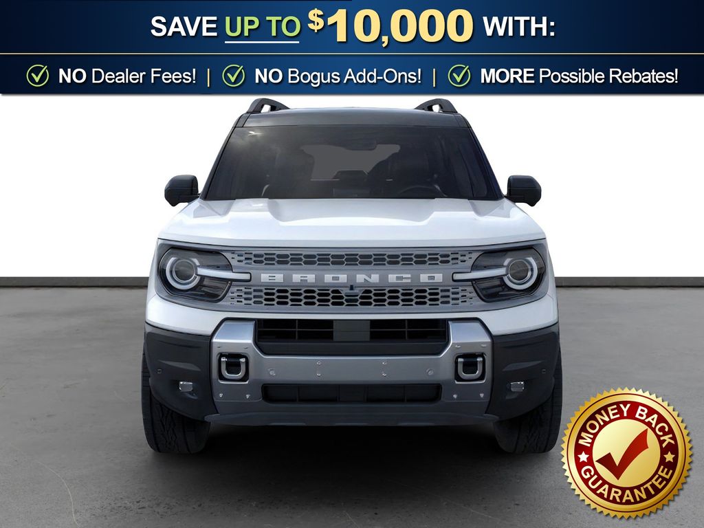 Oxford White 2026 Ford Bronco Sport Badlands NFT 4WD 8-Speed Automatic EcoBoost 2.0L I4 GTDi DOHC Turbocharged VCT 4-Wheel Disc Brakes, 6 Speakers, ABS brakes, Air Conditioning, Alloy wheels, AM/FM radio: SiriusXM with 360L, AM/FM Stereo, Apple CarPlay/Android Auto, Auto High-beam Headlights, Auto-dimming Rear-View mirror, Automatic temperature control, Badlands Tech Package, Brake assist, Compass, Connected Navigation (1-Year Included), Delay-off headlights, Driver door bin, Driver vanity mirror, Dual front impact airbags, Dual front side impact airbags, Electronic Stability Control, Emergency communication system: SYNC 4 911 Assist, Exterior Parking Camera Rear, Ford Connectivity Package (1-Year Included), Four wheel independent suspension, Front anti-roll bar, Front Bucket Seats, Front Center Armrest, Front fog lights, Front License Plate Bracket, Front reading lights, Fully automatic headlights, Heated door mirrors, Heated front seats, Heated steering wheel, Illuminated entry, Internet access capable: 5G Modem - Ford Connectivity Package, Knee airbag, Leather-Trimmed Heated Front Sport Contour Bucket Seats, Low tire pressure warning, Memory seat, Noise Reduction Module, Occupant sensing airbag, Outside temperature display, Overhead airbag, Overhead console, Panic alarm, Passenger door bin, Passenger vanity mirror, Power door mirrors, Power driver seat, Power Moonroof, Power passenger seat, Power steering, Power windows, Radio data system, Radio: HD w/B&O Sound System by Bang & Olufsen, Rear anti-roll bar, Rear reading lights, Rear seat center armrest, Rear window defroster, Rear window wiper, Remote keyless entry, Security system, SiriusXM with 360L, Speed control, Speed-sensing steering, Speed-Sensitive Wipers, Split folding rear seat, Steering wheel mounted audio controls, SYNC 4 with Enhanced Voice Recognition, Tachometer, Telescoping steering wheel, Tilt steering wheel, Traction control, Trip computer, Variably intermittent wipers, Wheels: 17" Matte Black-Painted Aluminum.