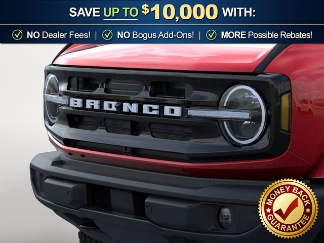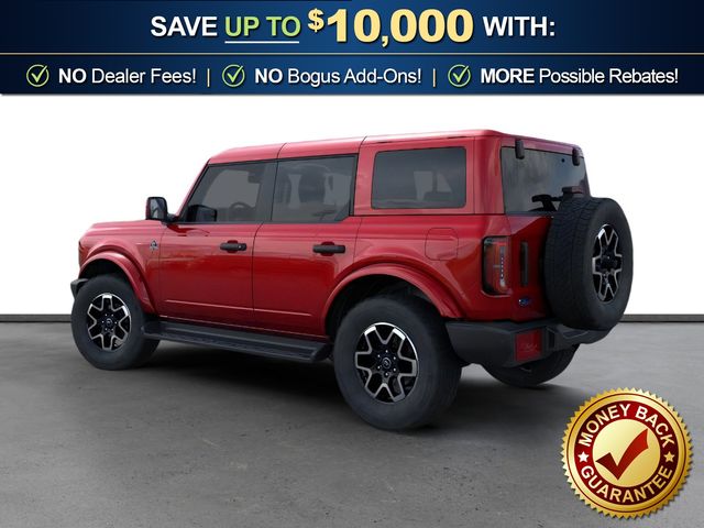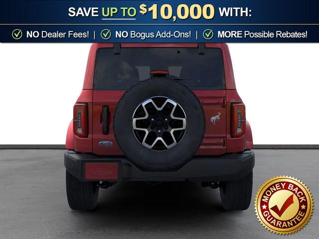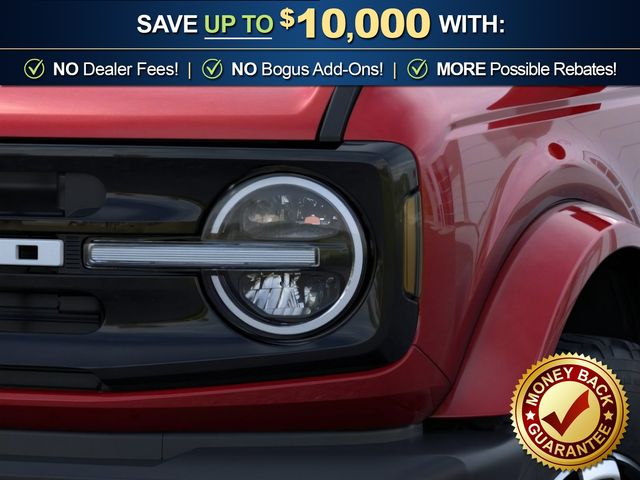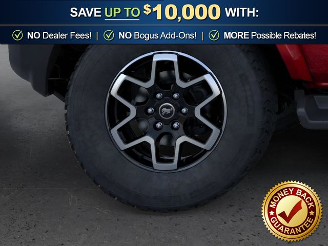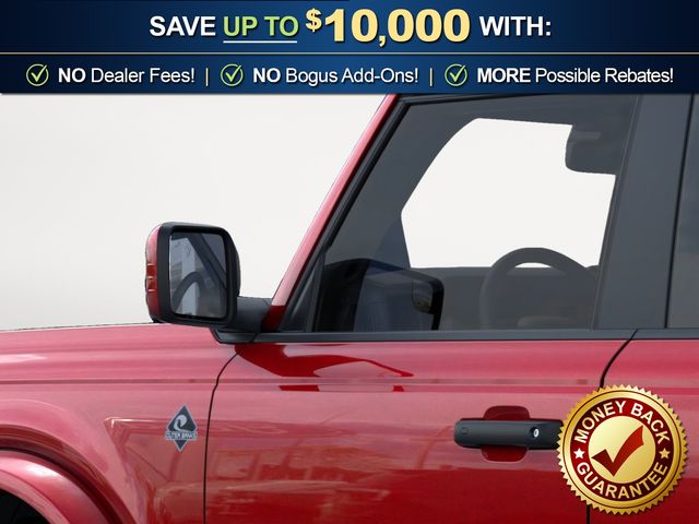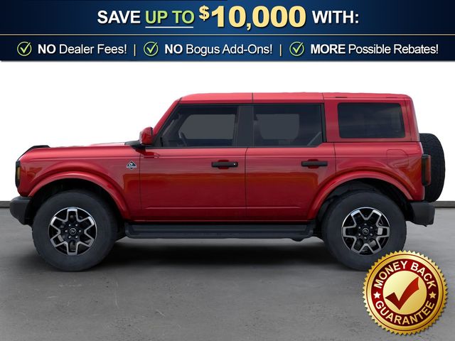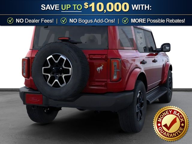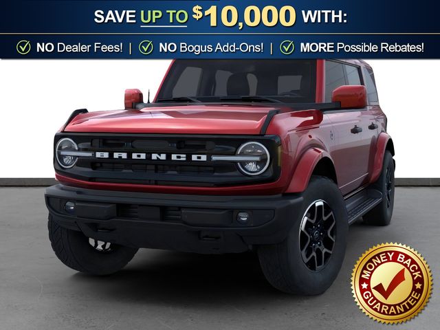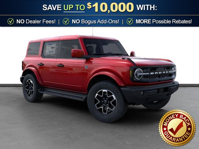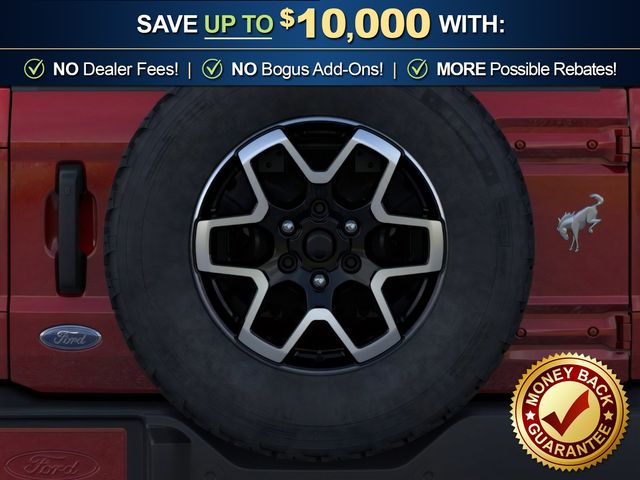 2026 Ford Bronco Outer Banks NFT Ruby Red Metallic Tinted Clearcoat Outer Banks NFT 4WD 10-Speed Automatic 2.7L EcoBoost V6 18" Bright Machined Aluminum Wheels, 3.73 Axle Ratio, 4-Wheel Disc Brakes, 7 Speakers, ABS brakes, Air Conditioning, Alloy wheels, AM/FM radio: SiriusXM with 360L, AM/FM Stereo, Auto High-beam Headlights, Auto-dimming Rear-View mirror, Automatic temperature control, Brake assist, Compass, Connected Navigation, Delay-off headlights, Driver door bin, Driver vanity mirror, Dual front impact airbags, Dual front side impact airbags, Electronic Stability Control, Emergency communication system: 911 Assist, Exterior Parking Camera Rear, Ford Connectivity Package (1-Year Included), Front anti-roll bar, Front Bucket Seats, Front Center Armrest, Front dual zone A/C, Front fog lights, Front reading lights, Front wheel independent suspension, Fully automatic headlights, Hard Top Sound Deadening Headliner, Heated door mirrors, Heated front seats, Heated Leather-Trimmed/Vinyl Bucket Seats, Heated steering wheel, Illuminated entry, Integrated roll-over protection, Leather Shift Knob, Low tire pressure warning, Navigation system: Connected Navigation, Occupant sensing airbag, Outside temperature display, Overhead airbag, Overhead console, Painted Hard Top, Panic alarm, Passenger door bin, Passenger vanity mirror, Power door mirrors, Power driver seat, Power passenger seat, Power steering, Power windows, Radio data system, Rear seat center armrest, Rear-Window Defroster and Washer, Remote keyless entry, Security system, SiriusXM with 360L, Speed control, Split folding rear seat, Steering wheel mounted audio controls, SYNC 4, Tachometer, Telescoping steering wheel, Tilt steering wheel, Traction control, Trip computer, Variably intermittent wipers, Voltmeter.