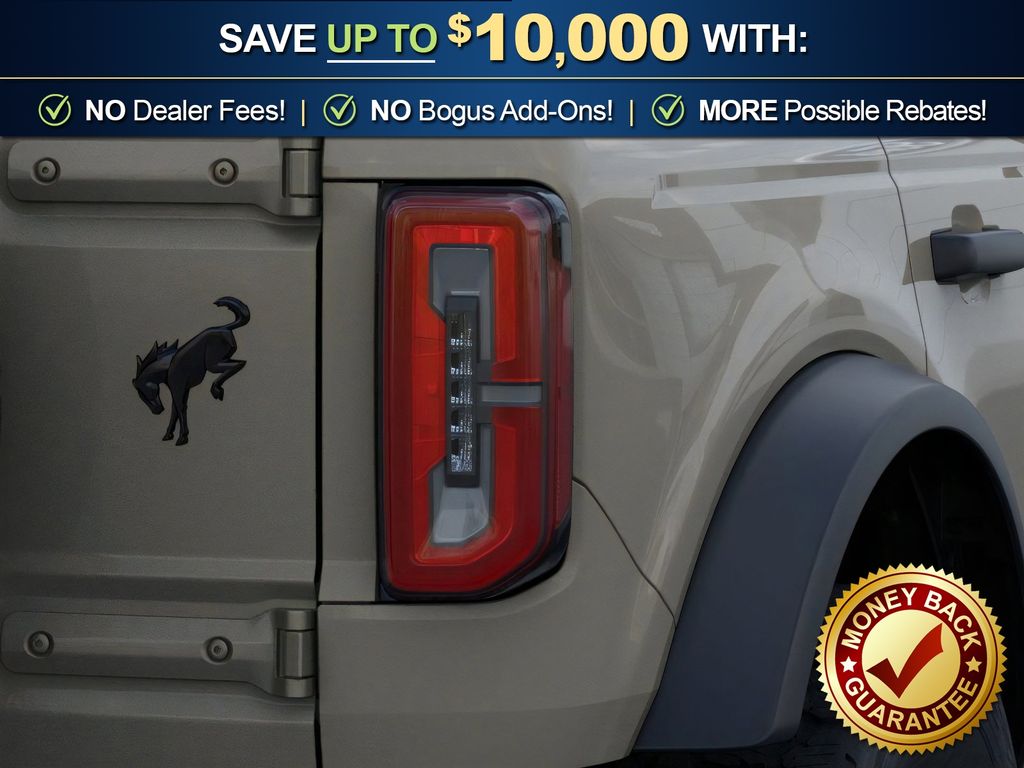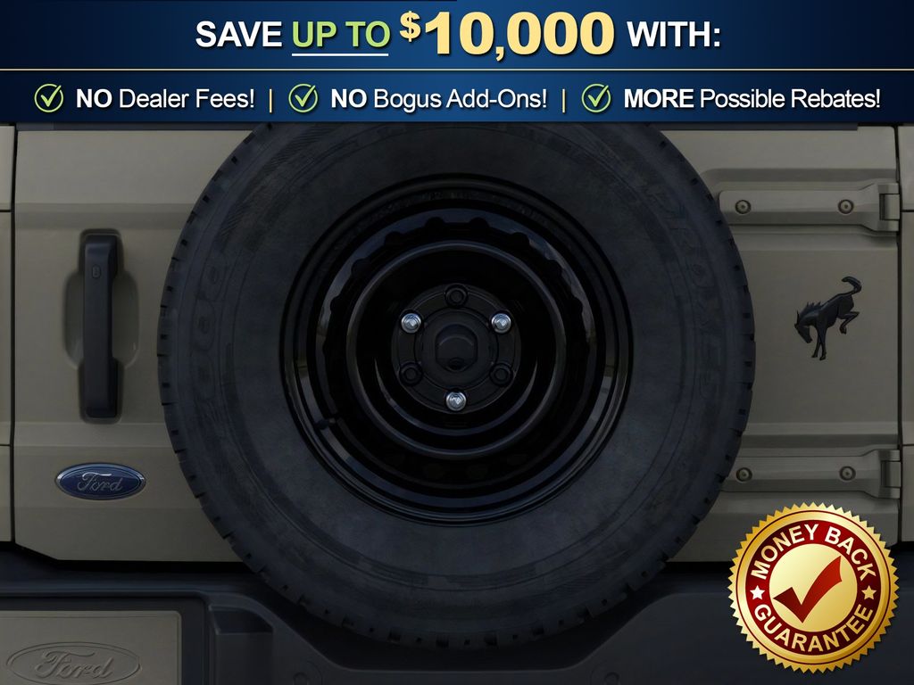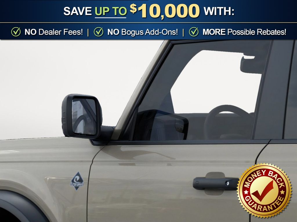 Desert Sand 2026 Ford Bronco Outer Banks NFT 4WD 10-Speed Automatic 2.7L EcoBoost V6 18" Bright Machined Aluminum Wheels, 3.73 Axle Ratio, 4-Wheel Disc Brakes, 7 Speakers, ABS brakes, Air Conditioning, Alloy wheels, AM/FM radio: SiriusXM with 360L, AM/FM Stereo, Auto High-beam Headlights, Auto-dimming Rear-View mirror, Automatic temperature control, Black Appearance Package, Black Molded-in-Color Door Handles, Black Molded-in-Color Fender Flares, Black Molded-in-Color Sideview Mirror Caps, Black-Painted Molded-in-Color Grille, Brake assist, Compass, Connected Navigation, Delay-off headlights, Driver door bin, Driver vanity mirror, Dual front impact airbags, Dual front side impact airbags, Electronic Stability Control, Emergency communication system: 911 Assist, Exterior Parking Camera Rear, Ford Connectivity Package (1-Year Included), Front anti-roll bar, Front Bucket Seats, Front Center Armrest, Front dual zone A/C, Front fog lights, Front License Plate Bracket, Front reading lights, Front wheel independent suspension, Fully automatic headlights, Hard Top Sound Deadening Headliner, Heated door mirrors, Heated front seats, Heated Leather-Trimmed/Vinyl Bucket Seats, Heated steering wheel, Illuminated entry, Integrated roll-over protection, Leather Shift Knob, Low tire pressure warning, Navigation system: Connected Navigation, Occupant sensing airbag, Outside temperature display, Overhead airbag, Overhead console, Panic alarm, Passenger door bin, Passenger vanity mirror, Power door mirrors, Power driver seat, Power passenger seat, Power steering, Power windows, Radio data system, Rear seat center armrest, Rear-Window Defroster and Washer, Remote keyless entry, Security system, Shadow Black-Painted Hard Top, SiriusXM with 360L, Speed control, Split folding rear seat, Steering wheel mounted audio controls, SYNC 4, Tachometer, Telescoping steering wheel, Tilt steering wheel, Traction control, Trip computer, Variably intermittent wipers, Voltmeter.