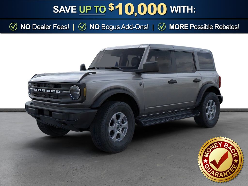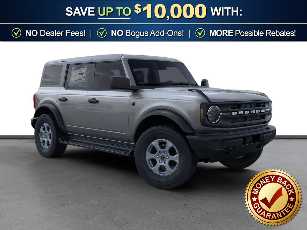 Carbonized Gray Metallic 2026 Ford Bronco Big Bend NFT 4WD 10-Speed Automatic 2.3L EcoBoost I-4 4-Wheel Disc Brakes, 4.46 Axle Ratio, 7 Speakers, ABS brakes, Air Conditioning, Alloy wheels, AM/FM radio: SiriusXM with 360L, AM/FM Stereo, Auto High-beam Headlights, Brake assist, Carbonized Gray Molded-in-Color Hard Top, Cloth Bucket Seats, Compass, Delay-off headlights, Driver door bin, Driver vanity mirror, Dual front impact airbags, Dual front side impact airbags, Electronic Stability Control, Emergency communication system: 911 Assist, Exterior Parking Camera Rear, Ford Connectivity Package (1-Year Included), Front anti-roll bar, Front Bucket Seats, Front Center Armrest, Front License Plate Bracket, Front reading lights, Front wheel independent suspension, Fully automatic headlights, Hard Top Sound Deadening Headliner, Heated door mirrors, Illuminated entry, Integrated roll-over protection, Low tire pressure warning, Occupant sensing airbag, Outside temperature display, Overhead airbag, Overhead console, Panic alarm, Passenger door bin, Passenger vanity mirror, Power door mirrors, Power steering, Power windows, Radio data system, Rear-Window Defroster and Washer, Remote keyless entry, Security system, Side Step, SiriusXM with 360L, Speed control, Split folding rear seat, Steering wheel mounted audio controls, SYNC 4, Tachometer, Telescoping steering wheel, Tilt steering wheel, Traction control, Trip computer, Variably intermittent wipers, Wheels: 17" Carbonized Gray-Painted Aluminum.