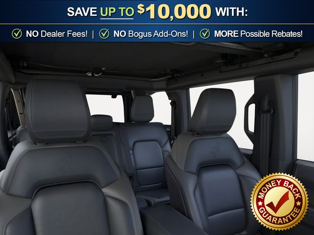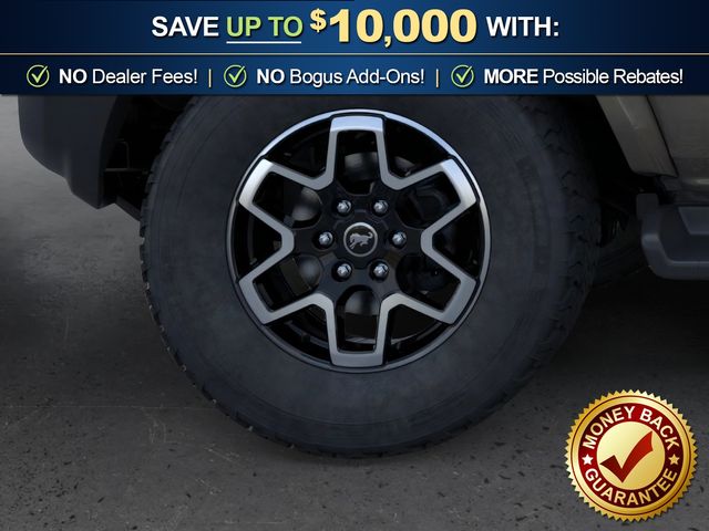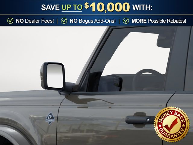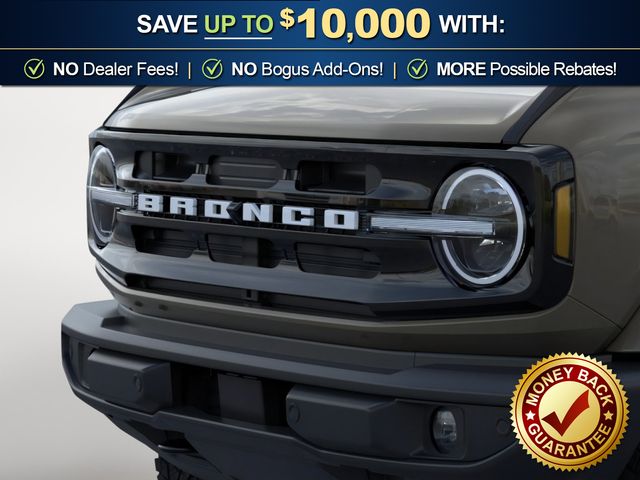 2026 Ford Bronco Outer Banks NFT Marsh Gray Outer Banks NFT 4WD 10-Speed Automatic 2.7L EcoBoost V6 18" Bright Machined Aluminum Wheels, 3.73 Axle Ratio, 4-Wheel Disc Brakes, 7 Speakers, ABS brakes, Air Conditioning, Alloy wheels, AM/FM radio: SiriusXM with 360L, AM/FM Stereo, Auto High-beam Headlights, Auto-dimming Rear-View mirror, Automatic temperature control, Brake assist, Carbonized Gray Molded-in-Color Hard Top, Compass, Connected Navigation, Delay-off headlights, Driver door bin, Driver vanity mirror, Dual front impact airbags, Dual front side impact airbags, Electronic Stability Control, Emergency communication system: 911 Assist, Exterior Parking Camera Rear, Ford Connectivity Package (1-Year Included), Front anti-roll bar, Front Bucket Seats, Front Center Armrest, Front dual zone A/C, Front fog lights, Front reading lights, Front wheel independent suspension, Fully automatic headlights, Hard Top Sound Deadening Headliner, Heated door mirrors, Heated front seats, Heated Leather-Trimmed/Vinyl Bucket Seats, Heated steering wheel, Illuminated entry, Integrated roll-over protection, Leather Shift Knob, Low tire pressure warning, Navigation system: Connected Navigation, Occupant sensing airbag, Outside temperature display, Overhead airbag, Overhead console, Panic alarm, Passenger door bin, Passenger vanity mirror, Power door mirrors, Power driver seat, Power passenger seat, Power steering, Power windows, Radio data system, Rear seat center armrest, Rear-Window Defroster and Washer, Remote keyless entry, Security system, SiriusXM with 360L, Speed control, Split folding rear seat, Steering wheel mounted audio controls, SYNC 4, Tachometer, Telescoping steering wheel, Tilt steering wheel, Traction control, Trip computer, Variably intermittent wipers, Voltmeter.