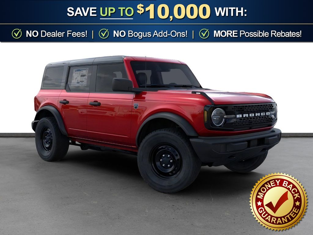 Ruby Red Metallic Tinted Clearcoat 2026 Ford Bronco Big Bend NFT 4WD 10-Speed Automatic 2.3L EcoBoost I-4 4-Wheel Disc Brakes, 4.46 Axle Ratio, 7 Speakers, ABS brakes, Air Conditioning, Alloy wheels, AM/FM radio: SiriusXM with 360L, AM/FM Stereo, Auto High-beam Headlights, Black Appearance Package, Black Molded-in-Color Door Handles, Black Molded-in-Color Fender Flares, Black Molded-in-Color Sideview Mirror Caps, Black-Painted Molded-in-Color Grille, Brake assist, Cloth Bucket Seats, Compass, Delay-off headlights, Driver door bin, Driver vanity mirror, Dual front impact airbags, Dual front side impact airbags, Electronic Stability Control, Emergency communication system: 911 Assist, Exterior Parking Camera Rear, Ford Connectivity Package (1-Year Included), Front anti-roll bar, Front Bucket Seats, Front Center Armrest, Front License Plate Bracket, Front reading lights, Front wheel independent suspension, Fully automatic headlights, Hard Top Sound Deadening Headliner, Heated door mirrors, Illuminated entry, Integrated roll-over protection, Low tire pressure warning, Occupant sensing airbag, Outside temperature display, Overhead airbag, Overhead console, Panic alarm, Passenger door bin, Passenger vanity mirror, Power door mirrors, Power steering, Power windows, Radio data system, Rear-Window Defroster and Washer, Remote keyless entry, Security system, Shadow Black Painted Hard Top, SiriusXM with 360L, Speed control, Split folding rear seat, Steering wheel mounted audio controls, SYNC 4, Tachometer, Telescoping steering wheel, Tilt steering wheel, Traction control, Trip computer, Variably intermittent wipers, Wheels: 17" Carbonized Gray-Painted Aluminum.