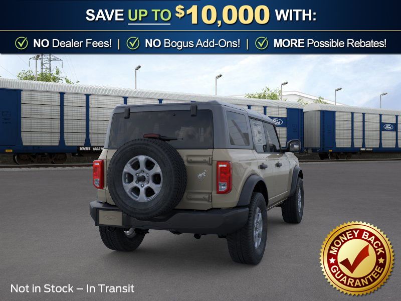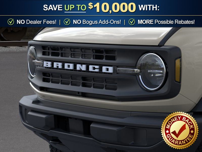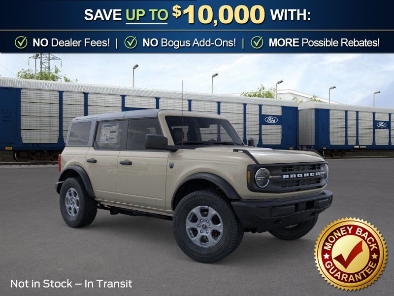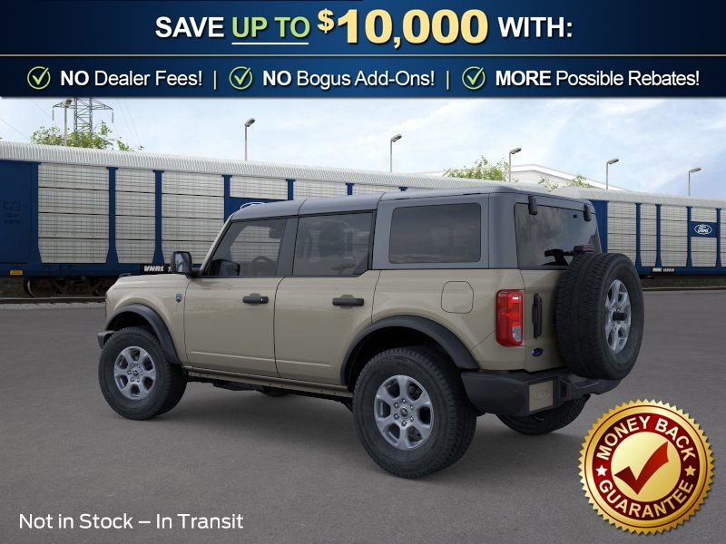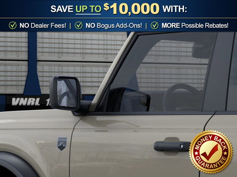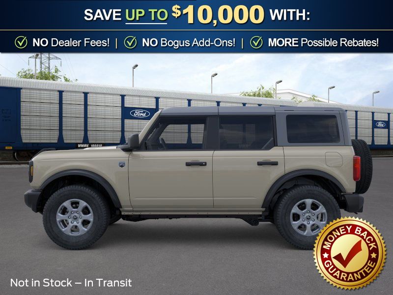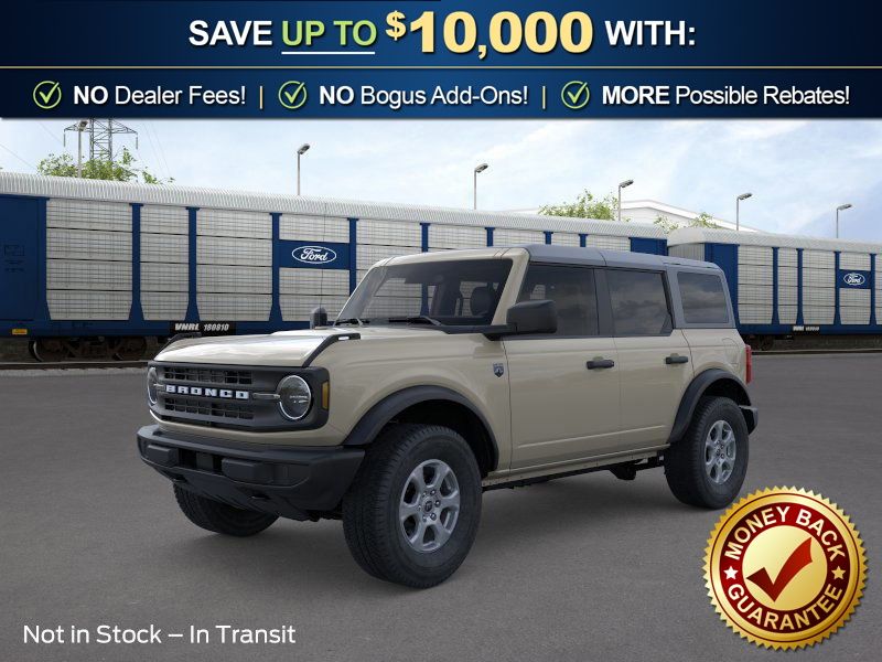 Desert Sand 2026 Ford Bronco Big Bend NFT 4WD 10-Speed Automatic 2.3L EcoBoost I-4 4-Wheel Disc Brakes, 4.46 Axle Ratio, 7 Speakers, ABS brakes, Air Conditioning, Alloy wheels, AM/FM radio: SiriusXM with 360L, AM/FM Stereo, Auto High-beam Headlights, Brake assist, Carbonized Gray Molded-in-Color Hard Top, Cloth Bucket Seats, Compass, Delay-off headlights, Driver door bin, Driver vanity mirror, Dual front impact airbags, Dual front side impact airbags, Electronic Stability Control, Emergency communication system: 911 Assist, Exterior Parking Camera Rear, Ford Connectivity Package (1-Year Included), Front anti-roll bar, Front Bucket Seats, Front Center Armrest, Front License Plate Bracket, Front reading lights, Front wheel independent suspension, Fully automatic headlights, Hard Top Sound Deadening Headliner, Heated door mirrors, Illuminated entry, Integrated roll-over protection, Low tire pressure warning, Occupant sensing airbag, Outside temperature display, Overhead airbag, Overhead console, Panic alarm, Passenger door bin, Passenger vanity mirror, Power door mirrors, Power steering, Power windows, Radio data system, Rear-Window Defroster and Washer, Remote keyless entry, Security system, SiriusXM with 360L, Speed control, Split folding rear seat, Steering wheel mounted audio controls, SYNC 4, Tachometer, Telescoping steering wheel, Tilt steering wheel, Traction control, Trip computer, Variably intermittent wipers, Wheels: 17" Carbonized Gray-Painted Aluminum.