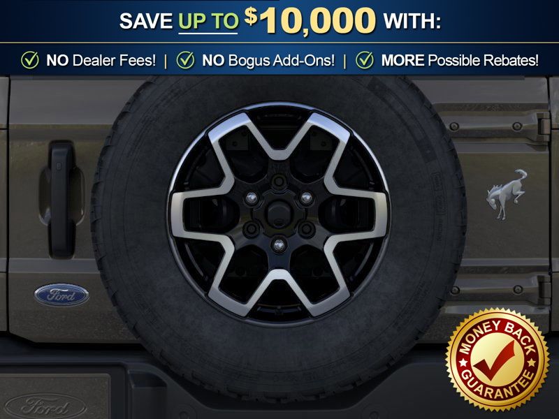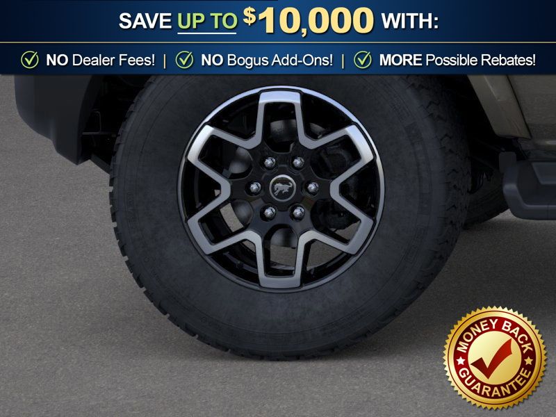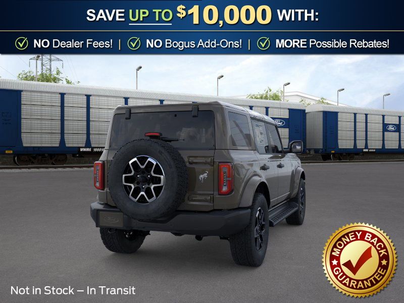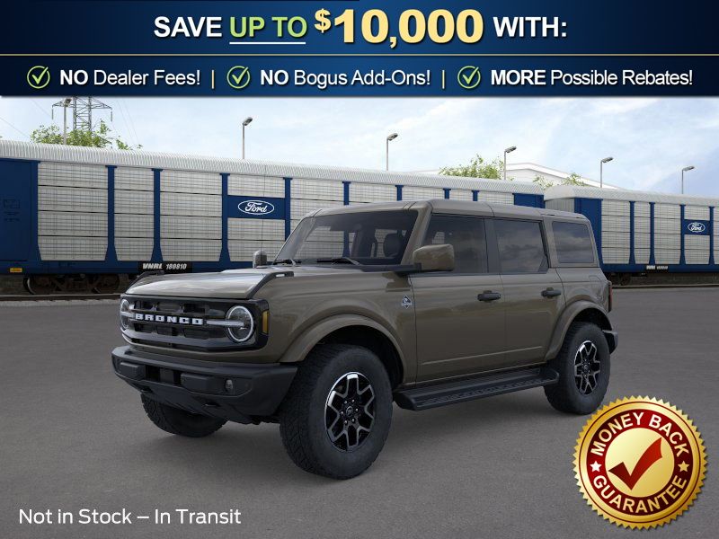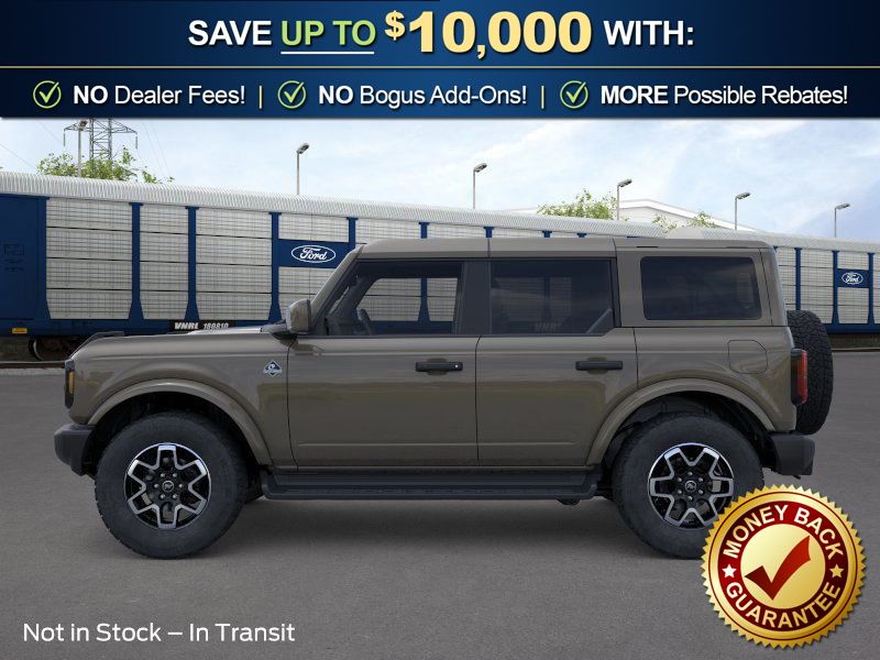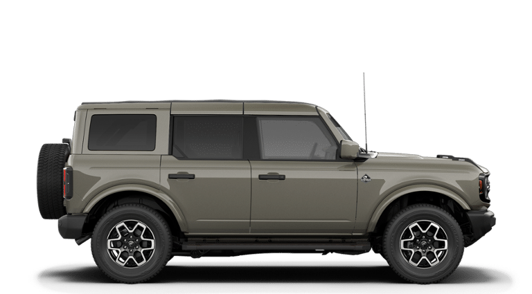 Marsh Gray 2026 Ford Bronco Outer Banks NFT 4WD 10-Speed Automatic 2.7L EcoBoost V6 18" Bright Machined Aluminum Wheels, 3.73 Axle Ratio, 4-Wheel Disc Brakes, 7 Speakers, ABS brakes, Air Conditioning, Alloy wheels, AM/FM radio: SiriusXM with 360L, AM/FM Stereo, Auto High-beam Headlights, Auto-dimming Rear-View mirror, Automatic temperature control, Body Color Painted Hard Top, Brake assist, Compass, Connected Navigation, Delay-off headlights, Driver door bin, Driver vanity mirror, Dual front impact airbags, Dual front side impact airbags, Electronic Stability Control, Emergency communication system: 911 Assist, Exterior Parking Camera Rear, Ford Connectivity Package (1-Year Included), Front anti-roll bar, Front Bucket Seats, Front Center Armrest, Front dual zone A/C, Front fog lights, Front License Plate Bracket, Front reading lights, Front wheel independent suspension, Fully automatic headlights, Hard Top Sound Deadening Headliner, Heated door mirrors, Heated front seats, Heated Leather-Trimmed/Vinyl Bucket Seats, Heated steering wheel, Illuminated entry, Integrated roll-over protection, Leather Shift Knob, Low tire pressure warning, Navigation system: Connected Navigation, Occupant sensing airbag, Outside temperature display, Overhead airbag, Overhead console, Panic alarm, Passenger door bin, Passenger vanity mirror, Power door mirrors, Power driver seat, Power passenger seat, Power steering, Power windows, Radio data system, Rear seat center armrest, Rear-Window Defroster and Washer, Remote keyless entry, Security system, SiriusXM with 360L, Speed control, Split folding rear seat, Steering wheel mounted audio controls, SYNC 4, Tachometer, Telescoping steering wheel, Tilt steering wheel, Traction control, Trip computer, Variably intermittent wipers, Voltmeter.