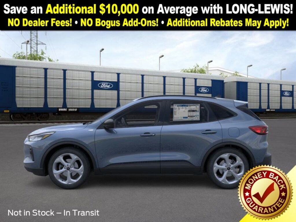 vapor blue metallic 2026 Ford Escape ST-Line FWD 8-Speed Automatic 1.5L EcoBoost 3.81 Axle Ratio, 4-Way Manual Front Passenger Seat, 4-Wheel Disc Brakes, 6 Speakers, 8-Way Power Driver Seat, ABS brakes, Adaptive Cruise Control with Stop-and-Go, Air Conditioning, Alloy wheels, AM/FM radio: SiriusXM 360L, Auto High-beam Headlights, Automatic temperature control, Black Roof-Rack Side Rails, Brake assist, Bumpers: body-color, Cold Weather Package, Compass, Connected Navigation (1-Year Included), Delay-off headlights, Digital Rear View Camera, Driver door bin, Driver vanity mirror, Dual front impact airbags, Dual front side impact airbags, Electronic Stability Control, Emergency communication system: SYNC 4 911 Assist, Evasive Steering Assist, Ford App, Ford Co-Pilot360 Assist+, Four wheel independent suspension, Front anti-roll bar, Front Bucket Seats, Front Center Armrest, Front dual zone A/C, Front License Plate Bracket, Front reading lights, Fully automatic headlights, Heated Front Row Seats, Heated Sideview Mirrors, Heated Steering Wheel, Heated steering wheel, Illuminated entry, Intersection Assist, Knee airbag, Low tire pressure warning, Occupant sensing airbag, Outside temperature display, Overhead airbag, Overhead console, Panic alarm, Panoramic Vista Roof, Partial Vinyl/Cloth Front Sport Contour Bucket Seats with Red Stitching, Passenger door bin, Passenger vanity mirror, Power door mirrors, Power driver seat, Power Liftgate, Power steering, Power windows, Predictive Speed Assist, Radio data system, Radio: AM/FM Stereo with SiriusXM 360L, Rear anti-roll bar, Rear Parking Sensor, Rear reading lights, Rear seat center armrest, Rear window defroster, Rear window wiper, Remote keyless entry, Remote Starter System, Speed control, Speed-sensing steering, Speed-Sensitive Wipers, Split folding rear seat, Spoiler, Sport steering wheel, Steering wheel mounted audio controls, SYNC 4, SYNC 4 with Enhanced Voice Recognition, Tachometer, Tech Pack #1, Telescoping steering wheel, Tilt steering wheel, Traction control, Trip computer, Variably intermittent wipers, Wheels: 18" Rock Metallic Painted Aluminum.