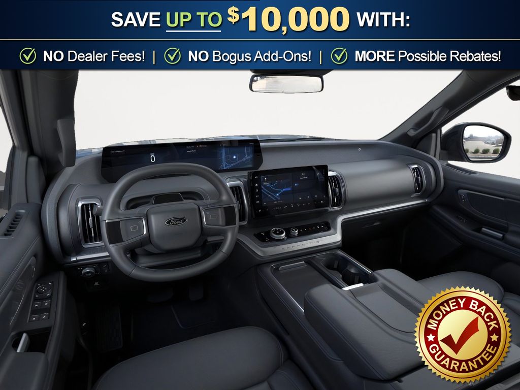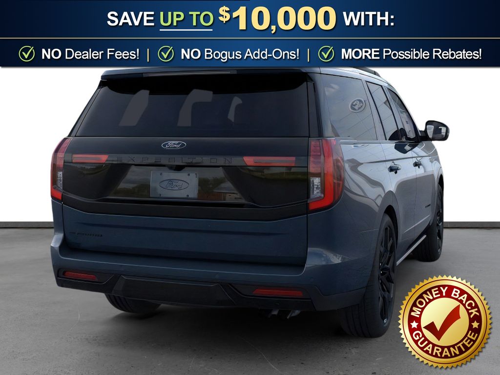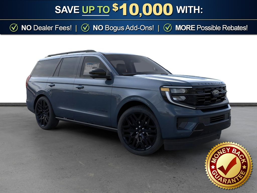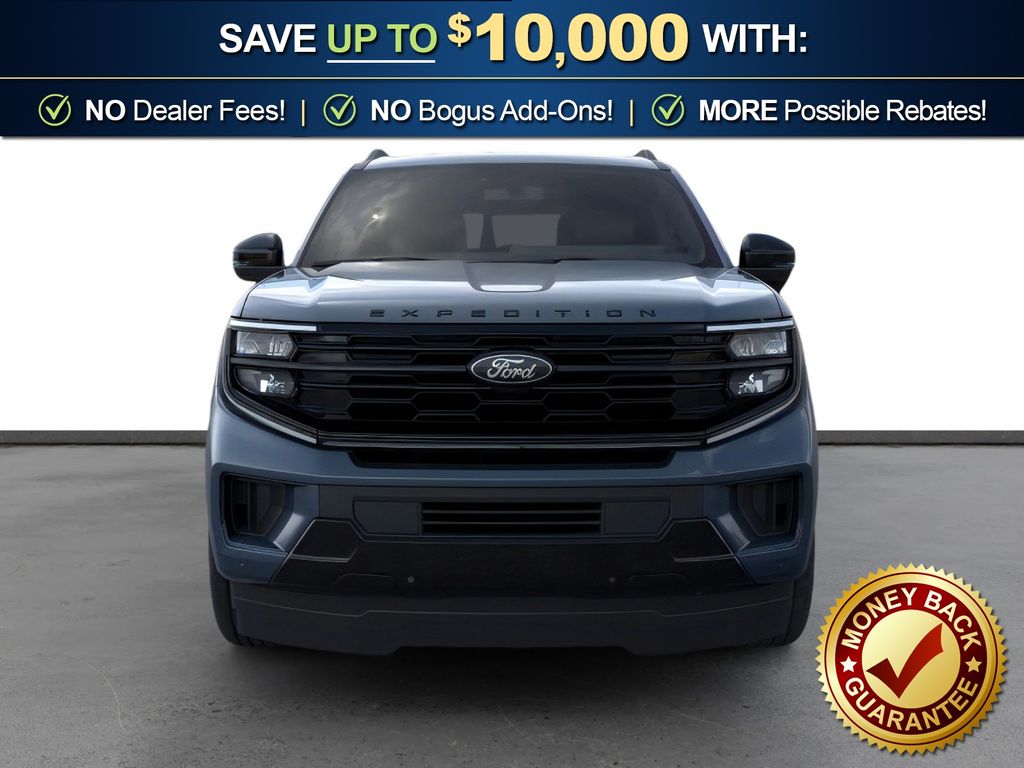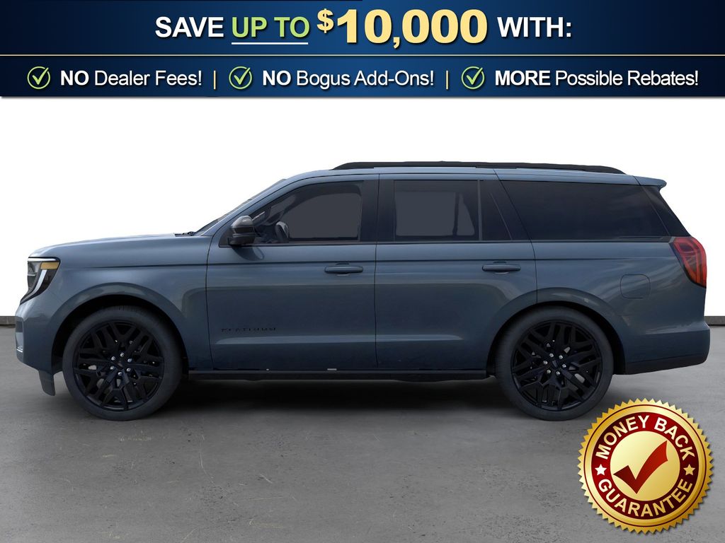 Stone Blue Metallic 2026 Ford Expedition Platinum NFT 4WD 10-Speed Automatic 3.5L V6 EcoBoost High Output 4WD, 10 Speakers, 2nd Row Power-Folding Captain's Chairs, 3.73 Axle Ratio, 3rd row seats: split-bench, 4-Wheel Disc Brakes, ABS brakes, Air Conditioning, Alloy wheels, AM/FM radio: SiriusXM with 360L, Apple CarPlay/Android Auto, Auto High-beam Headlights, Auto-dimming door mirrors, Auto-dimming Rear-View mirror, Automatic temperature control, Black Belt Molding, Black Expedition Lettering on Hood, Black Headlamp Bezel with Ebony Trim Applique, Black Onyx Painted Power Deployable Running Boards, Black Platinum Badge on Tailgate, Black Roof Rails, BlueCruise (equipment + 1-Year + 90-Day Plan), Brake assist, Bumpers: body-color, Carbon Black Front Bumper/Fascia, Compass, Delay-off headlights, Driver door bin, Driver vanity mirror, Driver's Package, Dual front impact airbags, Dual front side impact airbags, Electronic Stability Control, Emergency communication system: 911 Assist, Engine Sound Enhancer, Exterior Parking Camera Rear, Ford Connectivity Package (1-Year Included), Ford Digital Experience, Four wheel independent suspension, Front anti-roll bar, Front Bucket Seats, Front Center Armrest, Front dual zone A/C, Front License Plate Bracket, Front reading lights, Fully automatic headlights, Garage door transmitter, Genuine wood dashboard insert, Genuine wood door panel insert, Heated and Ventilated Leather Front Captain's Chairs, Heated door mirrors, Heated front seats, Heated rear seats, Heated steering wheel, High Flow Exhaust System, Illuminated entry, Intersection Assist, Leather steering wheel, Low tire pressure warning, Memory seat, Multicontour Active Motion Lthr Frnt Captains Chairs, Navigation System, Occupant sensing airbag, Outside temperature display, Overhead airbag, Overhead console, Panic alarm, Passenger door bin, Passenger vanity mirror, Power door mirrors, Power driver seat, Power moonroof: Vista Roof, Power passenger seat, Power steering, Power windows, Radio data system, Radio: B&O Play Unleashed, Radio: B&O Sound System by Bang and Olufsen, Rain sensing wipers, Rear air conditioning, Rear anti-roll bar, Rear reading lights, Rear Side Windows Laminated Glass, Rear window defroster, Rear window wiper, Reclining 3rd row seat, Remote keyless entry, Security system, Signature Grille Lighting, SiriusXM with 360L, Speed control, Speed-sensing steering, Speed-Sensitive Wipers, Split folding rear seat, Spoiler, Stealth Appearance Package, Stealth Performance Package, Steering wheel memory, Steering wheel mounted audio controls, Tachometer, Telescoping steering wheel, Tilt steering wheel, Traction control, Trip computer, Turn signal indicator mirrors, Variably intermittent wipers, Ventilated front seats, Voltmeter, Wheels: 20" x 8.5" Ebony Bright Machined Aluminum, Wheels: 22" x 9.0" Ebony Bright Machined Face Aluminum, Wheels: 24" x 9.5" Ebony Painted Aluminum, 4WD.