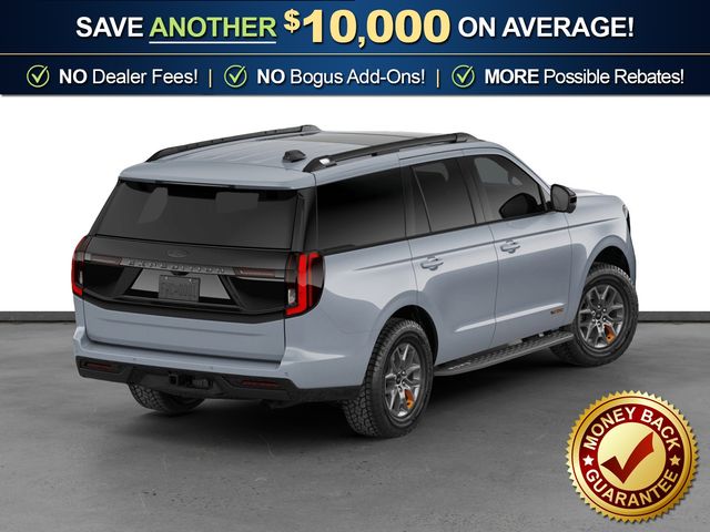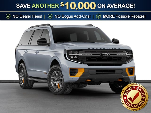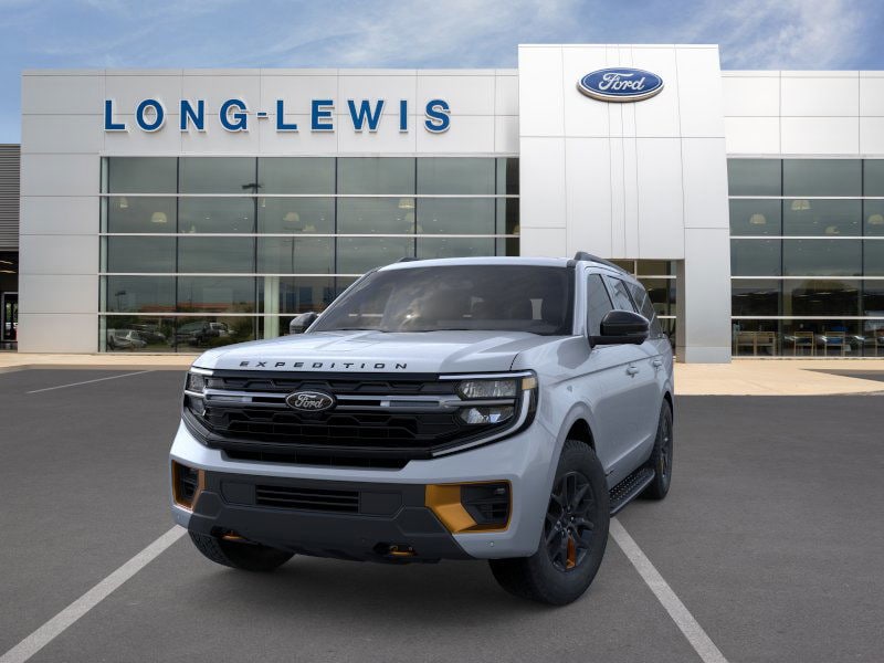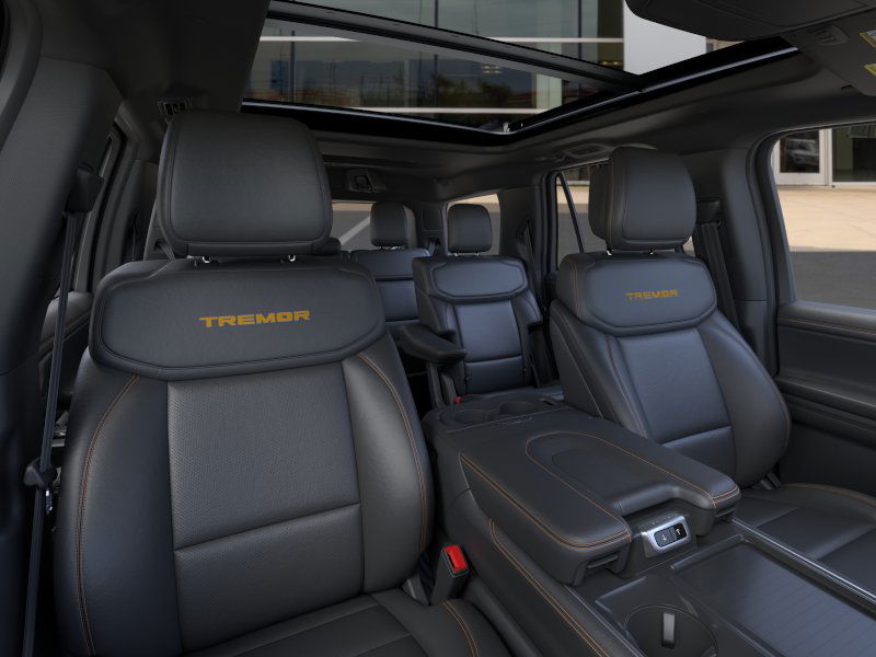 2026 Ford Expedition Tremor NFT Glacier Gray Metallic Tri-Coat Tremor NFT 4WD 10-Speed Automatic 3.5L V6 EcoBoost High Output 4WD, 10 Speakers, 2nd Row Power-Folding Captain's Chairs, 3.73 Axle Ratio, 3rd row seats: split-bench, 4-Wheel Disc Brakes, ABS brakes, Air Conditioning, Alloy wheels, AM/FM radio: SiriusXM with 360L, Apple CarPlay/Android Auto, Auto High-beam Headlights, Auto-dimming door mirrors, Auto-dimming Rear-View mirror, Automatic temperature control, Brake assist, Bumpers: body-color, Compass, Delay-off headlights, Driver door bin, Driver vanity mirror, Dual front impact airbags, Dual front side impact airbags, Electronic Stability Control, Emergency communication system: 911 Assist, Exterior Parking Camera Rear, Ford Connectivity Package (1-Year Included), Ford Digital Experience, Four wheel independent suspension, Front anti-roll bar, Front Bucket Seats, Front Center Armrest, Front dual zone A/C, Front fog lights, Front reading lights, Fully automatic headlights, Garage door transmitter, Heated and Ventilated Leather Front Captain's Chairs, Heated door mirrors, Heated front seats, Heated steering wheel, Illuminated entry, Leather steering wheel, Low tire pressure warning, Memory seat, Navigation System, Occupant sensing airbag, Outside temperature display, Overhead airbag, Overhead console, Panic alarm, Passenger door bin, Passenger vanity mirror, Power door mirrors, Power driver seat, Power moonroof: Vista Roof, Power passenger seat, Power steering, Power windows, Radio data system, Radio: B&O Sound System by Bang and Olufsen, Rain sensing wipers, Rear air conditioning, Rear anti-roll bar, Rear reading lights, Rear window defroster, Rear window wiper, Reclining 3rd row seat, Remote keyless entry, Security system, SiriusXM with 360L, Speed control, Speed-sensing steering, Speed-Sensitive Wipers, Split folding rear seat, Spoiler, Steering wheel memory, Steering wheel mounted audio controls, Tachometer, Telescoping steering wheel, Tilt steering wheel, Traction control, Trip computer, Turn signal indicator mirrors, Variably intermittent wipers, Ventilated front seats, Voltmeter, Wheels: 18" x 8.5" Dark Carbonized Gray Painted Aluminum, 4WD.