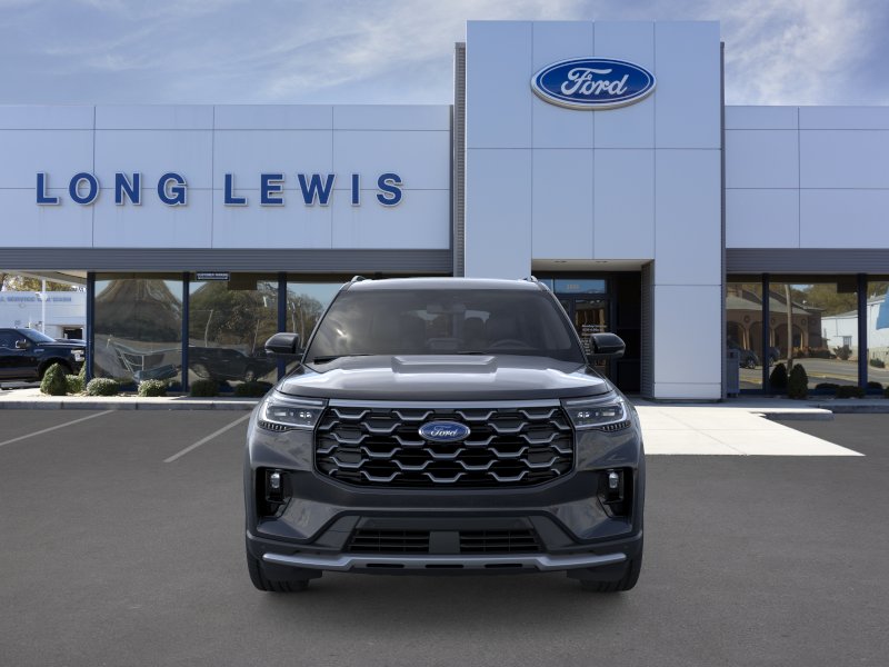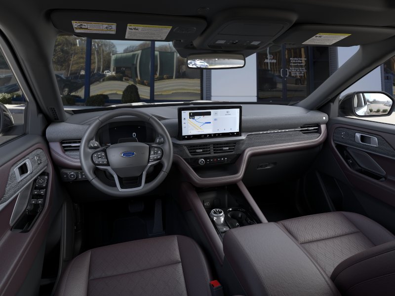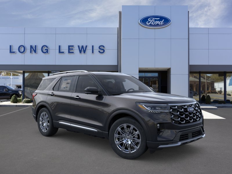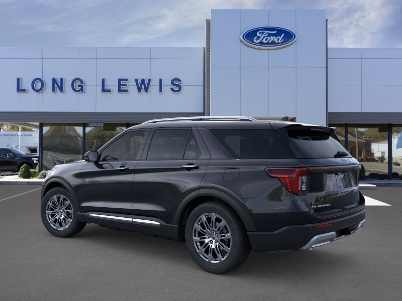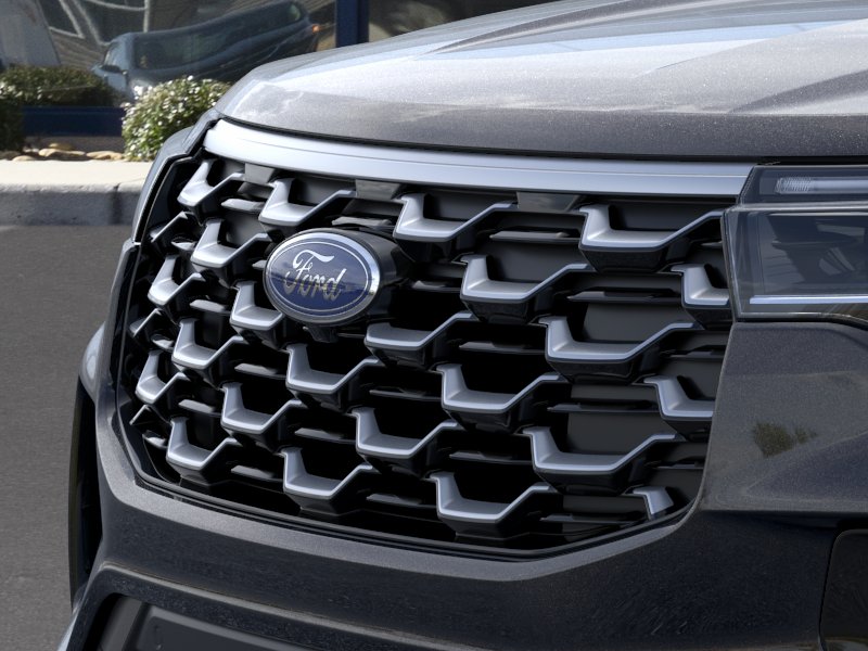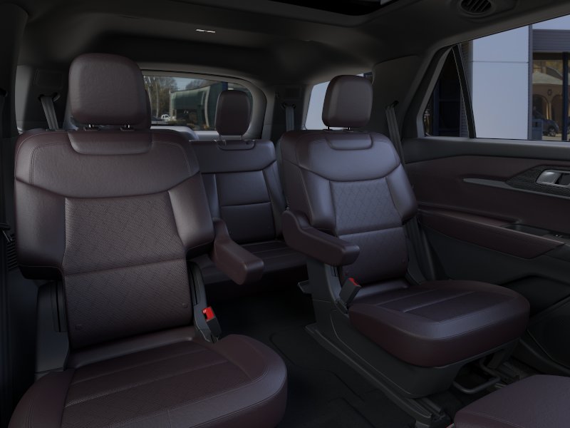Agate Black Metallic 2026 Ford Explorer Platinum NFT RWD 10-Speed Automatic 2.3L EcoBoost I-4 14 Speakers, 3rd row seats: bench, 4-Wheel Disc Brakes, ABS brakes, ActiveX Trimmed Captain's Chairs, Air Conditioning, Alloy wheels, AM/FM radio: SiriusXM with 360L, Apple CarPlay/Android Auto, Auto High-beam Headlights, Auto-dimming door mirrors, Auto-dimming Rear-View mirror, Automatic temperature control, Brake assist, Bumpers: body-color, Compass, Delay-off headlights, Driver door bin, Driver vanity mirror, Dual front impact airbags, Dual front side impact airbags, Electronic Stability Control, Emergency communication system: 911 Assist, Exterior Parking Camera Rear, Four wheel independent suspension, Front anti-roll bar, Front Bucket Seats, Front Center Armrest, Front dual zone A/C, Front fog lights, Front License Plate Bracket, Front reading lights, Fully automatic headlights, Garage door transmitter, Heated door mirrors, Heated front seats, Heated rear seats, Heated steering wheel, Illuminated entry, Knee airbag, Leather steering wheel, Low tire pressure warning, Memory seat, Navigation System, Occupant sensing airbag, Outside temperature display, Overhead airbag, Overhead console, Panic alarm, Panoramic Fixed Glass Roof with Power Shade, Passenger door bin, Passenger vanity mirror, Power door mirrors, Power driver seat, Power Liftgate, Power passenger seat, Power steering, Power windows, Radio data system, Radio: B&O Sound System by Bang & Olufsen with HD, Rain sensing wipers, Rear air conditioning, Rear anti-roll bar, Rear reading lights, Rear window defroster, Rear window wiper, Remote keyless entry, SecuriCode Keyless Entry Keypad, Security system, Speed control, Speed-sensing steering, Speed-Sensitive Wipers, Split folding rear seat, Spoiler, Steering wheel mounted audio controls, Tachometer, Telescoping steering wheel, Tilt steering wheel, Traction control, Trip computer, Turn signal indicator mirrors, Variably intermittent wipers, Ventilated front seats, Wheels: 20" Luster Nickel-Painted Aluminum.