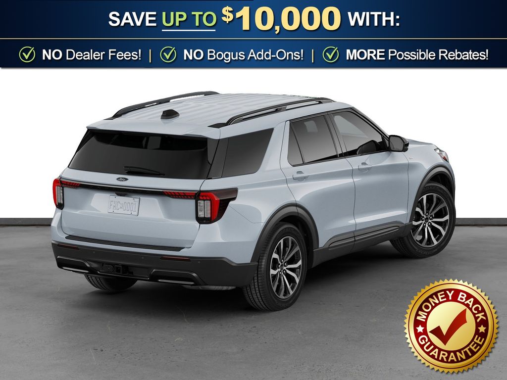 Space White Metallic 2026 Ford Explorer ST-Line NFT 4WD 10-Speed Automatic 2.3L EcoBoost I-4 4WD, 10 Speakers, 2nd Row Captain's Chairs w/E-Z Entry and Armrest, 3rd row seats: bench, 4-Wheel Disc Brakes, ABS brakes, Air Conditioning, Alloy wheels, AM/FM radio: SiriusXM with 360L, Apple CarPlay/Android Auto, Auto High-beam Headlights, Automatic temperature control, Brake assist, Bumpers: body-color, Compass, Delay-off headlights, Driver door bin, Driver vanity mirror, Dual front impact airbags, Dual front side impact airbags, Electronic Stability Control, Emergency communication system: 911 Assist, Exterior Parking Camera Rear, Four wheel independent suspension, Front anti-roll bar, Front Bucket Seats, Front Center Armrest, Front dual zone A/C, Front fog lights, Front License Plate Bracket, Front reading lights, Fully automatic headlights, Garage door transmitter, Heated door mirrors, Heated front seats, Heated steering wheel, Heated Unique Cloth Captain's Chairs, Illuminated entry, Knee airbag, Leather steering wheel, Low tire pressure warning, Navigation System, Occupant sensing airbag, Outside temperature display, Overhead airbag, Overhead console, Panic alarm, Passenger door bin, Passenger vanity mirror, Power door mirrors, Power driver seat, Power Liftgate, Power passenger seat, Power steering, Power windows, Radio: B&O Sound System by Bang and Olufsen, Rear air conditioning, Rear anti-roll bar, Rear reading lights, Rear window defroster, Rear window wiper, Remote keyless entry, SecuriCode Keyless Entry Keypad, Security system, Speed control, Speed-sensing steering, Speed-Sensitive Wipers, Split folding rear seat, Spoiler, Steering wheel mounted audio controls, Tachometer, Telescoping steering wheel, Tilt steering wheel, Traction control, Trip computer, Variably intermittent wipers, Wheels: 20" Ebony-Painted Machined Aluminum, 4WD.