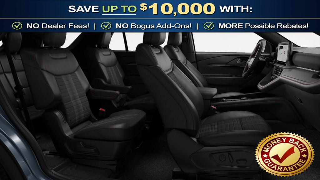 Vapor Blue Metallic 2026 Ford Explorer ST-Line NFT 4WD 10-Speed Automatic 2.3L EcoBoost I-4 4WD, 10 Speakers, 110V/150W AC Power Outlet, 2nd Row Captain's Chairs w/E-Z Entry and Armrest, 2nd Row Heated Seats, 3rd row seats: bench, 4-Wheel Disc Brakes, ABS brakes, Air Conditioning, Alloy wheels, AM/FM radio: SiriusXM with 360L, Ambient Lighting, Apple CarPlay/Android Auto, Auto High-beam Headlights, Auto-Dimming Interior Rear-View Mirror, Automatic temperature control, Brake assist, Bumpers: body-color, Compass, Delay-off headlights, Driver door bin, Driver vanity mirror, Dual front impact airbags, Dual front side impact airbags, Electronic Stability Control, Emergency communication system: 911 Assist, Exterior Parking Camera Rear, Four wheel independent suspension, Front anti-roll bar, Front Bucket Seats, Front Center Armrest, Front dual zone A/C, Front fog lights, Front License Plate Bracket, Front reading lights, Fully automatic headlights, Garage door transmitter, Heated door mirrors, Heated front seats, Heated steering wheel, Heated Unique Cloth Captain's Chairs, Illuminated entry, Knee airbag, Leather steering wheel, Low tire pressure warning, Manual-Folding Sideview Mirrors, Memory Driver's Seat, Navigation System, Occupant sensing airbag, Outside temperature display, Overhead airbag, Overhead console, Panic alarm, Panoramic Fixed Glass Roof with Power Shade, Passenger door bin, Passenger vanity mirror, Performance Brakes, Power door mirrors, Power driver seat, Power Liftgate, Power passenger seat, Power steering, Power windows, Premium Package, Radio: B&O Sound System by Bang and Olufsen, Rain-Sensing Wipers (front Only), Rear air conditioning, Rear anti-roll bar, Rear reading lights, Rear window defroster, Rear window wiper, Red Painted Performance Front and Rear Brake Calipers, Remote keyless entry, SecuriCode Keyless Entry Keypad, Security system, Speed control, Speed-sensing steering, Speed-Sensitive Wipers, Split folding rear seat, Spoiler, ST-Line Street Pack, Steering wheel mounted audio controls, Tachometer, Telescoping steering wheel, Tilt steering wheel, Traction control, Trip computer, Variably intermittent wipers, Wheels: 20" Ebony-Painted Machined Aluminum, Wheels: 21" Magnetite-Painted Aluminum, 4WD.
