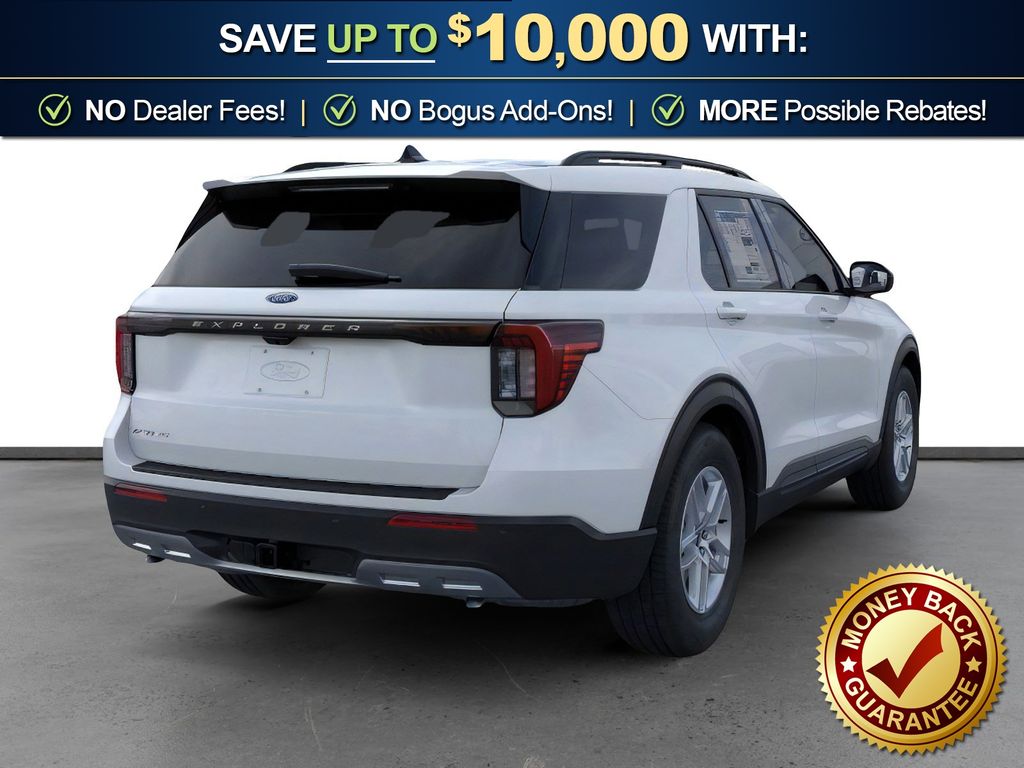 Space White Metallic 2026 Ford Explorer Active NFT RWD 10-Speed Automatic 2.3L EcoBoost I-4 3rd row seats: bench, 4-Wheel Disc Brakes, 6 Speakers, ABS brakes, Air Conditioning, Alloy wheels, AM/FM radio: SiriusXM with 360L, AM/FM Stereo, Apple CarPlay/Android Auto, Auto High-beam Headlights, Automatic temperature control, Brake assist, Bumpers: body-color, Compass, Delay-off headlights, Driver door bin, Driver vanity mirror, Dual front impact airbags, Dual front side impact airbags, Electronic Stability Control, Emergency communication system: 911 Assist, Exterior Parking Camera Rear, Ford Connectivity Package (one-Time Purchase - 7 Years), Four wheel independent suspension, Front anti-roll bar, Front Bucket Seats, Front Center Armrest, Front dual zone A/C, Front License Plate Bracket, Front reading lights, Fully automatic headlights, Heated door mirrors, Illuminated entry, Knee airbag, Low tire pressure warning, Navigation System, Occupant sensing airbag, Outside temperature display, Overhead airbag, Overhead console, Panic alarm, Passenger door bin, Passenger vanity mirror, Power door mirrors, Power driver seat, Power steering, Power windows, Rear air conditioning, Rear anti-roll bar, Rear reading lights, Rear window defroster, Rear window wiper, Remote keyless entry, Security system, Speed control, Speed-sensing steering, Speed-Sensitive Wipers, Split folding rear seat, Spoiler, Steering wheel mounted audio controls, Tachometer, Telescoping steering wheel, Tilt steering wheel, Traction control, Trip computer, Variably intermittent wipers, Wheels: 18" Sparkle Silver-Painted Aluminum.