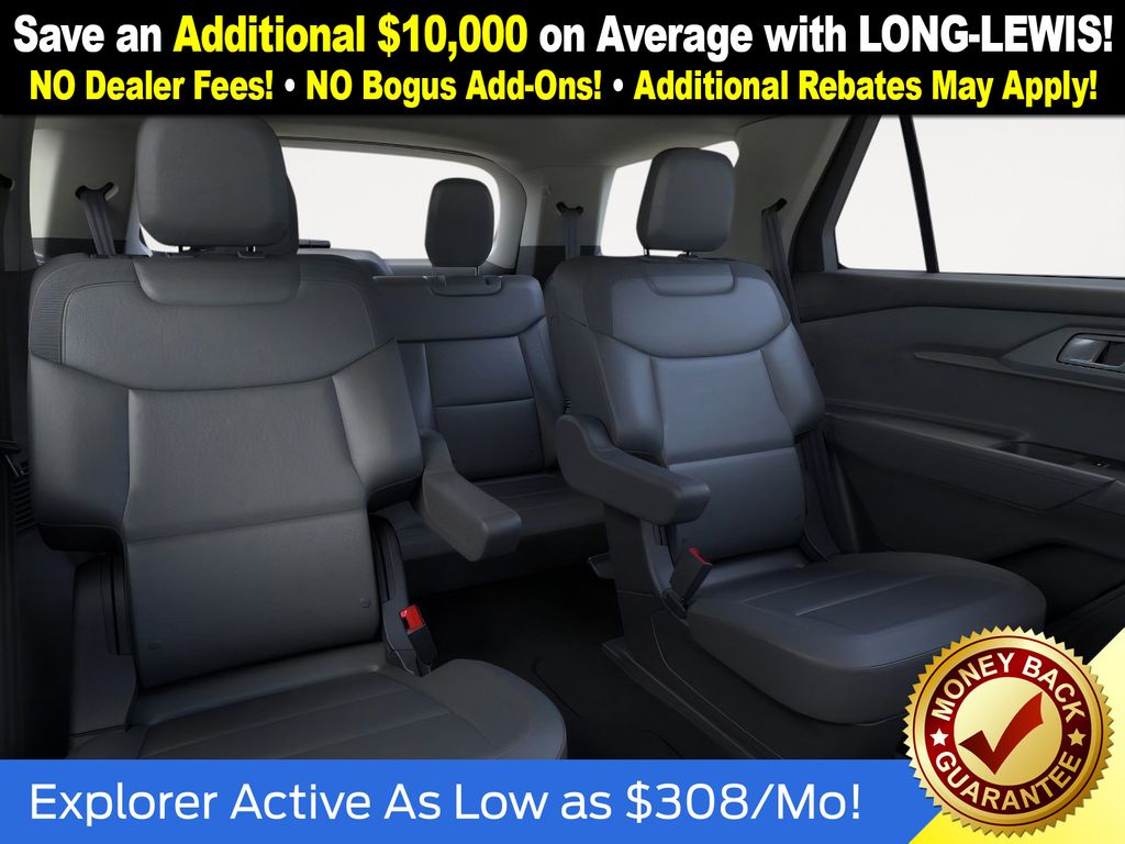 Agate Black Metallic 2026 Ford Explorer Active NFT RWD 10-Speed Automatic 2.3L EcoBoost I-4 3rd row seats: bench, 4-Wheel Disc Brakes, 6 Speakers, ABS brakes, Active Comfort Package, Air Conditioning, Alloy wheels, AM/FM radio: SiriusXM with 360L, AM/FM Stereo, Apple CarPlay/Android Auto, Auto High-beam Headlights, Automatic temperature control, Brake assist, Bumpers: body-color, Compass, Delay-off headlights, Driver door bin, Driver vanity mirror, Dual front impact airbags, Dual front side impact airbags, Electronic Stability Control, Emergency communication system: 911 Assist, Exterior Parking Camera Rear, Four wheel independent suspension, Front anti-roll bar, Front Bucket Seats, Front Center Armrest, Front dual zone A/C, Front Fascia, Front License Plate Bracket, Front reading lights, Fully automatic headlights, Heated ActiveX Seating Material Captain's Chairs, Heated door mirrors, Heated Steering Wheel, Illuminated entry, Internet access capable: FordPass Connect 5G, Knee airbag, Low tire pressure warning, Navigation System, Occupant sensing airbag, Outside temperature display, Overhead airbag, Overhead console, Panic alarm, Passenger door bin, Passenger vanity mirror, Power driver seat, Power steering, Power windows, Rear air conditioning, Rear anti-roll bar, Rear reading lights, Rear window defroster, Rear window wiper, Remote keyless entry, Remote Start System, Second Row Hvac Controls, SecuriCode Keyless Entry Keypad, Security system, Speed control, Speed-sensing steering, Speed-Sensitive Wipers, Split folding rear seat, Spoiler, Steering wheel mounted audio controls, Tachometer, Telescoping steering wheel, Tilt steering wheel, Traction control, Trip computer, Unique Cloth Captain's Chairs, Variably intermittent wipers, Wheels: 18" Sparkle Silver-Painted Aluminum.