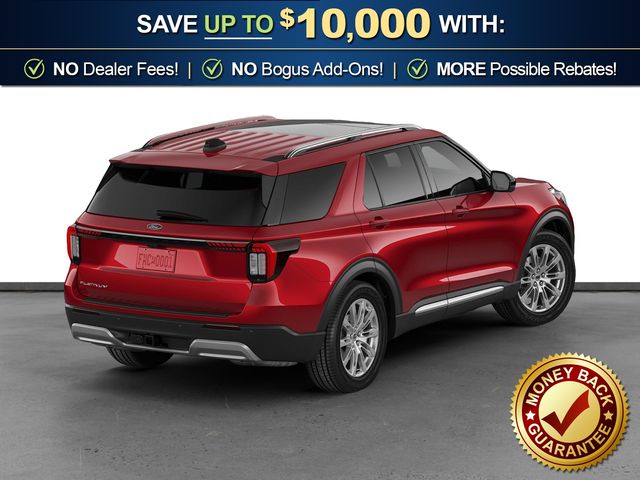 2026 Ford Explorer Platinum NFT Rapid Red Metallic Tinted Clearcoat Platinum NFT RWD 10-Speed Automatic 2.3L EcoBoost I-4 14 Speakers, 3rd row seats: bench, 4-Wheel Disc Brakes, ABS brakes, ActiveX Trimmed Captain's Chairs, Air Conditioning, Alloy wheels, AM/FM radio: SiriusXM with 360L, Apple CarPlay/Android Auto, Auto High-beam Headlights, Auto-dimming door mirrors, Auto-dimming Rear-View mirror, Automatic temperature control, Brake assist, Bumpers: body-color, Compass, Delay-off headlights, Driver door bin, Driver vanity mirror, Dual front impact airbags, Dual front side impact airbags, Electronic Stability Control, Emergency communication system: 911 Assist, Exterior Parking Camera Rear, Four wheel independent suspension, Front anti-roll bar, Front Bucket Seats, Front Center Armrest, Front dual zone A/C, Front fog lights, Front reading lights, Fully automatic headlights, Garage door transmitter, Heated door mirrors, Heated front seats, Heated rear seats, Heated steering wheel, Illuminated entry, Knee airbag, Leather steering wheel, Low tire pressure warning, Memory seat, Navigation System, Occupant sensing airbag, Outside temperature display, Overhead airbag, Overhead console, Panic alarm, Panoramic Fixed Glass Roof with Power Shade, Passenger door bin, Passenger vanity mirror, Power door mirrors, Power driver seat, Power Liftgate, Power passenger seat, Power steering, Power windows, Radio data system, Radio: B&O Sound System by Bang & Olufsen with HD, Rain sensing wipers, Rear air conditioning, Rear anti-roll bar, Rear reading lights, Rear window defroster, Rear window wiper, Remote keyless entry, SecuriCode Keyless Entry Keypad, Security system, Speed control, Speed-sensing steering, Speed-Sensitive Wipers, Split folding rear seat, Spoiler, Steering wheel mounted audio controls, Tachometer, Telescoping steering wheel, Tilt steering wheel, Traction control, Trip computer, Turn signal indicator mirrors, Variably intermittent wipers, Ventilated front seats, Wheels: 20" Luster Nickel-Painted Aluminum.