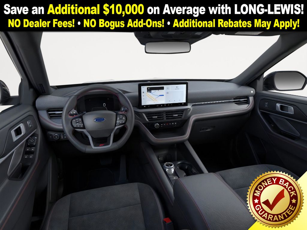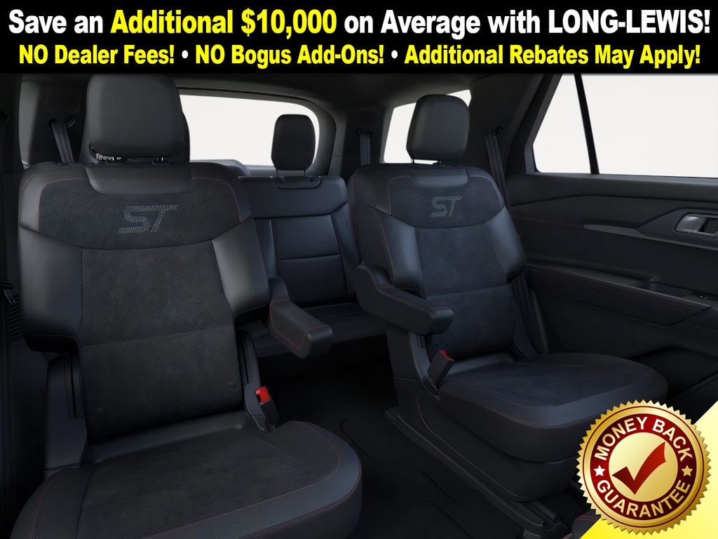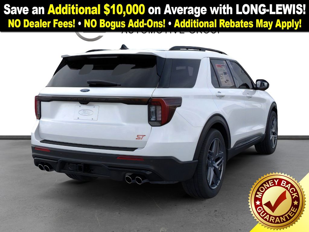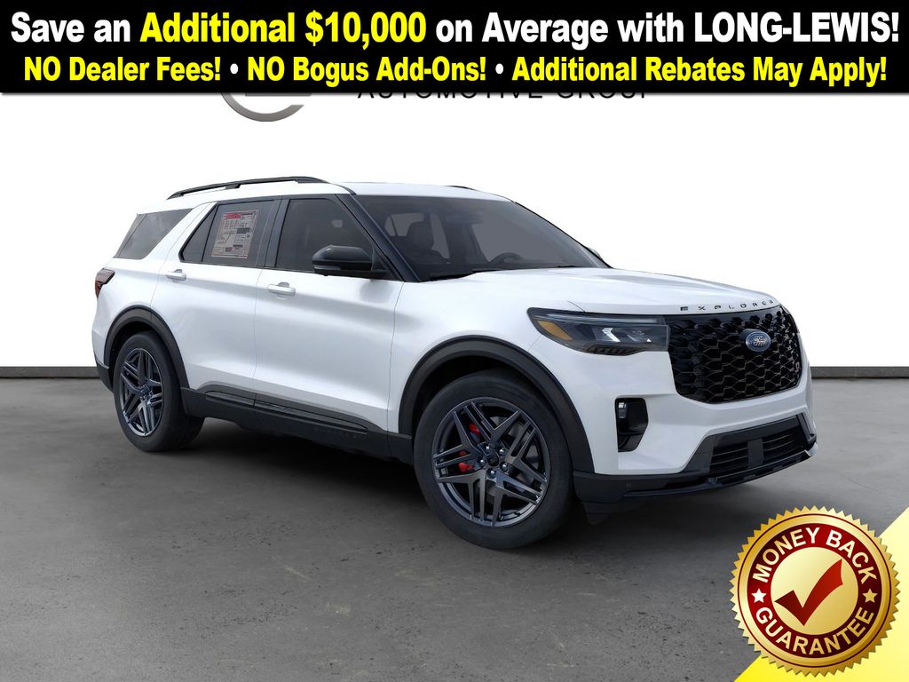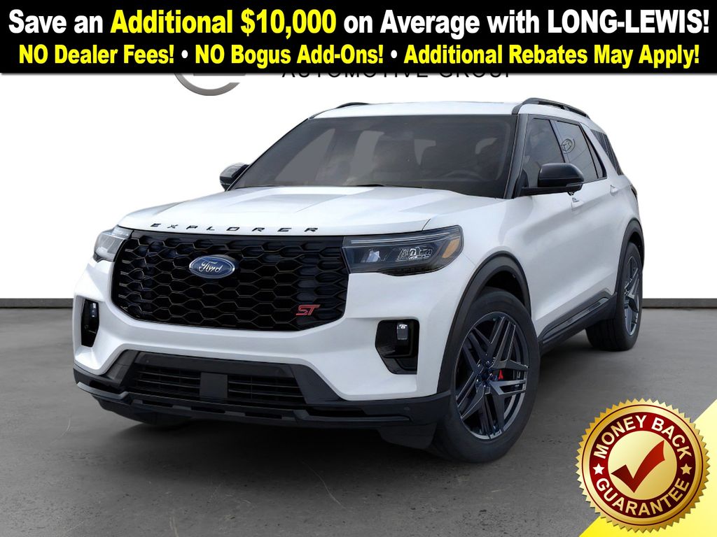Star White Metallic Tri-Coat 2026 Ford Explorer ST NFT 4WD 10-Speed Automatic 3.0L EcoBoost V6 4WD, 10 Speakers, 3rd row seats: bench, 4-Wheel Disc Brakes, ABS brakes, Air Conditioning, Alloy wheels, AM/FM radio: SiriusXM with 360L, Apple CarPlay/Android Auto, Auto High-beam Headlights, Auto-dimming door mirrors, Auto-dimming Rear-View mirror, Automatic temperature control, Brake assist, Bumpers: body-color, Compass, Delay-off headlights, Driver door bin, Driver vanity mirror, Dual front impact airbags, Dual front side impact airbags, Electronic Stability Control, Emergency communication system: 911 Assist, Exterior Parking Camera Rear, Four wheel independent suspension, Front anti-roll bar, Front Bucket Seats, Front Center Armrest, Front dual zone A/C, Front fog lights, Front License Plate Bracket, Front reading lights, Fully automatic headlights, Garage door transmitter, Heated door mirrors, Heated front seats, Heated rear seats, Heated steering wheel, Heated/Ventilated Miko Captain's Chairs, Illuminated entry, Internet access capable: FordPass Connect 5G, Knee airbag, Leather steering wheel, Low tire pressure warning, Memory seat, Multicontour Seats with Front Active Motion, Navigation System, Occupant sensing airbag, Outside temperature display, Overhead airbag, Overhead console, Panic alarm, Panoramic Fixed Glass Roof with Power Shade, Passenger door bin, Passenger vanity mirror, Power door mirrors, Power driver seat, Power Liftgate, Power passenger seat, Power steering, Power windows, Radio: B&O Sound System by Bang & Olufsen, Radio: B&O Sound System by Bang and Olufsen, Rain sensing wipers, Rear air conditioning, Rear anti-roll bar, Rear reading lights, Rear window defroster, Rear window wiper, Remote Control Front Windows, Remote keyless entry, SecuriCode Keyless Entry Keypad, Security system, Speed control, Speed-sensing steering, Speed-Sensitive Wipers, Split folding rear seat, Spoiler, Sport steering wheel, Steering wheel mounted audio controls, Sun and Sound Package, Tachometer, Telescoping steering wheel, Tilt steering wheel, Traction control, Trip computer, Turn signal indicator mirrors, Variably intermittent wipers, Ventilated front seats, Wheels: 21" Magnetite-Painted Aluminum, 4WD.