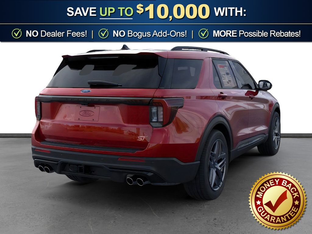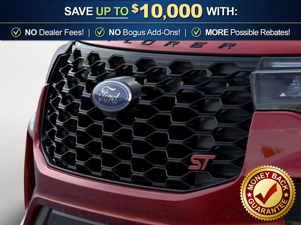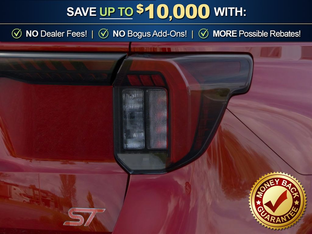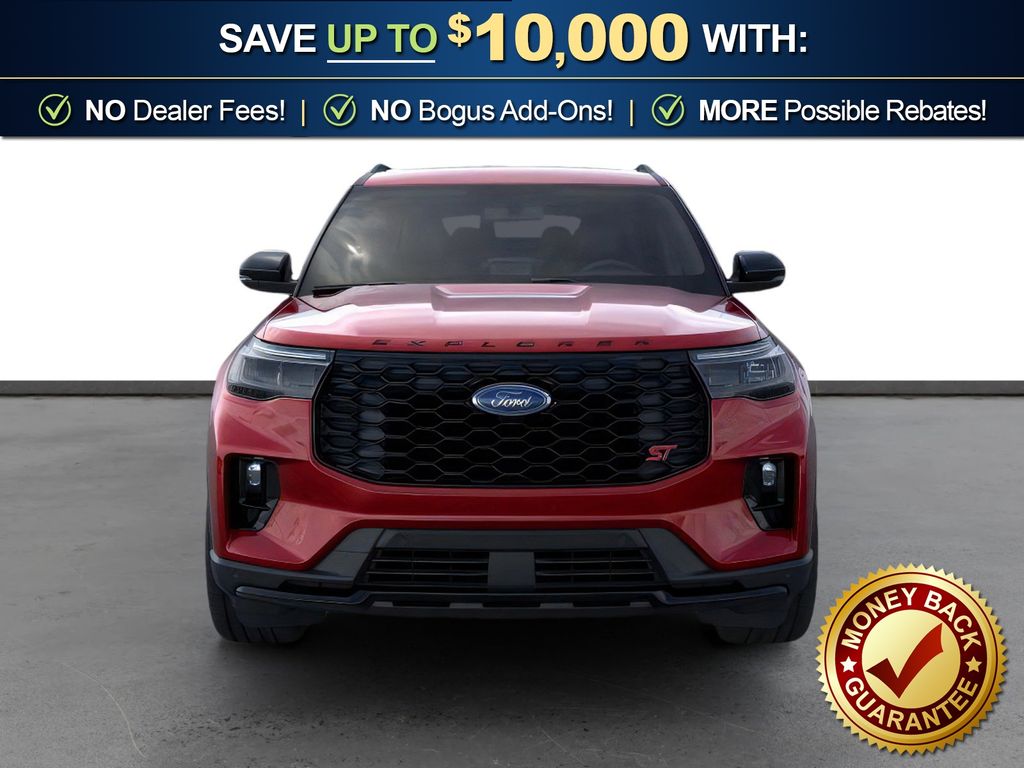 Rapid Red Metallic Tinted Clearcoat 2026 Ford Explorer ST NFT 4WD 10-Speed Automatic 3.0L EcoBoost V6 4WD, 10 Speakers, 3rd row seats: bench, 4-Wheel Disc Brakes, ABS brakes, Air Conditioning, Alloy wheels, AM/FM radio: SiriusXM with 360L, Apple CarPlay/Android Auto, Auto High-beam Headlights, Auto-dimming door mirrors, Auto-dimming Rear-View mirror, Automatic temperature control, BlueCruise Equipped (1-Year + 90-Day Plan), Brake assist, Bumpers: body-color, Compass, Delay-off headlights, Driver door bin, Driver vanity mirror, Dual front impact airbags, Dual front side impact airbags, Electronic Stability Control, Emergency communication system: 911 Assist, Exterior Parking Camera Rear, Four wheel independent suspension, Front anti-roll bar, Front Bucket Seats, Front Center Armrest, Front dual zone A/C, Front fog lights, Front License Plate Bracket, Front reading lights, Fully automatic headlights, Garage door transmitter, Heated door mirrors, Heated front seats, Heated rear seats, Heated steering wheel, Heated/Ventilated Miko Suede Captain's Chairs, Illuminated entry, Knee airbag, Leather steering wheel, Low tire pressure warning, Memory seat, Multicontour Seats with Front Active Motion, Navigation System, Occupant sensing airbag, Outside temperature display, Overhead airbag, Overhead console, Panic alarm, Panoramic Fixed Glass Roof with Power Shade, Passenger door bin, Passenger vanity mirror, Power door mirrors, Power driver seat, Power Liftgate, Power passenger seat, Power steering, Power windows, Radio: B&O Sound System by Bang & Olufsen, Radio: B&O Sound System by Bang and Olufsen, Rain sensing wipers, Rear air conditioning, Rear anti-roll bar, Rear reading lights, Rear window defroster, Rear window wiper, Remote Control Front Windows, Remote keyless entry, SecuriCode Keyless Entry Keypad, Security system, Speed control, Speed-sensing steering, Speed-Sensitive Wipers, Split folding rear seat, Spoiler, Sport steering wheel, Steering wheel mounted audio controls, Sun and Sound Package, Tachometer, Telescoping steering wheel, Tilt steering wheel, Traction control, Trip computer, Turn signal indicator mirrors, Variably intermittent wipers, Ventilated front seats, Wheels: 21" Magnetite-Painted Aluminum, 4WD.