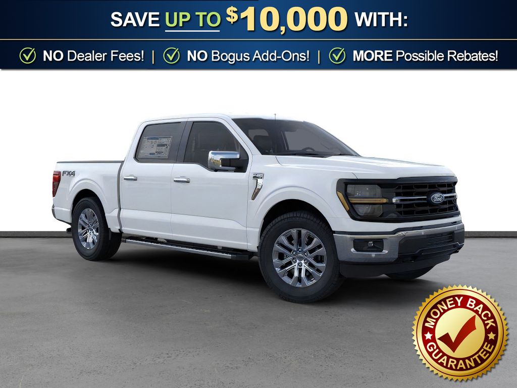 Oxford White 2026 Ford F-150 XLT NFT 4WD 10-Speed Automatic 5.0L V8 4WD, 18" Painted Aluminum Wheels, 4-Wheel Disc Brakes, 6 Speakers, ABS brakes, Air Conditioning, Alloy wheels, AM/FM radio: SiriusXM with 360L, Auto High-beam Headlights, Brake assist, Bumpers: body-color, Cloth 40/20/40 Front Seat, Compass, Delay-off headlights, Driver door bin, Driver vanity mirror, Dual front impact airbags, Dual front side impact airbags, Electronic Stability Control, Emergency communication system: SYNC 4 911 Assist, Ford Connectivity Package (1-Year Included), Front anti-roll bar, Front Center Armrest, Front fog lights, Front License Plate Bracket, Front reading lights, Front wheel independent suspension, Fully automatic headlights, FX4 Off-Road Package, Heated door mirrors, Illuminated entry, Internet access capable: 5G Modem - Ford Connectivity Package, Low tire pressure warning, Occupant sensing airbag, Outside temperature display, Overhead airbag, Overhead console, Panic alarm, Passenger door bin, Passenger vanity mirror, Power door mirrors, Power steering, Power windows, Radio data system, Radio: AM/FM Stereo with SiriusXM 360L, Rear Parking Sensors, Rear reading lights, Rear step bumper, Rear window defroster, Remote keyless entry, Security system, Speed control, Split folding rear seat, Steering wheel mounted audio controls, SYNC 4 with Enhanced Voice Recognition, Tachometer, Telescoping steering wheel, Tilt steering wheel, Traction control, Trip computer, Variably intermittent wipers, XLT Chrome Appearance Package, 4WD.
