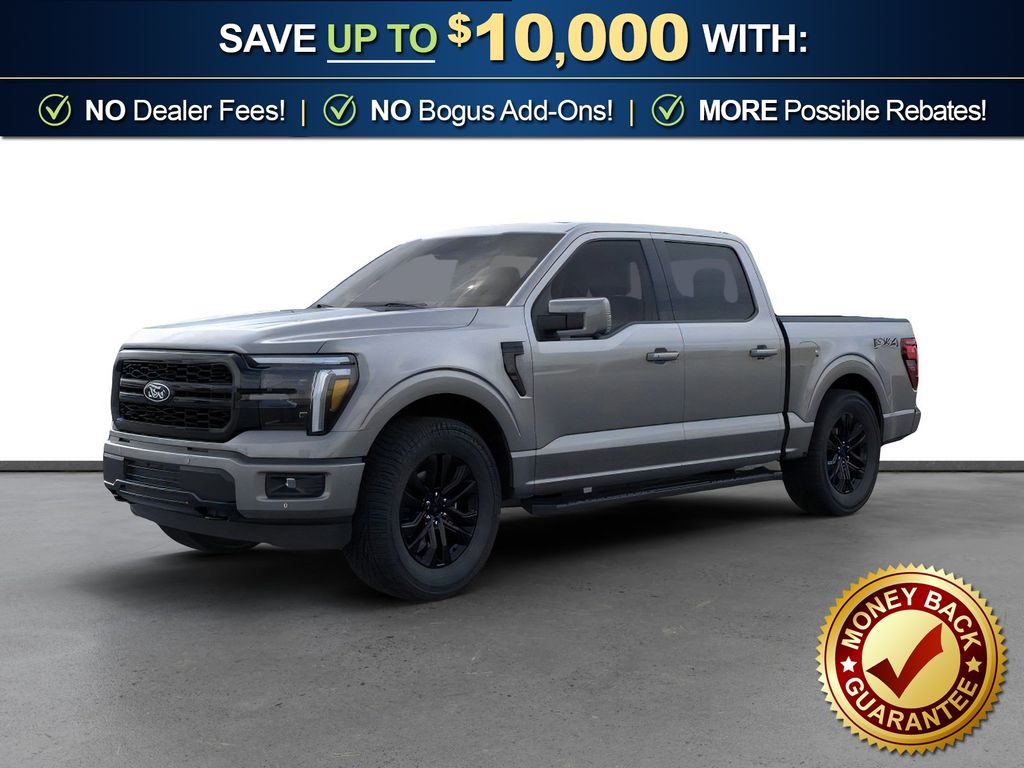 Carbonized Gray Metallic 2026 Ford F-150 Lariat NFT 4WD 10-Speed Automatic 5.0L V8 4WD, 4-Wheel Disc Brakes, 4x4 FX4 Off-Road Bodyside Decal, 8 Speakers, ABS brakes, ActiveX Trimmed Bucket Seats, Air Conditioning, Alloy wheels, AM/FM radio: SiriusXM with 360L, Auto High-beam Headlights, Auto-dimming door mirrors, Auto-dimming Rear-View mirror, Automatic temperature control, Black Exterior Badging, Black Grille, Black Taillamp Bezels, Body-Color Front and Rear Bumpers, Brake assist, Bumpers: chrome, Chrome wheels, Compass, Dark Interior Appliques, Delay-off headlights, Driver door bin, Driver vanity mirror, Driver's Side SecuriCode Keyless-Entry Keypad, Dual front impact airbags, Dual front side impact airbags, Electronic Stability Control, Emergency communication system: SYNC 4 911 Assist, Ford Connectivity Package (1-Year Included), Front anti-roll bar, Front Bucket Seats, Front Center Armrest, Front dual zone A/C, Front fog lights, Front License Plate Bracket, Front reading lights, Front wheel independent suspension, Fully automatic headlights, FX4 Off-Road Package, Garage door transmitter, Gray Box Side Decal, Head-Up Display, Heated door mirrors, Heated front seats, Heated steering wheel, Hill Descent Control, Illuminated entry, Internet access capable: 5G Modem - Ford Connectivity Package, Lariat Black Appearance Package, Low tire pressure warning, Matte Black Tailgate F-150 Decal, Memory seat, Monotube Rear Shocks, Navigation system: Connected Navigation, Occupant sensing airbag, Off-Road Tuned Front Shock Absorbers, Outside temperature display, Overhead airbag, Overhead console, Panic alarm, Passenger door bin, Passenger vanity mirror, Power door mirrors, Power driver seat, Power passenger seat, Power steering, Power windows, Radio data system, Radio: B&O Sound System by Bang and Olufsen, Rain sensing wipers, Rear reading lights, Rear seat center armrest, Rear step bumper, Rear window defroster, Remote keyless entry, Rock Crawl Mode, Security system, Speed control, Split folding rear seat, Steering wheel mounted audio controls, SYNC 4 with Enhanced Voice Recognition, Tachometer, Telescoping steering wheel, Tilt steering wheel, Traction control, Tray Style Floor Liner Without Carpet Mats, Trip computer, Turn signal indicator mirrors, Variably intermittent wipers, Ventilated front seats, Wheels: 18" Chrome-Like PVD, 4WD.