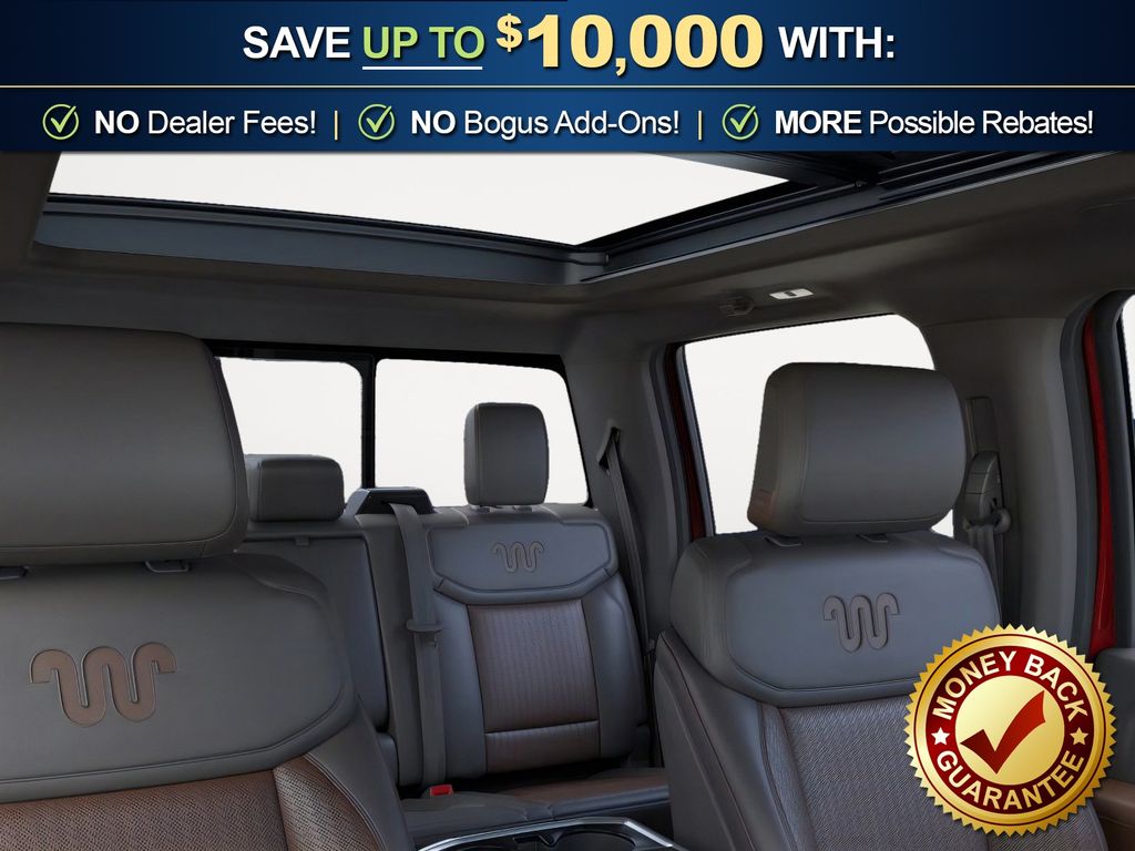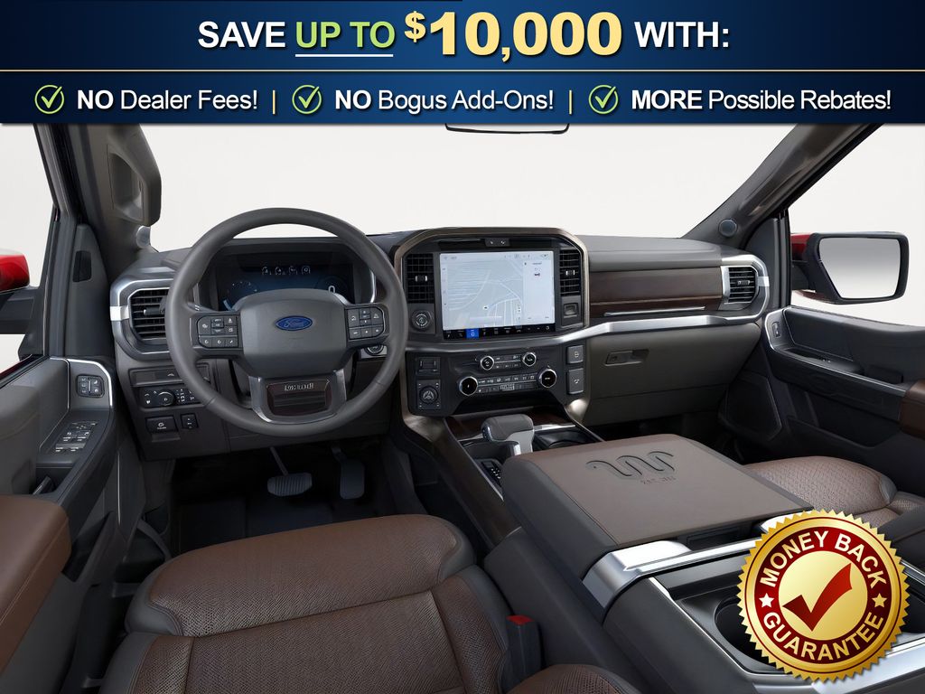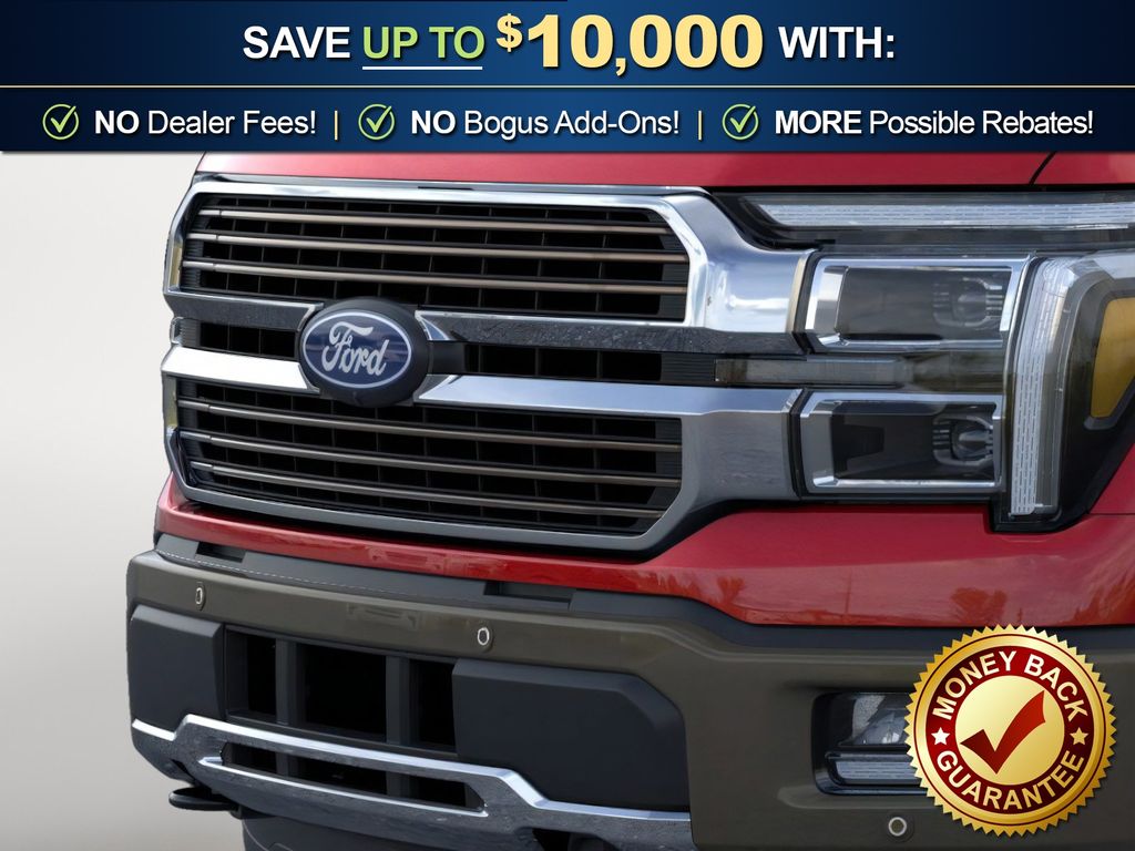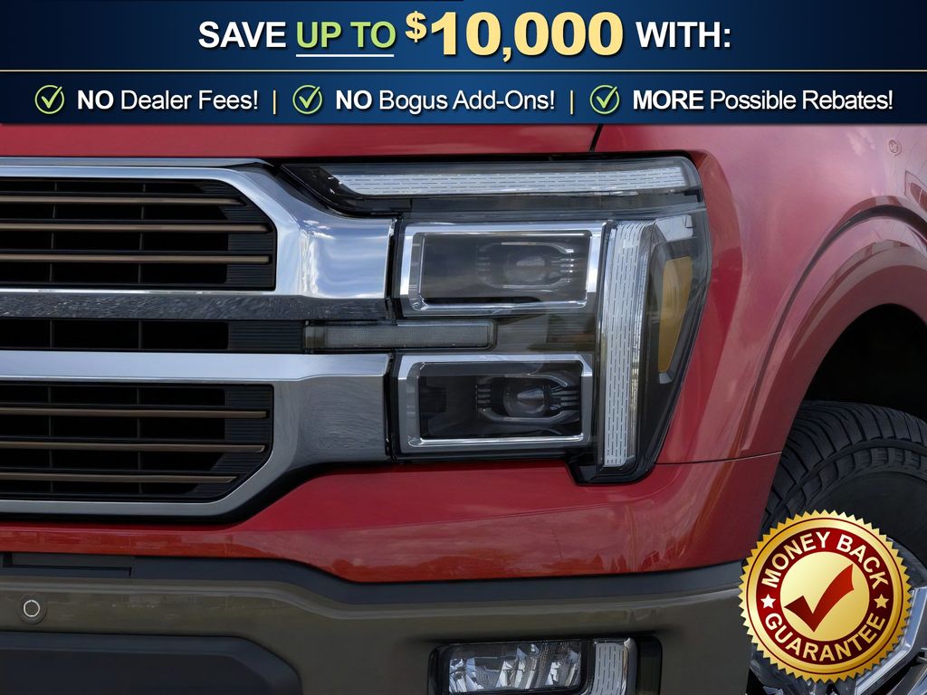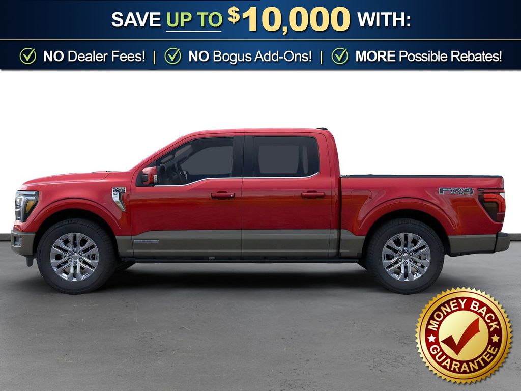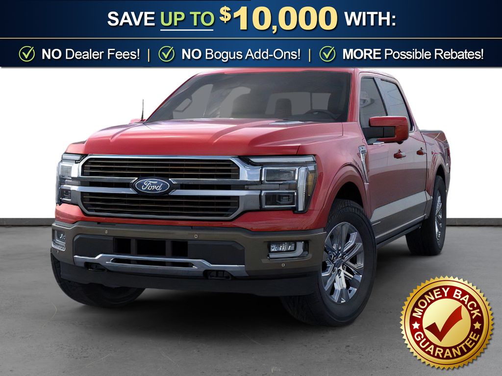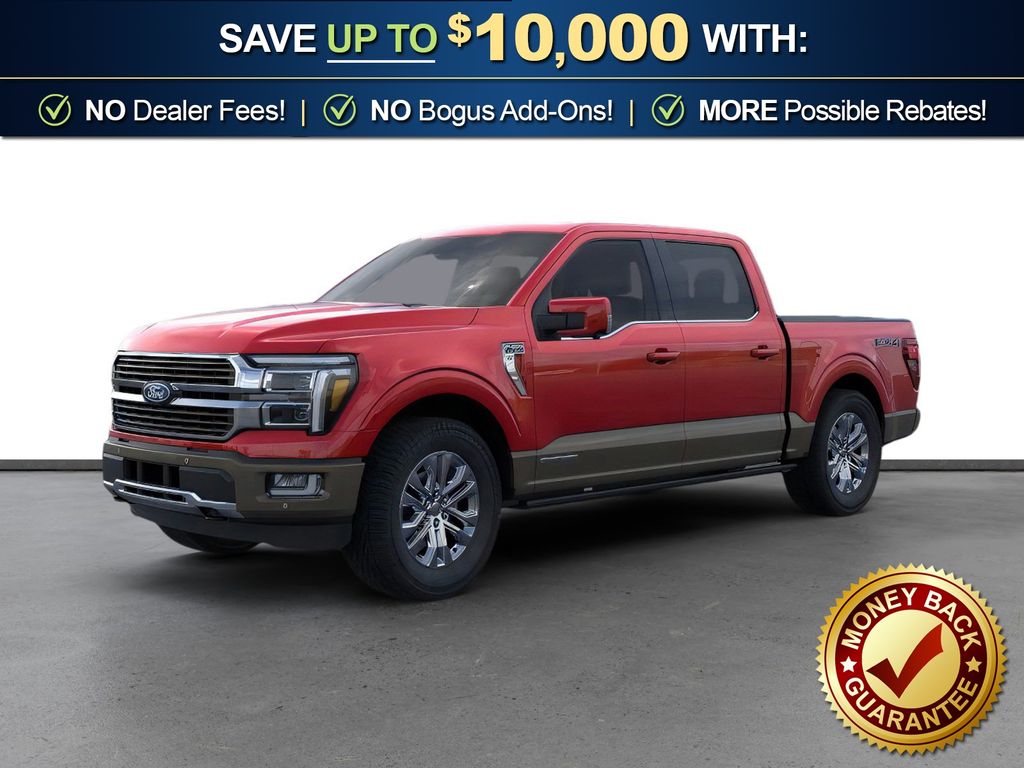 Ruby Red Metallic Tinted Clearcoat 2026 Ford F-150 King Ranch NFT 4WD 10-Speed Automatic 3.5L PowerBoost Full-Hybrid V6 3.5L PowerBoost Full-Hybrid V6, 4WD, 4-Wheel Disc Brakes, 4x4 FX4 Off-Road Bodyside Decal, 8 Speakers, ABS brakes, Adjustable pedals, Air Conditioning, Alloy wheels, AM/FM radio: SiriusXM with 360L, Auto High-beam Headlights, Auto tilt-away steering wheel, Auto-dimming door mirrors, Auto-dimming Rear-View mirror, Automatic temperature control, Brake assist, Chrome wheels, Compass, Delay-off headlights, Driver door bin, Driver vanity mirror, Driver's Side SecuriCode Keyless-Entry Keypad, Dual front impact airbags, Dual front side impact airbags, Electronic Stability Control, Emergency communication system: SYNC 4 911 Assist, Ford Connectivity Package (1-Year Included), Front anti-roll bar, Front Bucket Seats, Front Center Armrest, Front dual zone A/C, Front fog lights, Front License Plate Bracket, Front reading lights, Front wheel independent suspension, Fully automatic headlights, FX4 Off-Road Package, Garage door transmitter, Genuine wood dashboard insert, Heated door mirrors, Heated front seats, Heated rear seats, Heated steering wheel, Hill Descent Control, Illuminated entry, Internet access capable: 5G Modem - Ford Connectivity Package, King Ranch Multicontour Leather Bucket Seats, Leather steering wheel, Low tire pressure warning, Memory seat, Navigation system: Connected Navigation, Occupant sensing airbag, Off-Road Tuned Front Shock Absorbers, Outside temperature display, Overhead airbag, Overhead console, Panic alarm, Passenger door bin, Passenger vanity mirror, Pedal memory, Power door mirrors, Power driver seat, Power passenger seat, Power steering, Power windows, Pro Access Tailgate, Pro Power Onboard - 7.2KW, Radio data system, Radio: B&O Sound System by Bang and Olufsen, Rain sensing wipers, Rear reading lights, Rear seat center armrest, Rear step bumper, Rear window defroster, Remote keyless entry, Security system, Speed control, Split folding rear seat, Steering wheel memory, Steering wheel mounted audio controls, SYNC 4 with Enhanced Voice Recognition, Tachometer, Telescoping steering wheel, Tilt steering wheel, Traction control, Trip computer, Turn signal indicator mirrors, Twin Panel Moonroof, Variably intermittent wipers, Ventilated front seats, Wheels: 20" Chrome-Like PVD, 3.5L PowerBoost Full-Hybrid V6, 4WD.