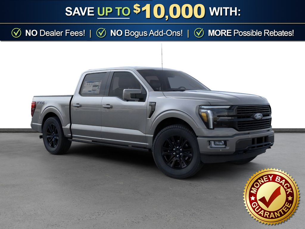 Carbonized Gray Metallic 2026 Ford F-150 Platinum NFT 4WD 10-Speed Automatic 3.5L V6 EcoBoost 4WD, 4-Wheel Disc Brakes, 4x4 FX4 Off-Road Bodyside Decal, 8 Speakers, ABS brakes, Adjustable pedals, Air Conditioning, Alloy wheels, AM/FM radio: SiriusXM with 360L, Auto High-beam Headlights, Auto tilt-away steering wheel, Auto-dimming door mirrors, Auto-dimming Rear-View mirror, Automatic temperature control, Brake assist, Bumpers: body-color, Compass, Delay-off headlights, Driver door bin, Driver vanity mirror, Dual front impact airbags, Dual front side impact airbags, Electronic Locking with 3.55 Axle Ratio, Electronic Stability Control, Emergency communication system: SYNC 4 911 Assist, Ford Connectivity Package (1-Year Included), Front anti-roll bar, Front Bucket Seats, Front Center Armrest, Front dual zone A/C, Front fog lights, Front License Plate Bracket, Front reading lights, Front wheel independent suspension, Fully automatic headlights, FX4 Off-Road Package, Garage door transmitter, GVWR: 7,400 lbs Payload Package, Heated door mirrors, Heated front seats, Heated rear seats, Heated steering wheel, Hill Descent Control, Illuminated entry, Internet access capable: 5G Modem - Ford Connectivity Package, Leather steering wheel, Low tire pressure warning, Memory seat, Monotube Rear Shocks, Navigation system: Connected Navigation, Occupant sensing airbag, Off-Road Tuned Front Shock Absorbers, Outside temperature display, Overhead airbag, Overhead console, Panic alarm, Passenger door bin, Passenger vanity mirror, Pedal memory, Power door mirrors, Power driver seat, Power passenger seat, Power steering, Power windows, Pro Access Tailgate, Radio data system, Radio: B&O Sound System by Bang and Olufsen, Rain sensing wipers, Rear reading lights, Rear seat center armrest, Rear step bumper, Rear window defroster, Remote keyless entry, Security system, Speed control, Split folding rear seat, Steering wheel memory, Steering wheel mounted audio controls, SYNC 4 with Enhanced Voice Recognition, Tachometer, Telescoping steering wheel, Tilt steering wheel, Traction control, Trip computer, Turn signal indicator mirrors, Twin Panel Moonroof, Unique Multi-Contour Leather Bucket Seats, Variably intermittent wipers, Ventilated front seats, Wheels: 20" Painted Gloss Ebony Black, 4WD.