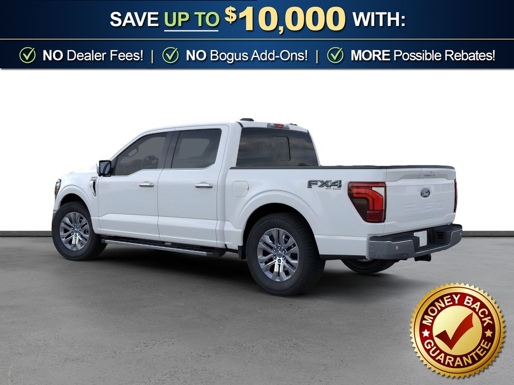 Oxford White 2026 Ford F-150 Lariat NFT 4WD 10-Speed Automatic 5.0L V8 4WD, 4-Wheel Disc Brakes, 4x4 FX4 Off-Road Bodyside Decal, 8 Speakers, ABS brakes, ActiveX Trimmed Bucket Seats, Air Conditioning, Alloy wheels, AM/FM radio: SiriusXM with 360L, Auto High-beam Headlights, Auto-dimming door mirrors, Auto-dimming Rear-View mirror, Automatic temperature control, Brake assist, Bumpers: chrome, Chrome wheels, Compass, Delay-off headlights, Driver door bin, Driver vanity mirror, Dual front impact airbags, Dual front side impact airbags, Electronic Stability Control, Emergency communication system: SYNC 4 911 Assist, Ford Connectivity Package (1-Year Included), Front anti-roll bar, Front Bucket Seats, Front Center Armrest, Front dual zone A/C, Front fog lights, Front License Plate Bracket, Front reading lights, Front wheel independent suspension, Fully automatic headlights, FX4 Off-Road Package, Garage door transmitter, Heated door mirrors, Heated front seats, Heated steering wheel, Hill Descent Control, Illuminated entry, Internet access capable: 5G Modem - Ford Connectivity Package, Low tire pressure warning, Memory seat, Monotube Rear Shocks, Navigation system: Connected Navigation, Occupant sensing airbag, Off-Road Tuned Front Shock Absorbers, Outside temperature display, Overhead airbag, Overhead console, Panic alarm, Passenger door bin, Passenger vanity mirror, Power door mirrors, Power driver seat, Power passenger seat, Power steering, Power windows, Radio data system, Radio: B&O Sound System by Bang and Olufsen, Rain sensing wipers, Rear reading lights, Rear seat center armrest, Rear step bumper, Rear window defroster, Remote keyless entry, Security system, Speed control, Split folding rear seat, Steering wheel mounted audio controls, SYNC 4 with Enhanced Voice Recognition, Tachometer, Telescoping steering wheel, Tilt steering wheel, Traction control, Tray Style Floor Liner Without Carpet Mats, Trip computer, Turn signal indicator mirrors, Variably intermittent wipers, Ventilated front seats, Wheels: 18" Chrome-Like PVD, 4WD.