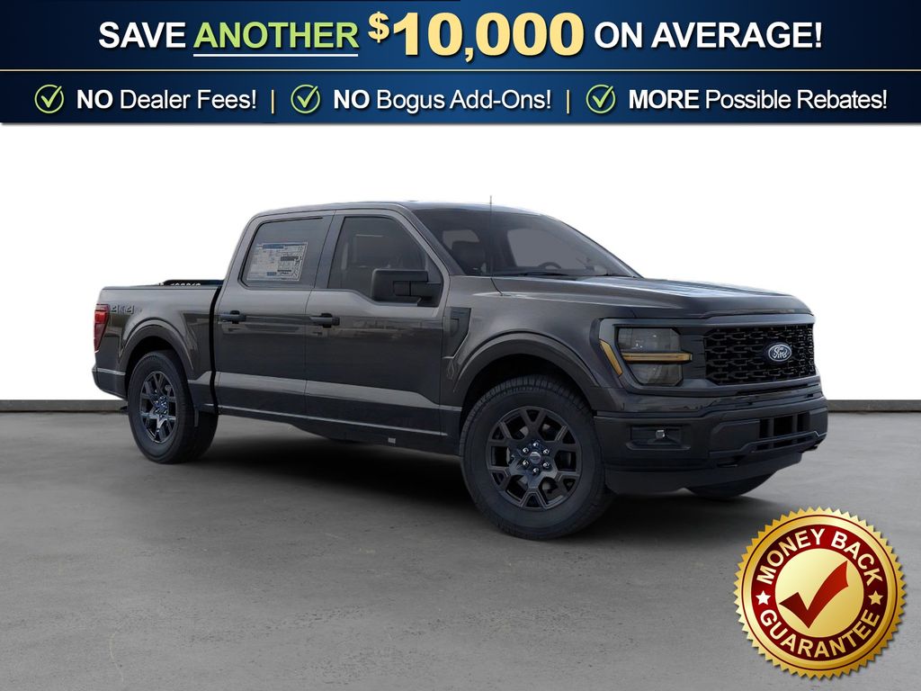Agate Black Metallic 2026 Ford F-150 STX FCT 4WD 10-Speed Automatic 2.7L V6 EcoBoost 4WD, 3.55 Axle Ratio, 4-Wheel Disc Brakes, 6 Speakers, ABS brakes, Air Conditioning, Alloy wheels, AM/FM radio: SiriusXM with 360L, Auto High-beam Headlights, Brake assist, Bumpers: body-color, Compass, Delay-off headlights, Driver door bin, Dual front impact airbags, Dual front side impact airbags, Electronic Stability Control, Emergency communication system: SYNC 4 911 Assist, Ford Connectivity Package (1-Year Included), Front anti-roll bar, Front Bucket Seats, Front Center Armrest, Front License Plate Bracket, Front reading lights, Front wheel independent suspension, Fully automatic headlights, GVWR: 6,650 lbs Payload Package, Heated door mirrors, Illuminated entry, Internet access capable: 5G Modem - Ford Connectivity Package, Low tire pressure warning, Occupant sensing airbag, Outside temperature display, Overhead airbag, Overhead console, Panic alarm, Passenger door bin, Passenger vanity mirror, Power door mirrors, Power steering, Power windows, Radio data system, Radio: AM/FM Stereo with SiriusXM 360L, Rear Parking Sensors, Rear step bumper, Rear window defroster, Remote keyless entry, Security system, Speed control, Split folding rear seat, Steering wheel mounted audio controls, SYNC 4 with Enhanced Voice Recognition, Tachometer, Telescoping steering wheel, Tilt steering wheel, Traction control, Trip computer, Unique Sport Cloth 40/Console/40 Front-Seats, Variably intermittent wipers, Wheels: 18" Gloss Black, 4WD.