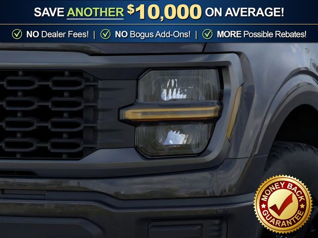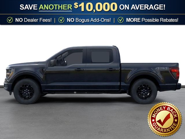Agate Black Metallic 2026 Ford F-150 STX NFT 4WD 10-Speed Automatic 2.7L V6 EcoBoost 3.55 Axle Ratio, 4-Wheel Disc Brakes, 6 Speakers, ABS brakes, Air Conditioning, Alloy wheels, AM/FM radio: SiriusXM with 360L, Auto High-beam Headlights, Brake assist, Bumpers: body-color, Compass, Delay-off headlights, Driver door bin, Dual front impact airbags, Dual front side impact airbags, Electronic Stability Control, Emergency communication system: SYNC 4 911 Assist, Equipment Group 200B Standard, Ford Connectivity Package (1-Year Included), Front anti-roll bar, Front Bucket Seats, Front Center Armrest, Front reading lights, Front wheel independent suspension, Fully automatic headlights, GVWR: 6,650 lbs Payload Package, Heated door mirrors, Illuminated entry, Internet access capable: 5G Modem - Ford Connectivity Package, Low tire pressure warning, Occupant sensing airbag, Outside temperature display, Overhead airbag, Overhead console, Panic alarm, Passenger door bin, Passenger vanity mirror, Power door mirrors, Power steering, Power windows, Radio data system, Radio: AM/FM Stereo with SiriusXM 360L, Rear Parking Sensors, Rear step bumper, Rear window defroster, Remote keyless entry, Security system, Speed control, Split folding rear seat, Steering wheel mounted audio controls, SYNC 4 with Enhanced Voice Recognition, Tachometer, Telescoping steering wheel, Tilt steering wheel, Traction control, Trip computer, Unique Sport Cloth 40/Console/40 Front-Seats, Variably intermittent wipers, Wheels: 18" Gloss Black.